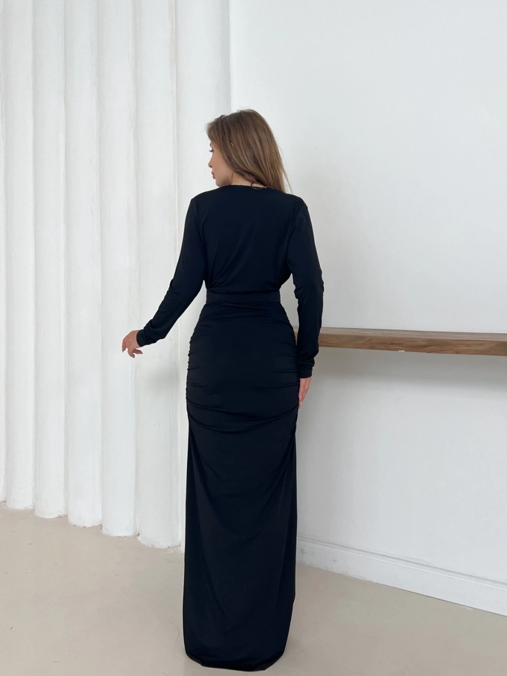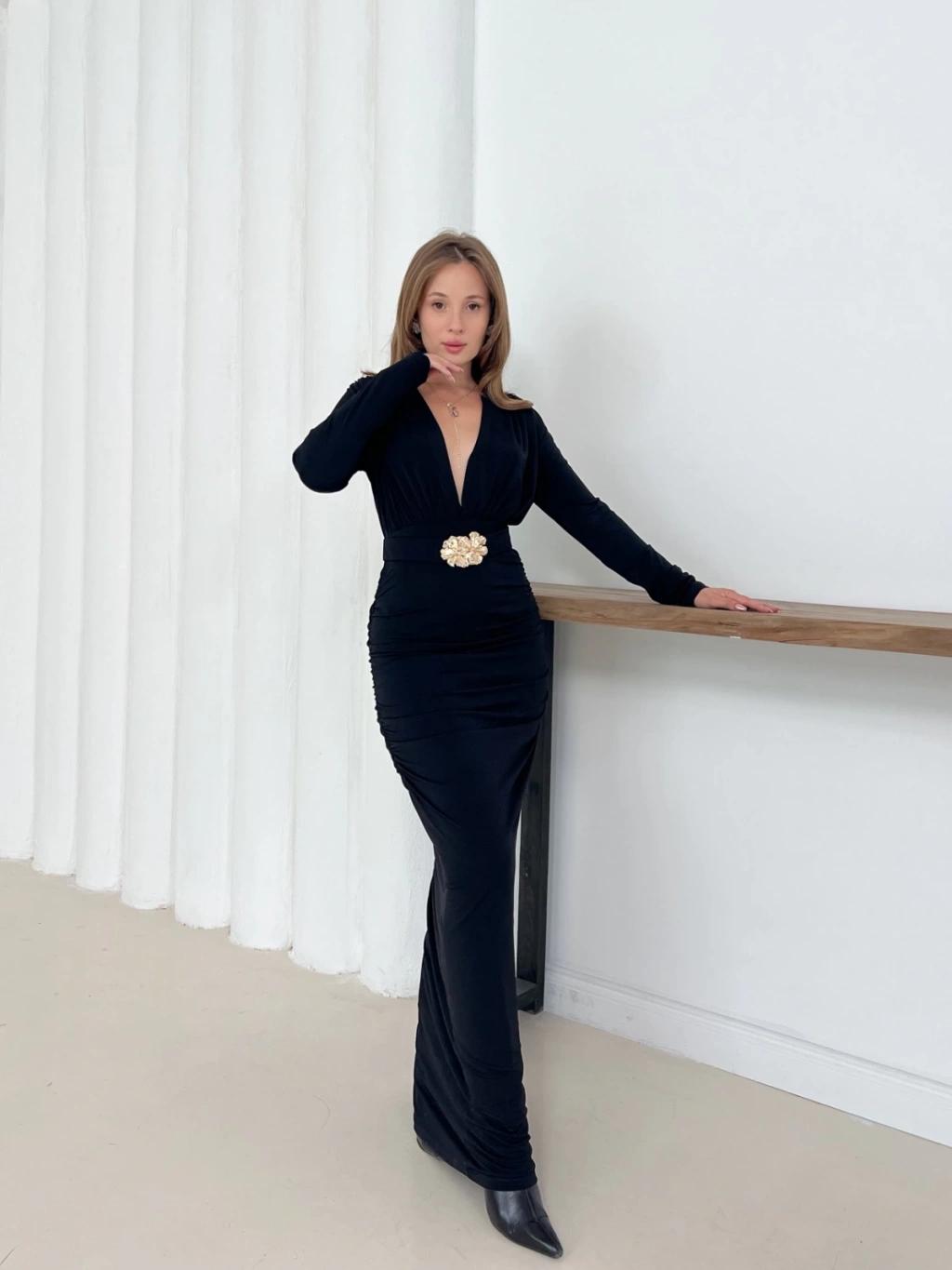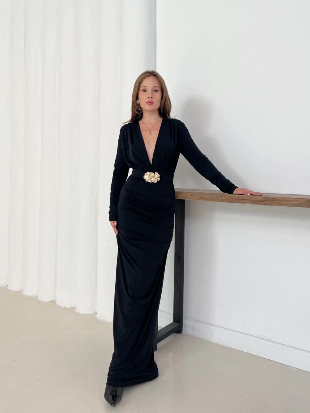 Aksesuar Detaylı Dekolte Sandy Elbise Siyah