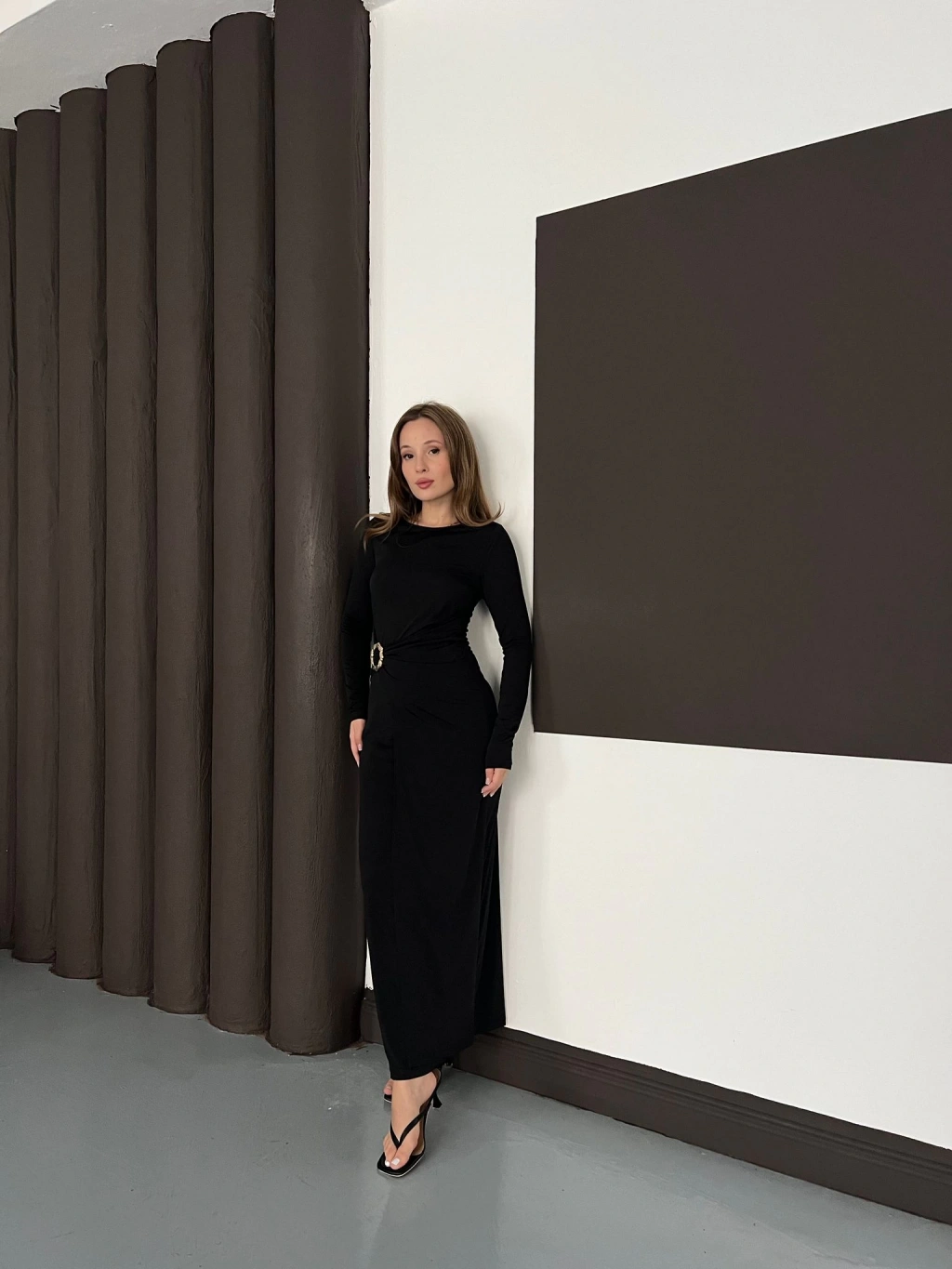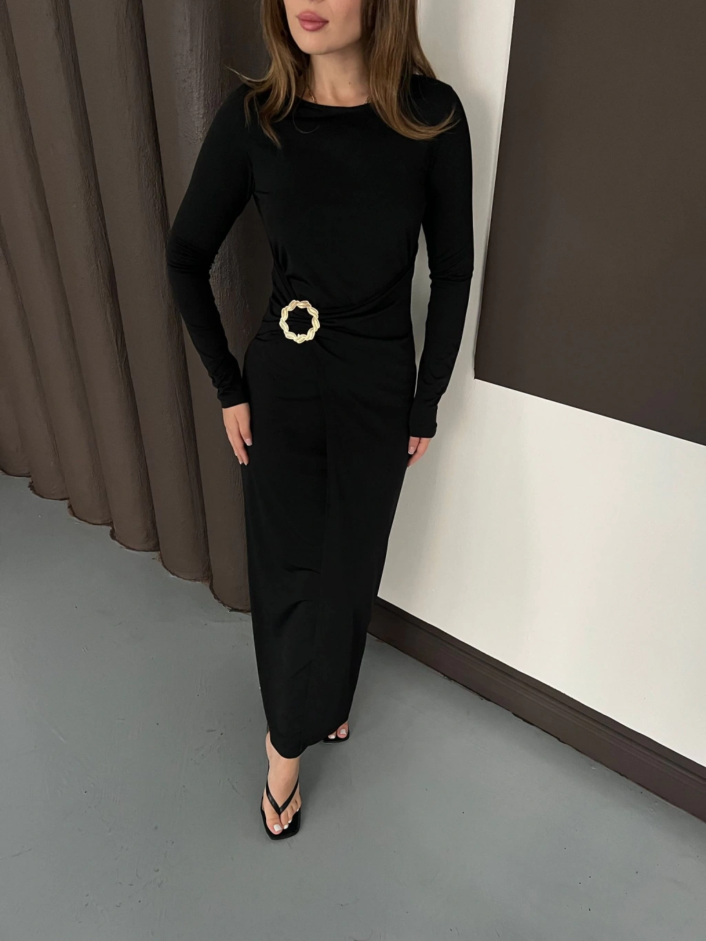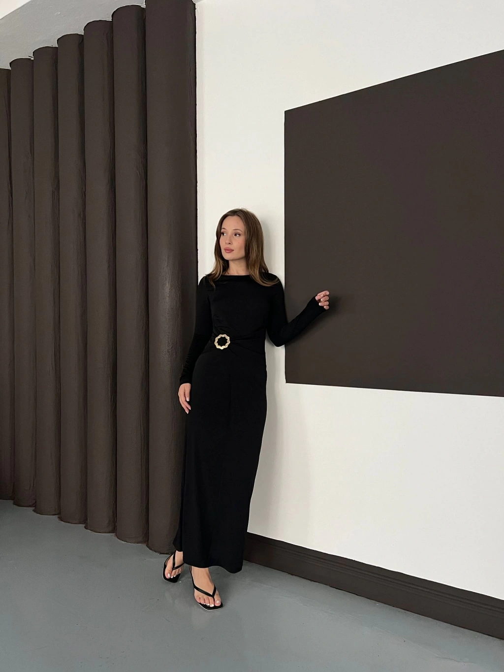 Aksesuar Detaylı Sandy Uzun Elbise Siyah