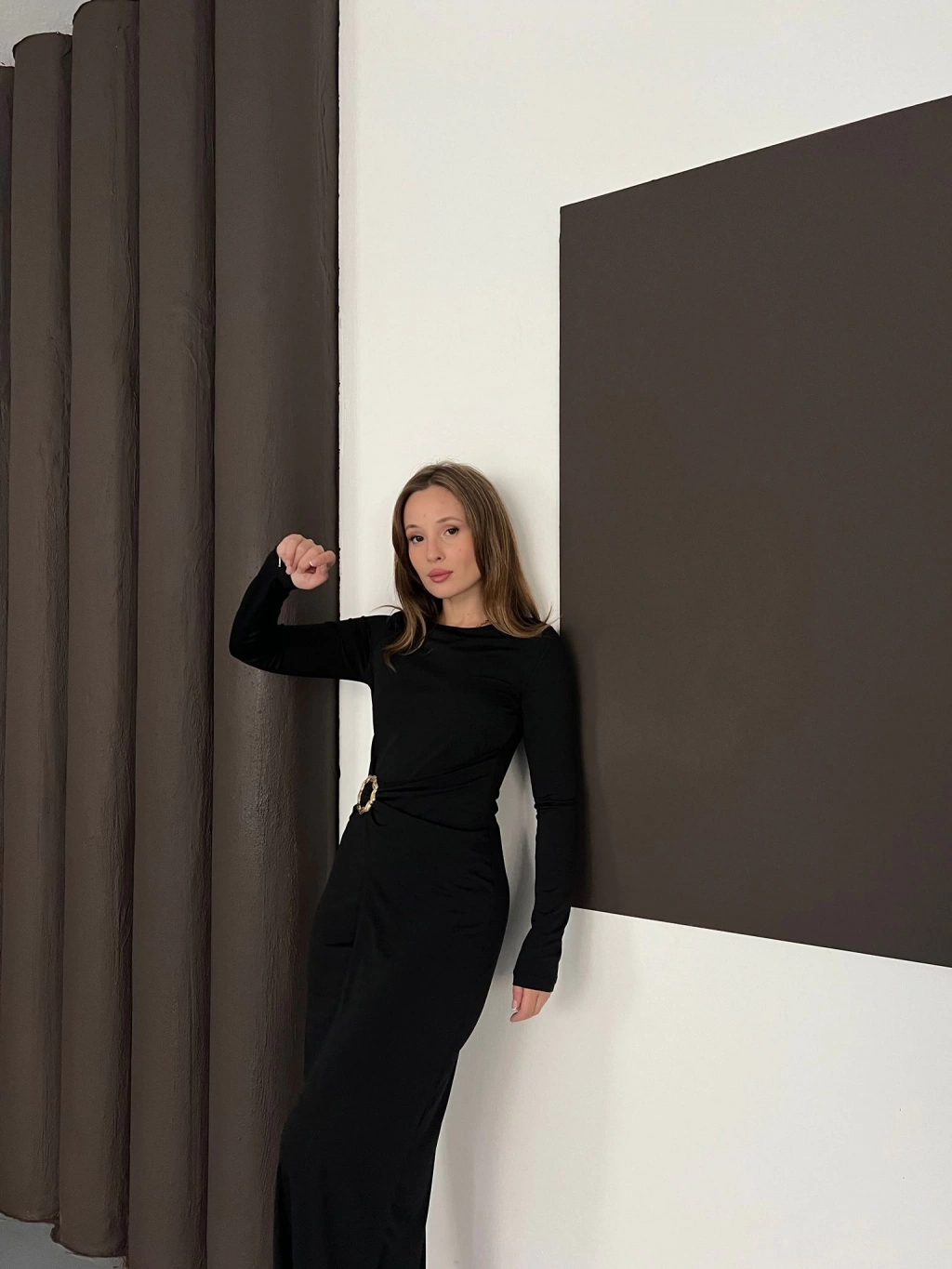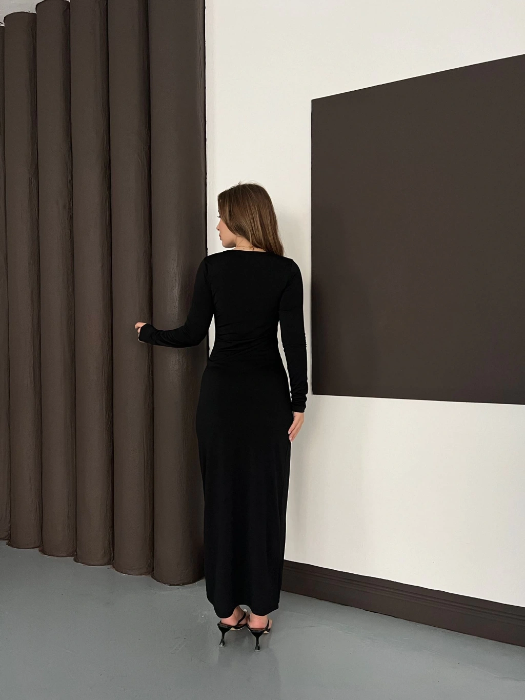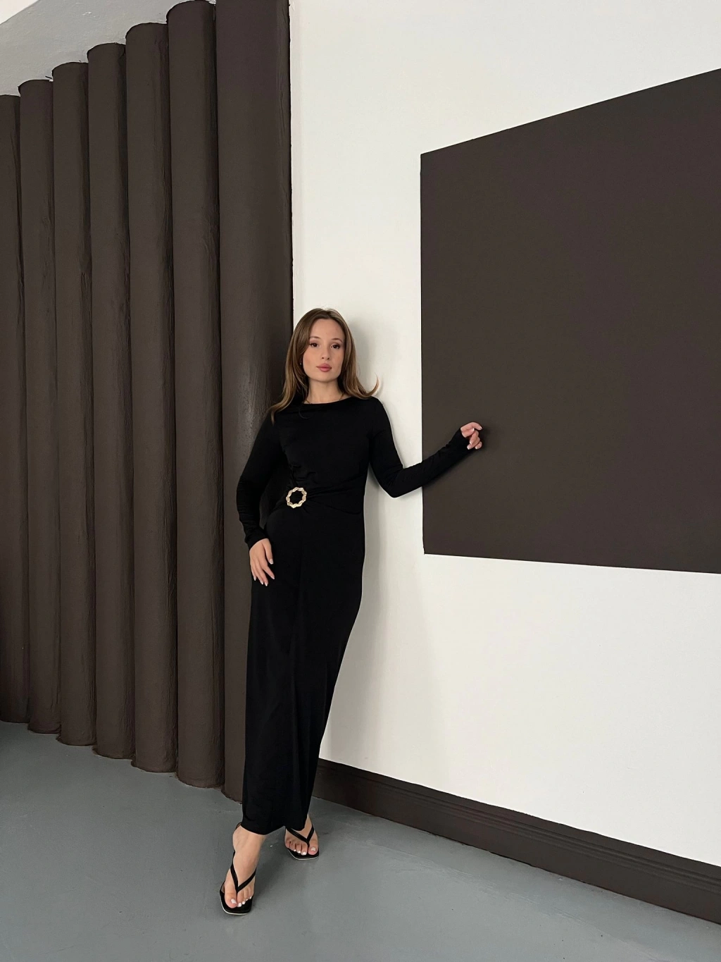 Aksesuar Detaylı Sandy Uzun Elbise Siyah