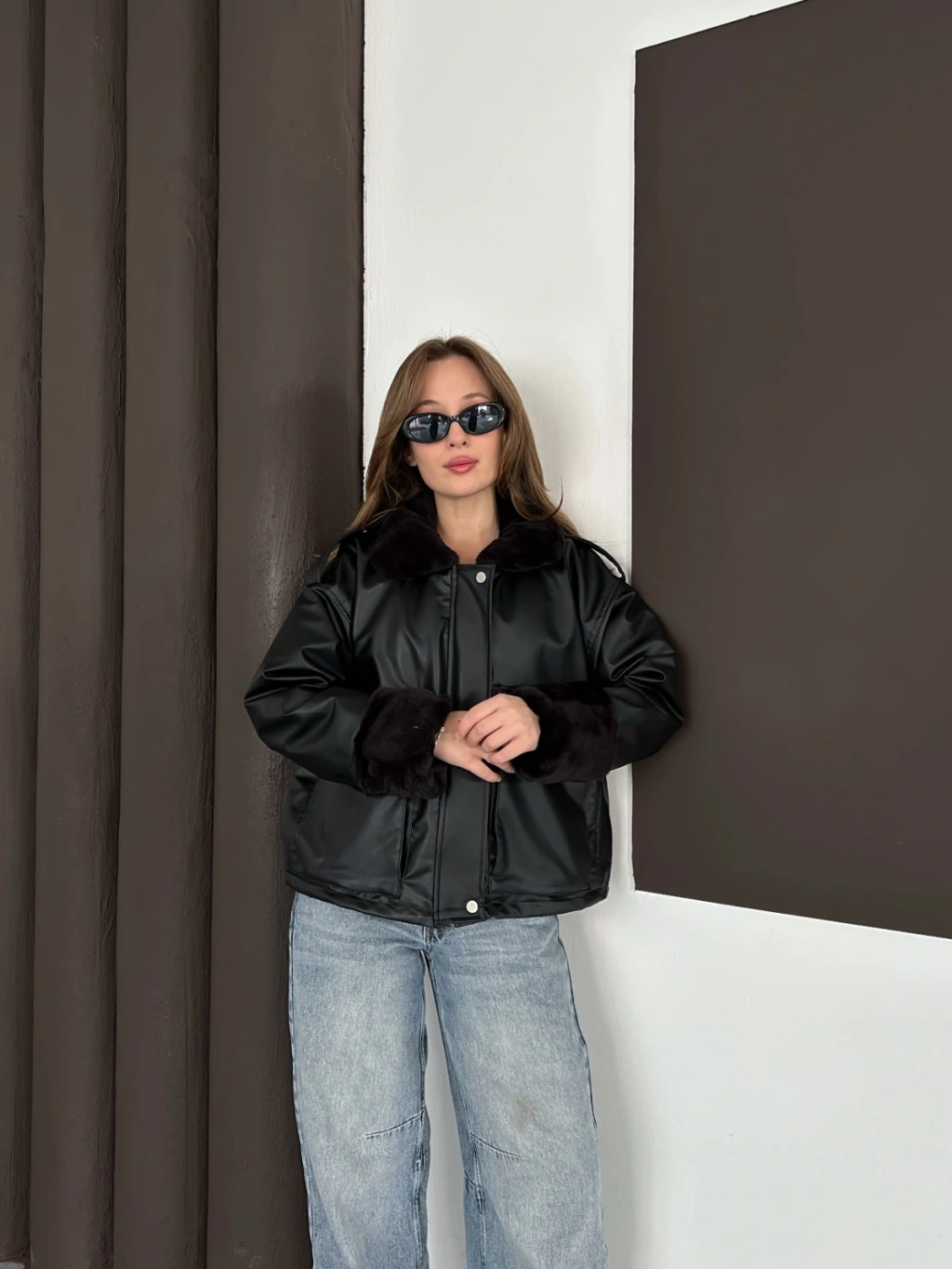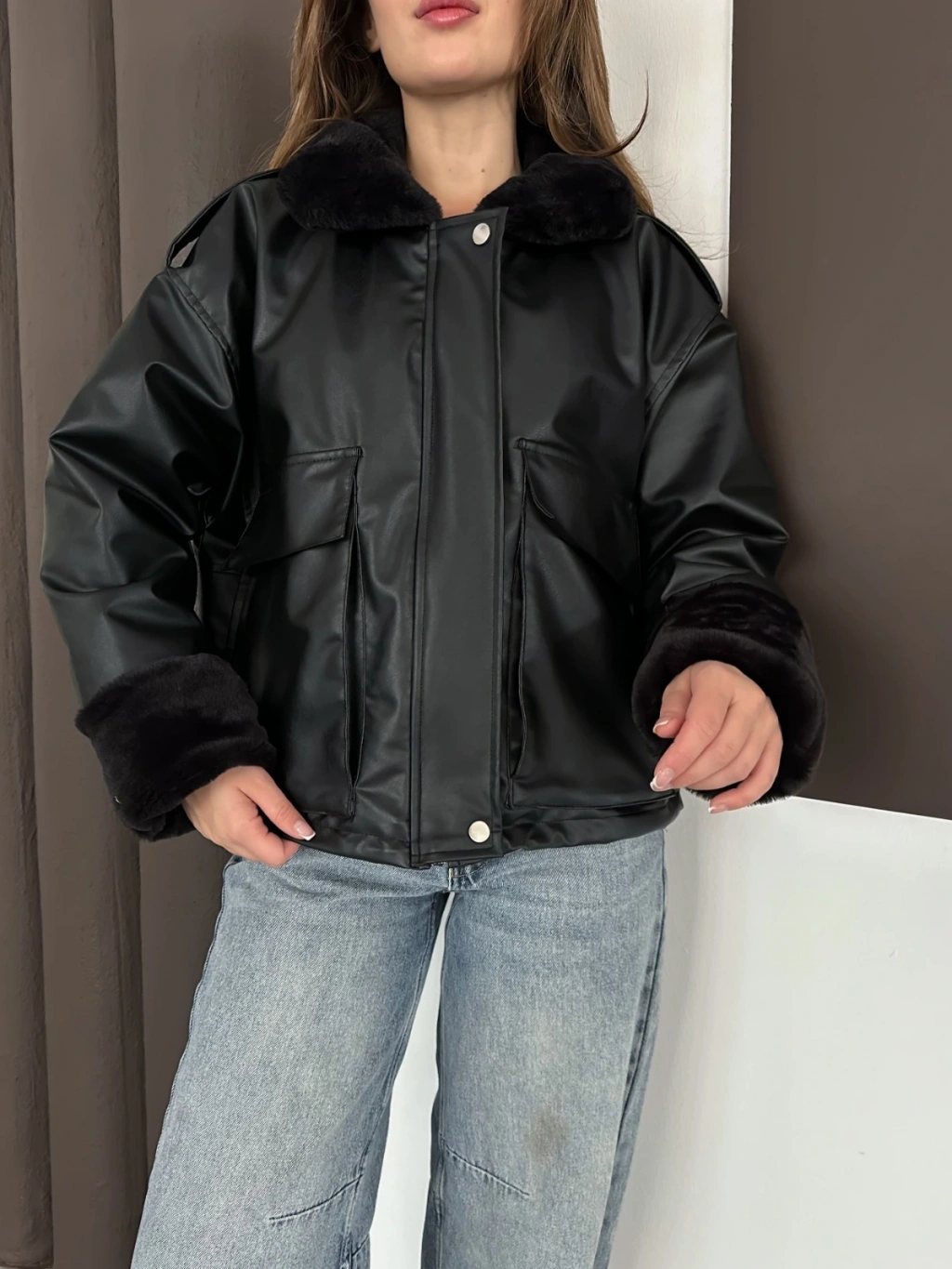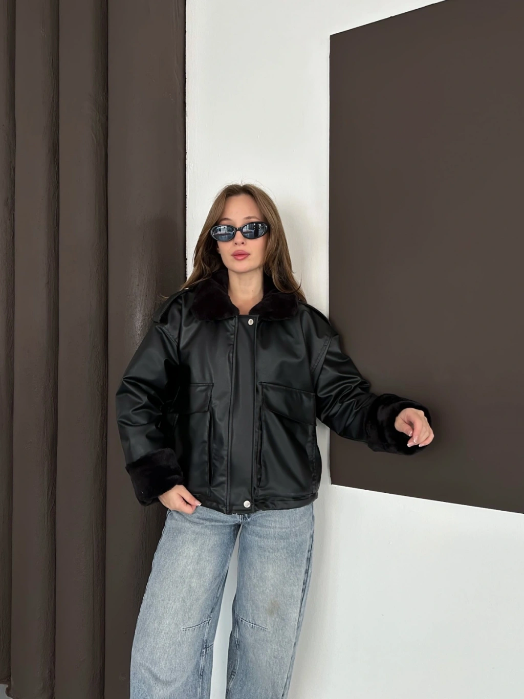 Kruvaze Yaka Cepli Kısa Kaşe Ceket Kahve