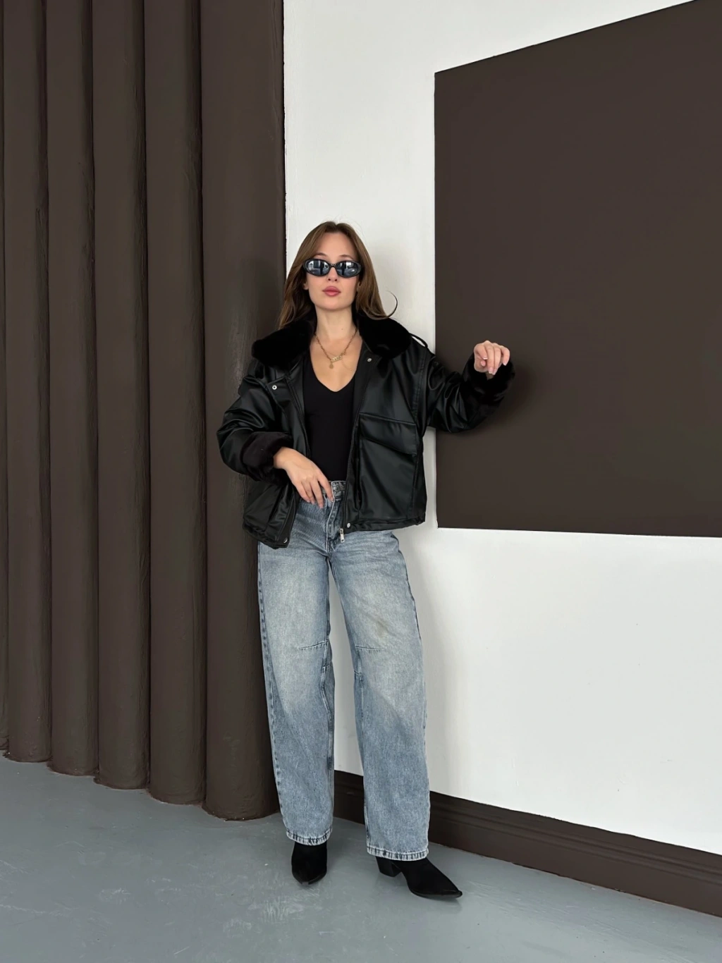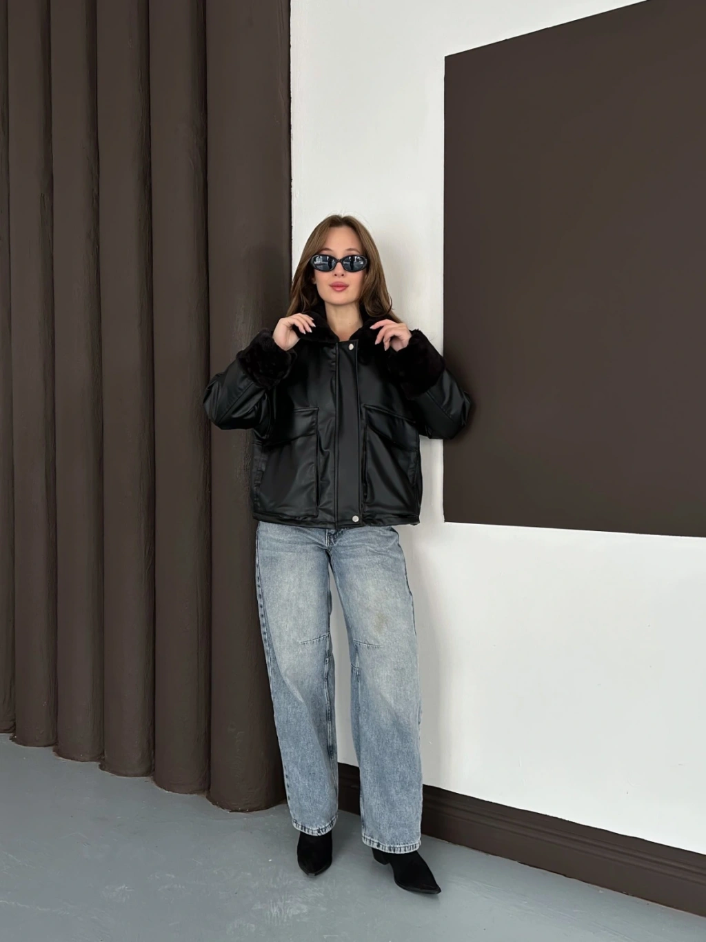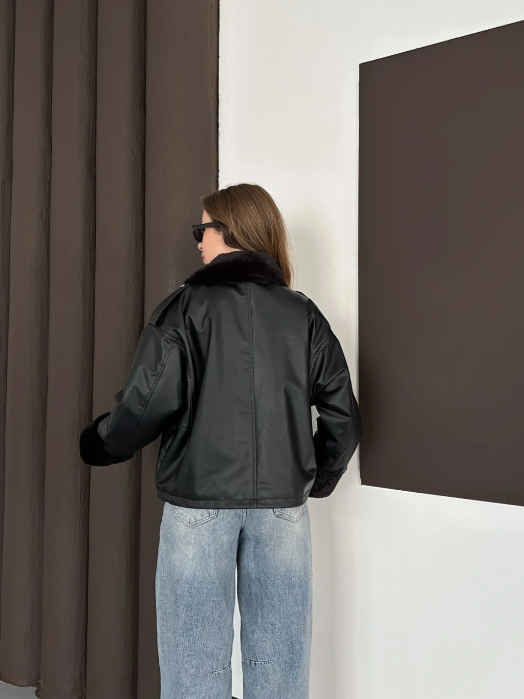 Kruvaze Yaka Cepli Kısa Kaşe Ceket Kahve