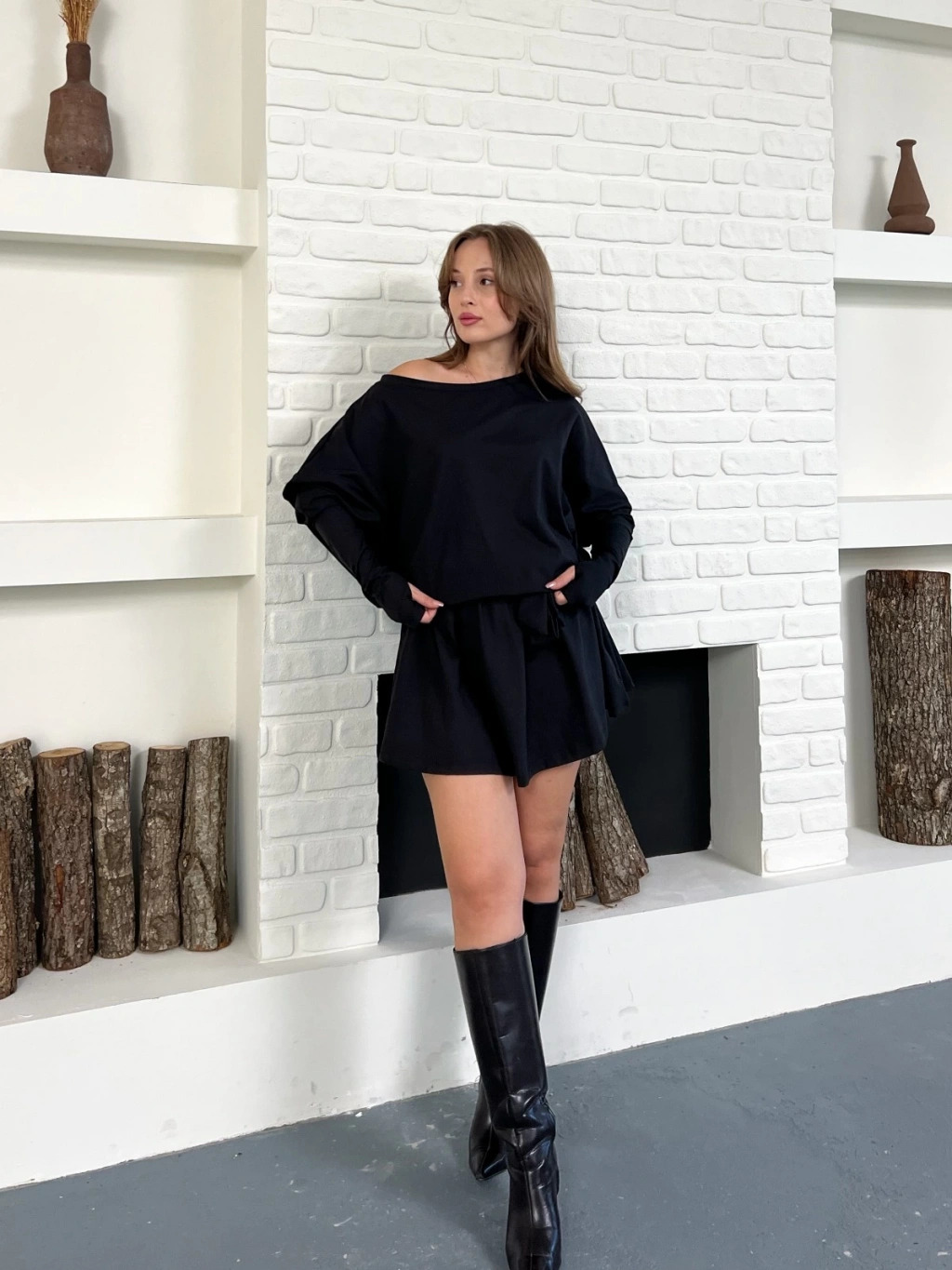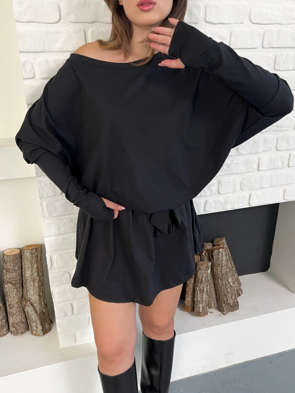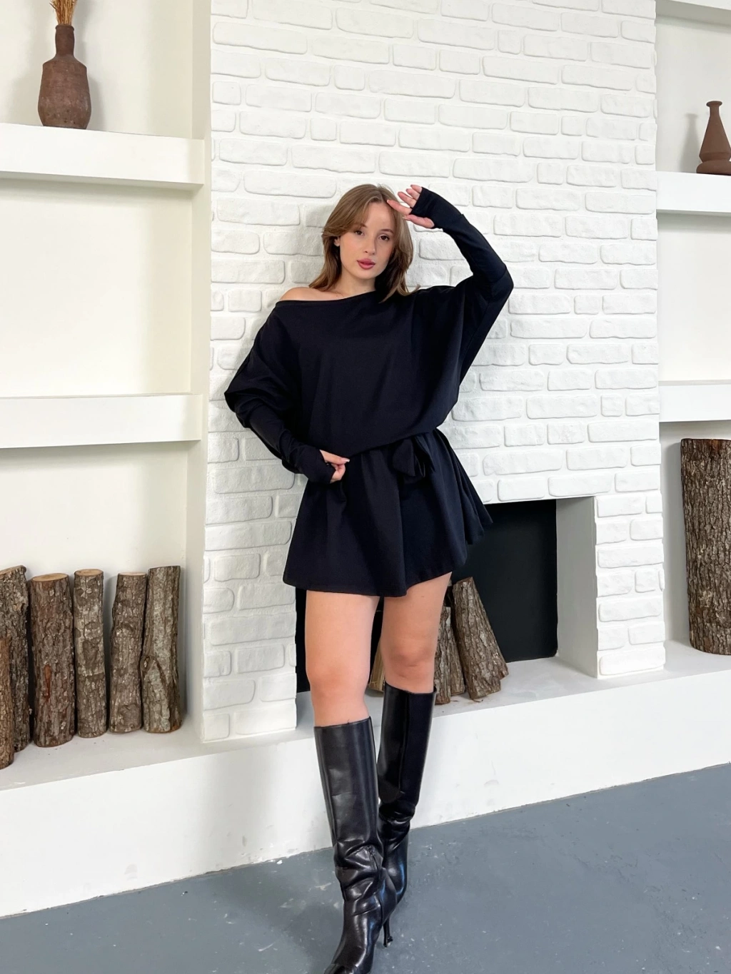Bel Kuşak Detaylı İçi Şortlu Elbise Siyah