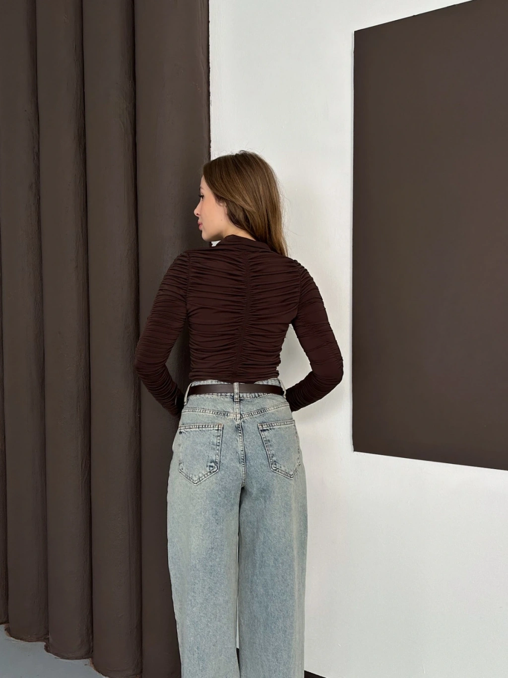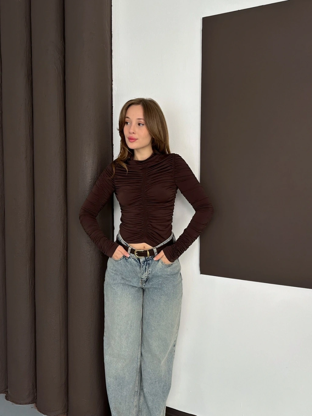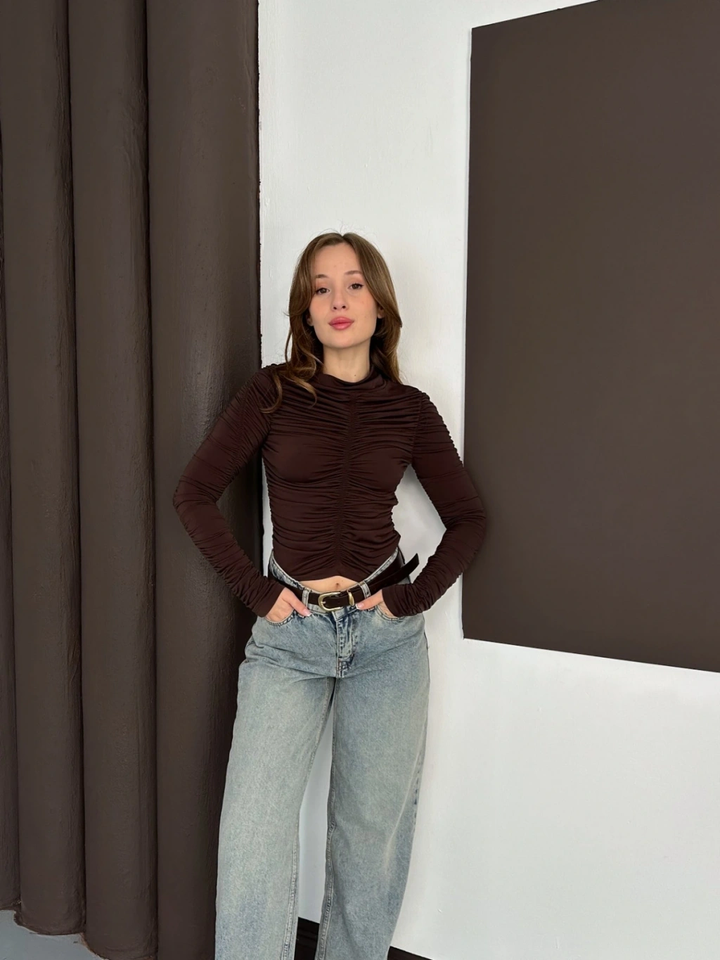 Büzgü Detay Sandy Bluz Acı Kahve