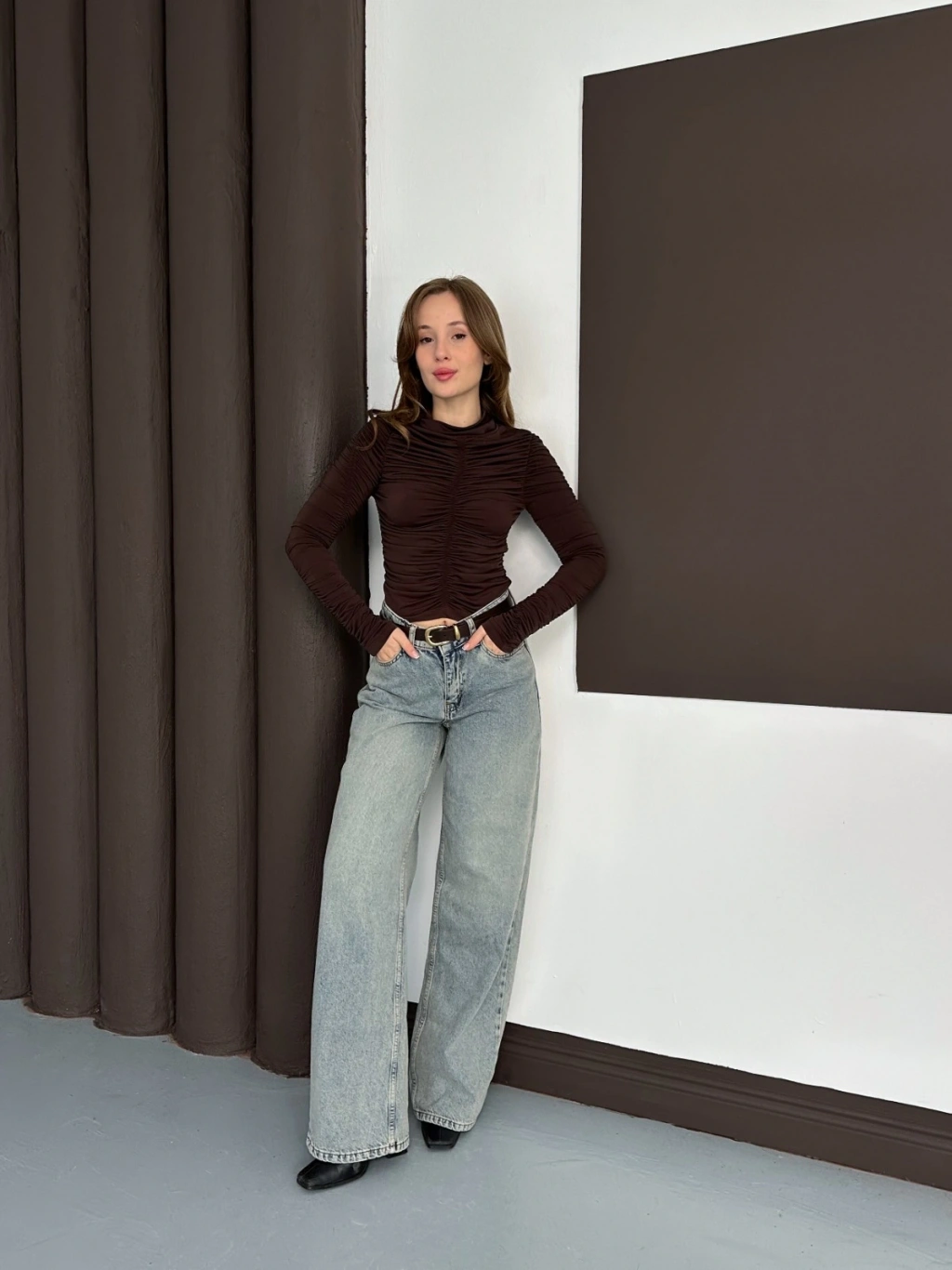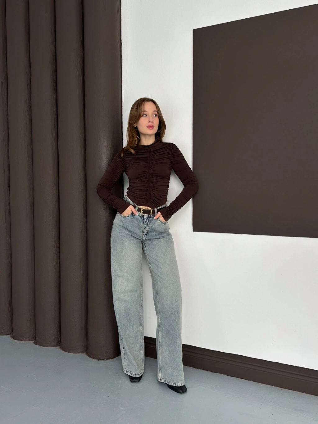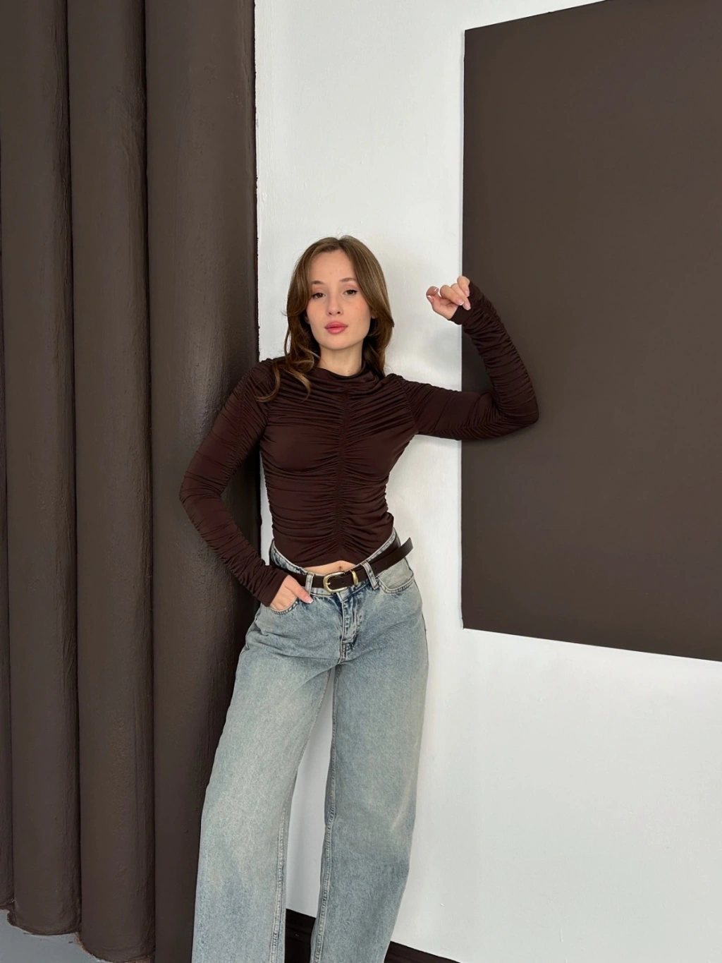 Büzgü Detay Sandy Bluz Acı Kahve