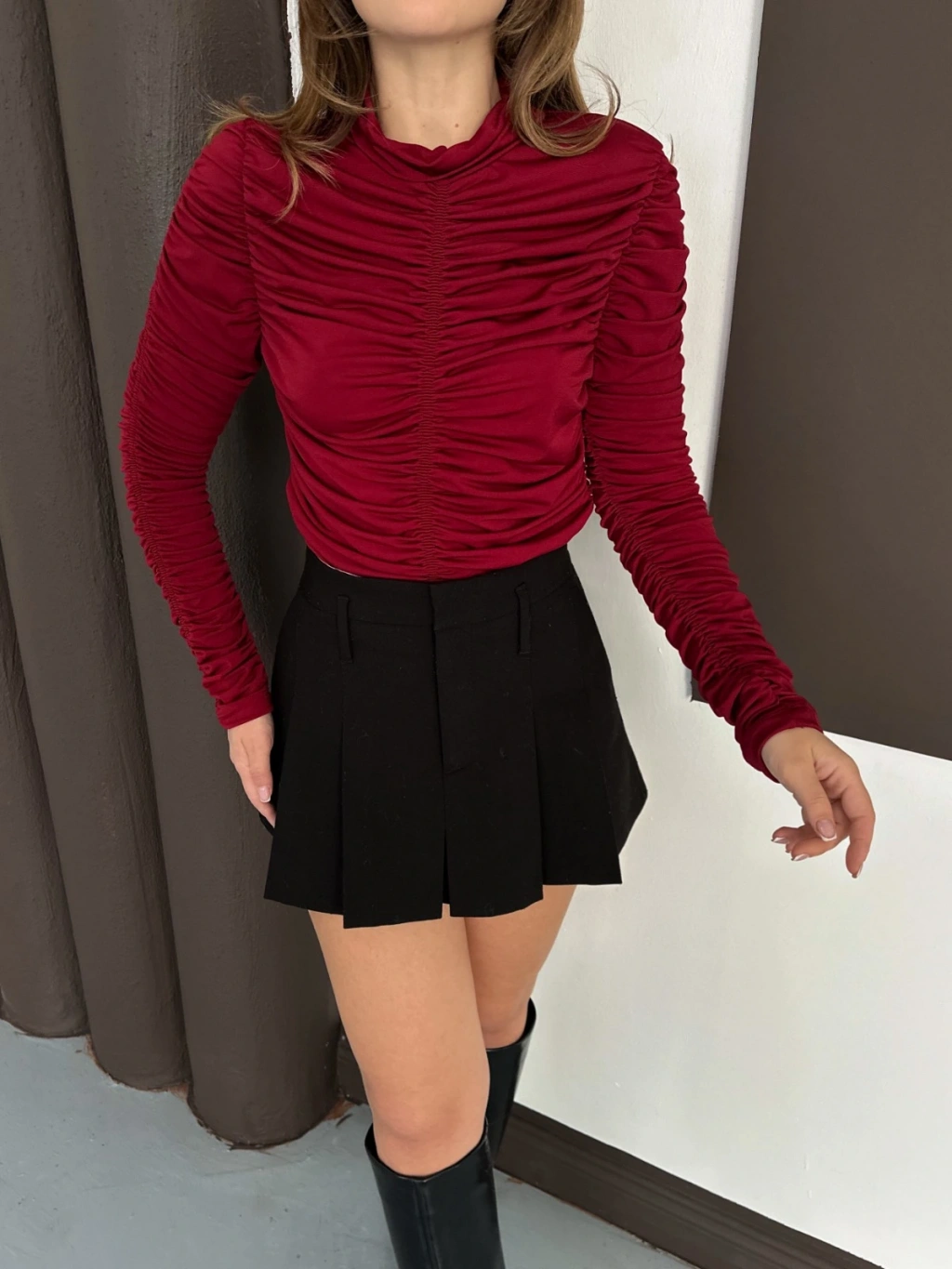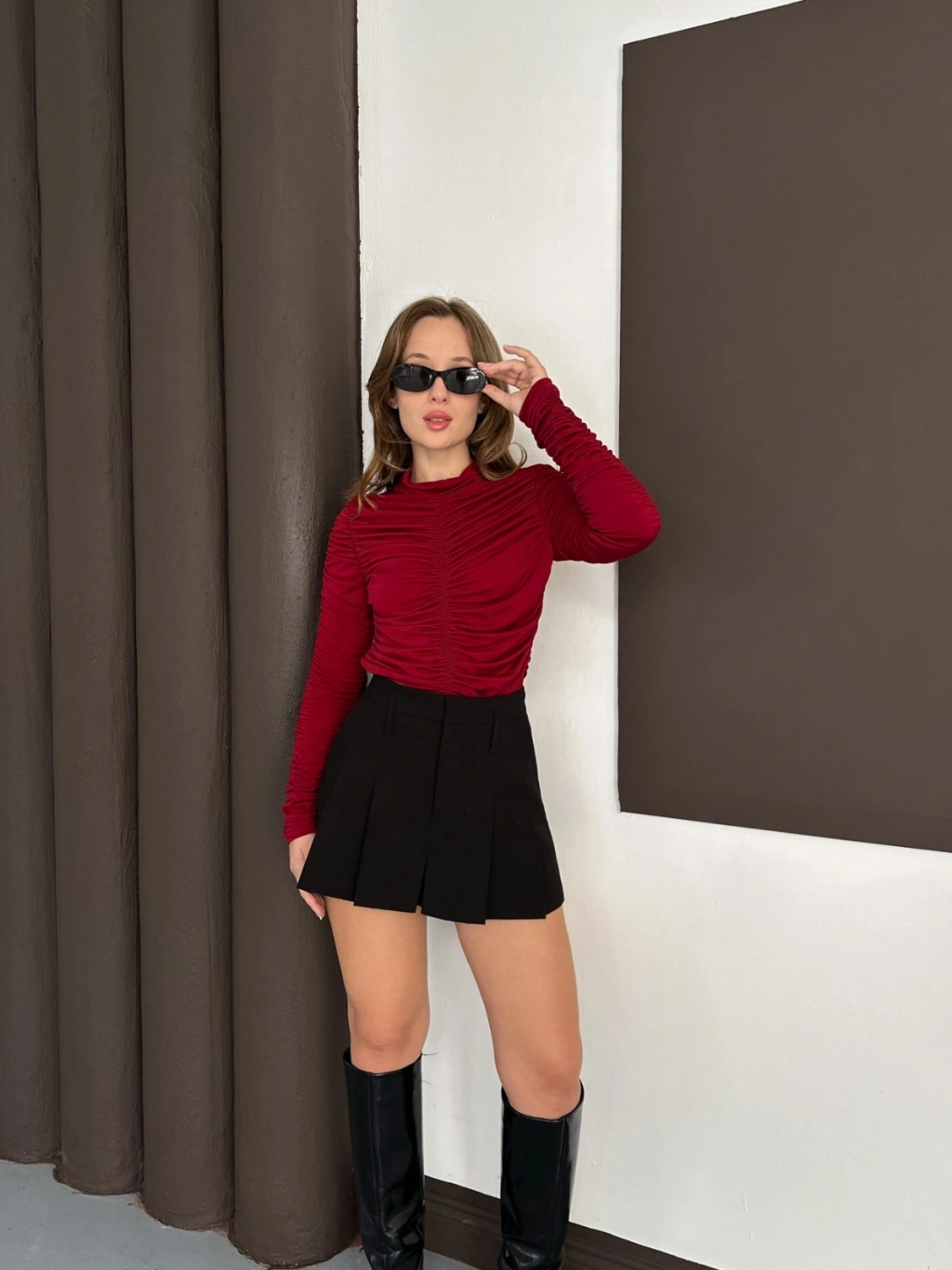 Düğme Detaylı İspanyol Paça İkili Set Bordo