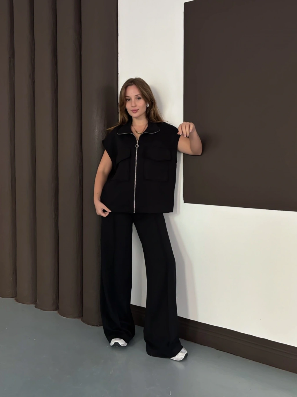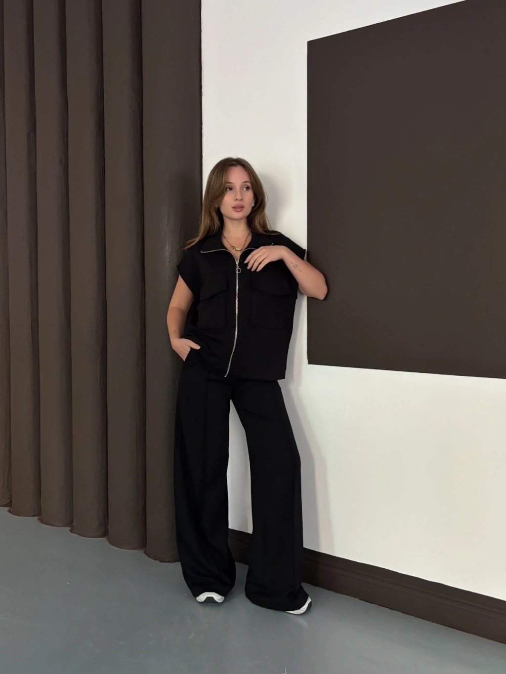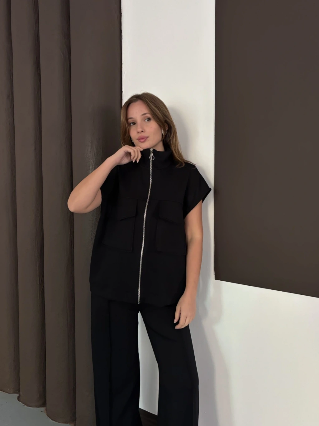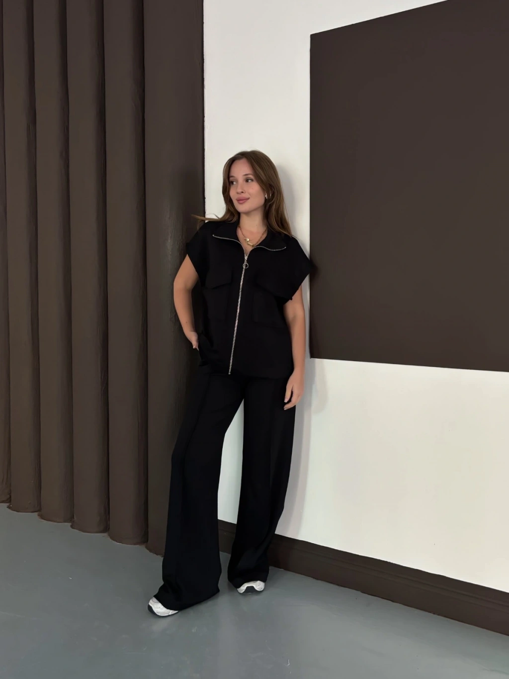 Cep Detaylı Fermuarlı Yarasa Kol Takım