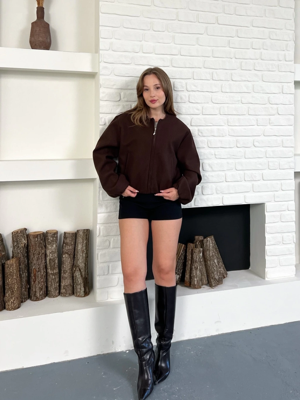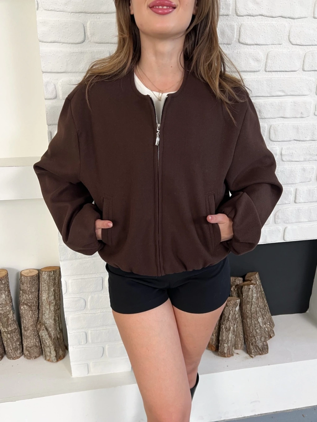 Cep Detaylı Kısa Kaşe Ceket Kahve