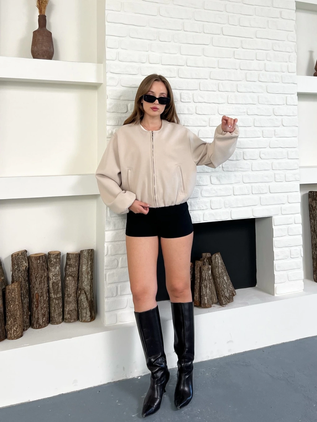 Cep Detaylı Kısa Kaşe Ceket Vizon