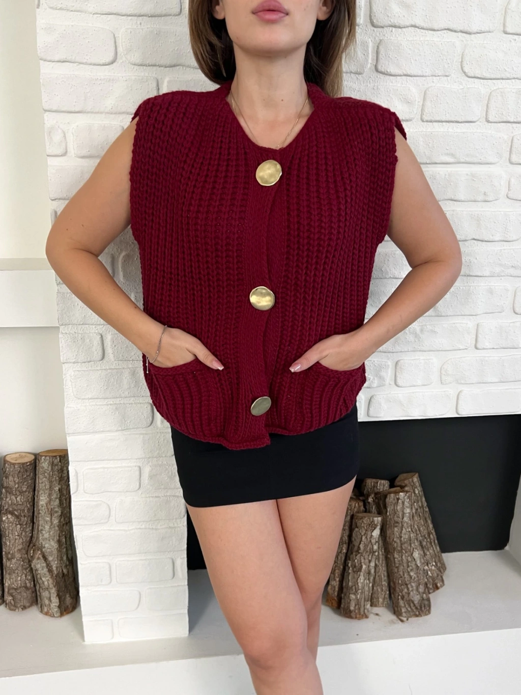 İspanyol Kol Düğme Detaylı Hırkalı Takım Bordo