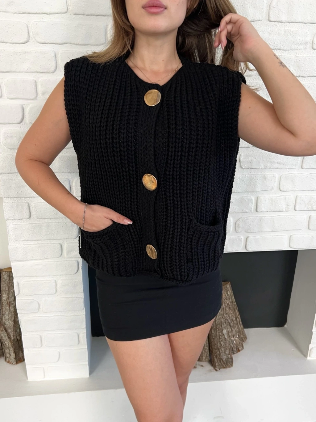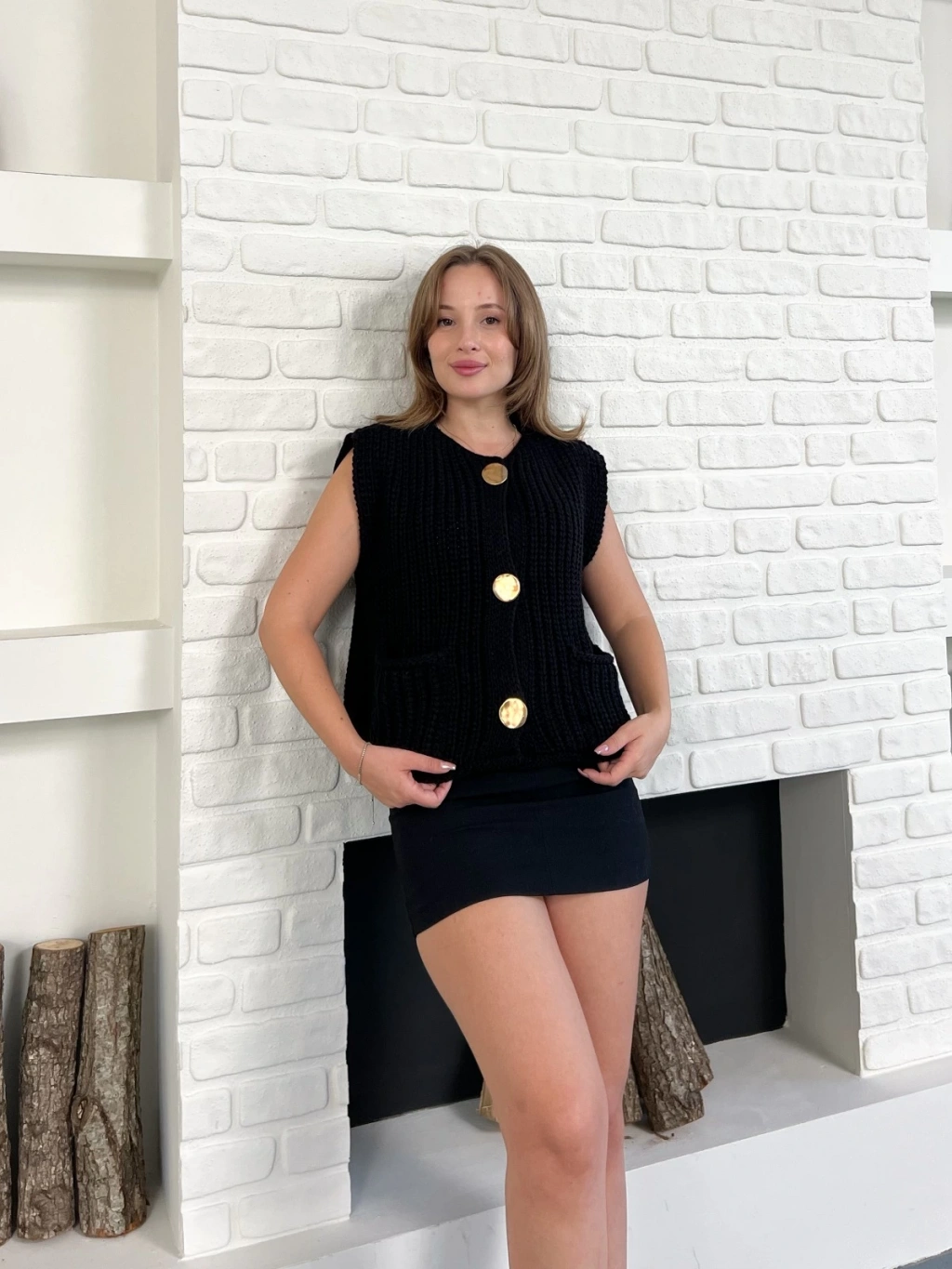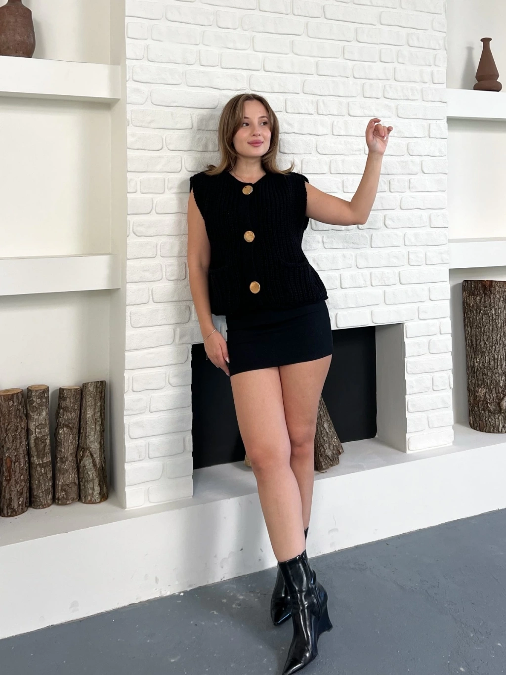 Düğme Detaylı İspanyol Paça İkili Set Siyah