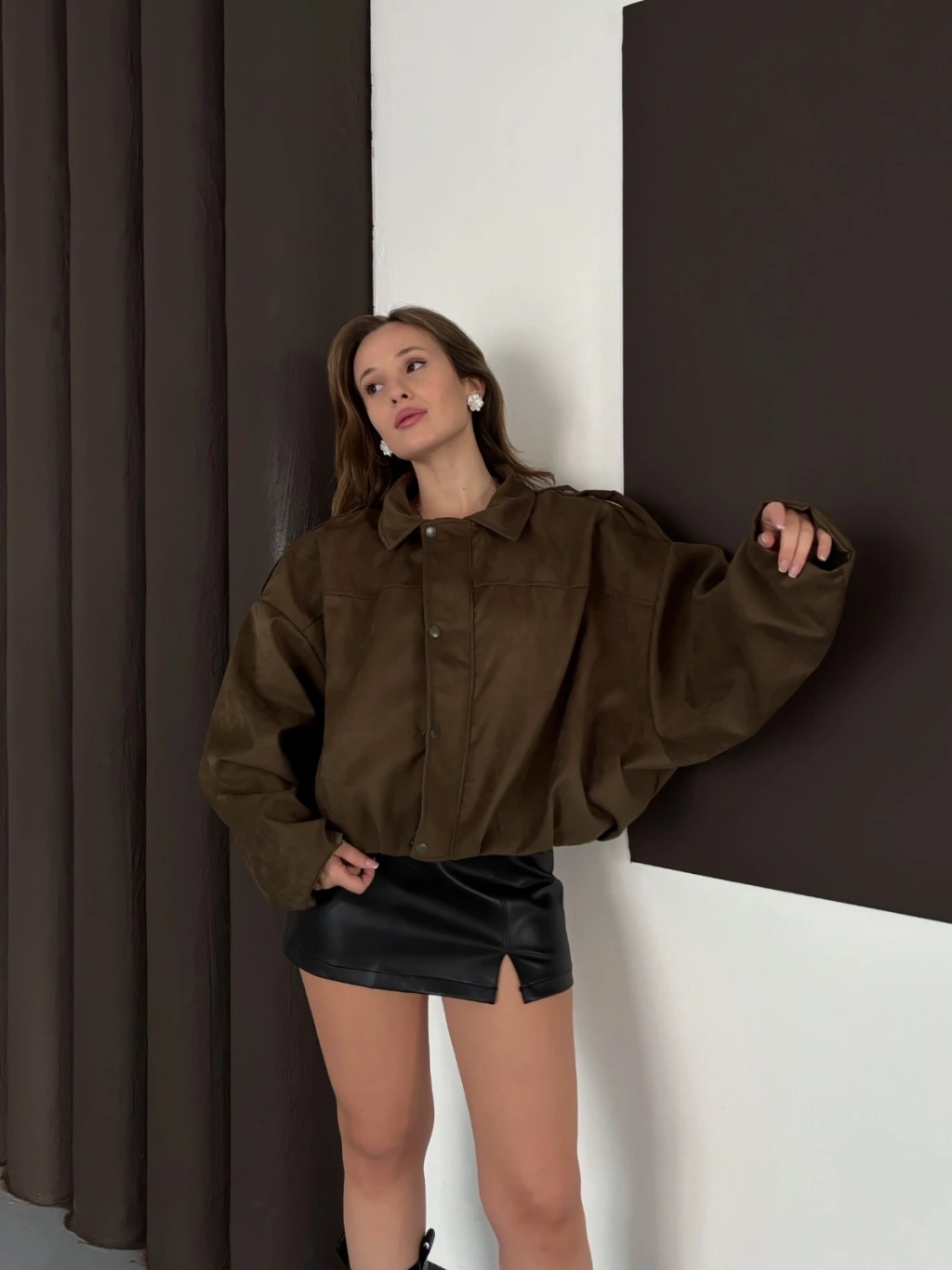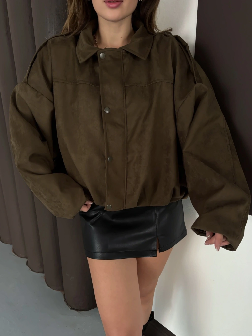 Kruvaze Yaka Cepli Kısa Kaşe Ceket Kahve