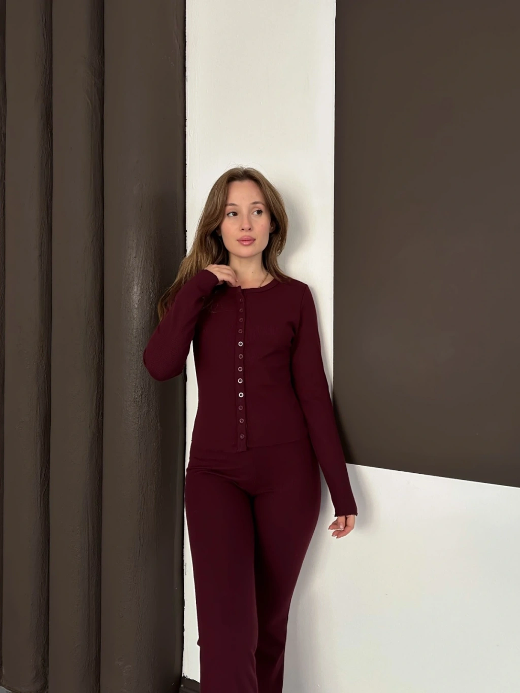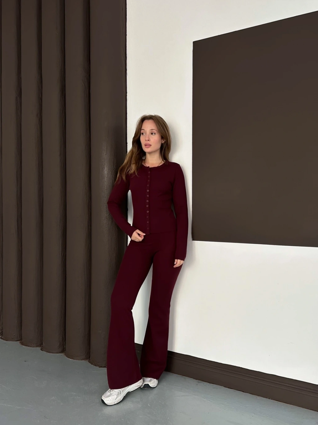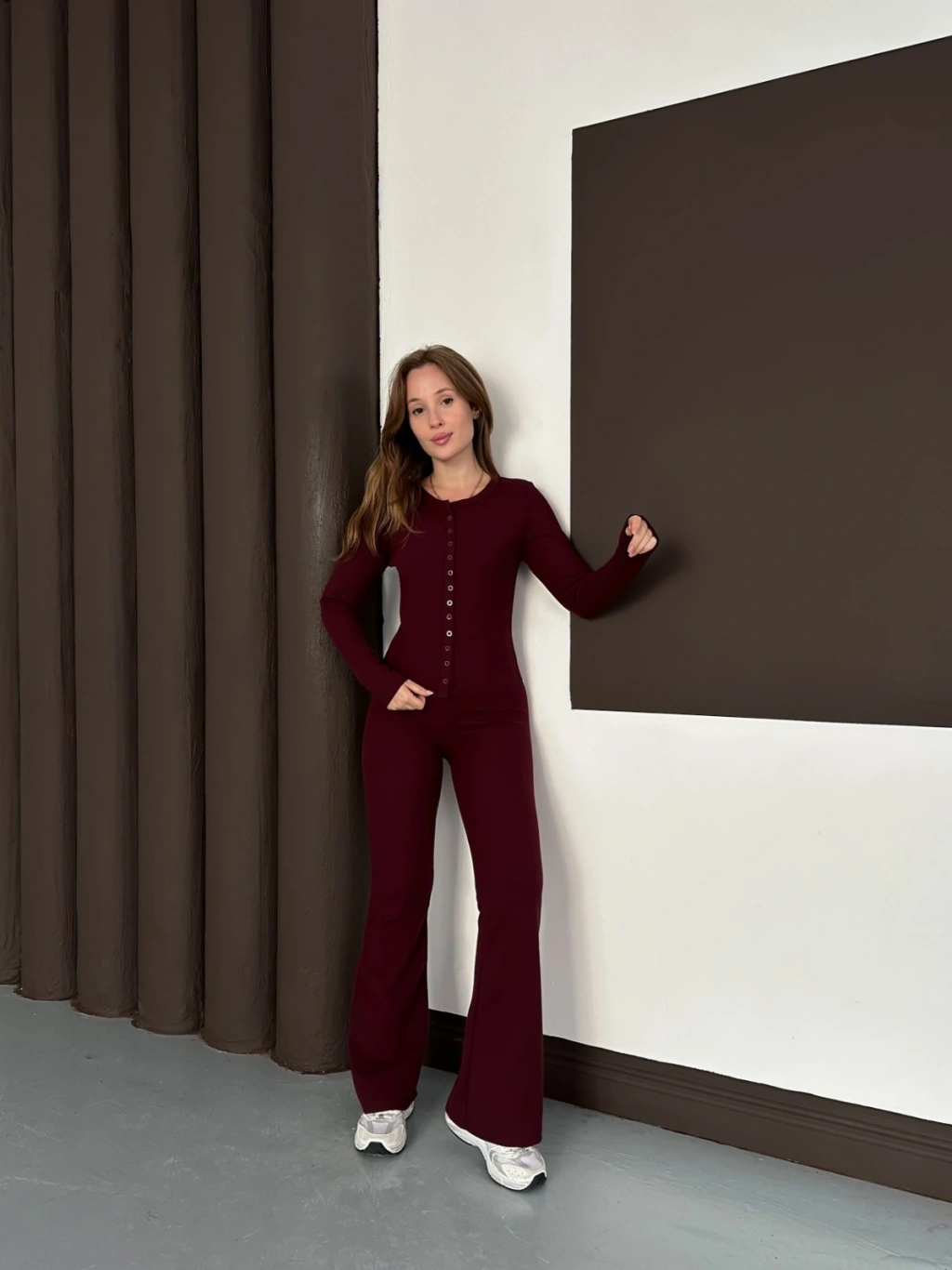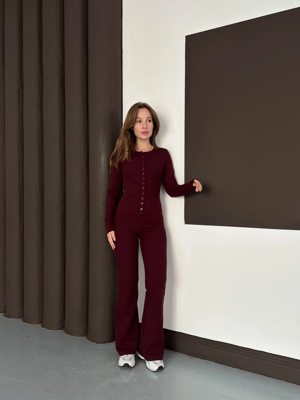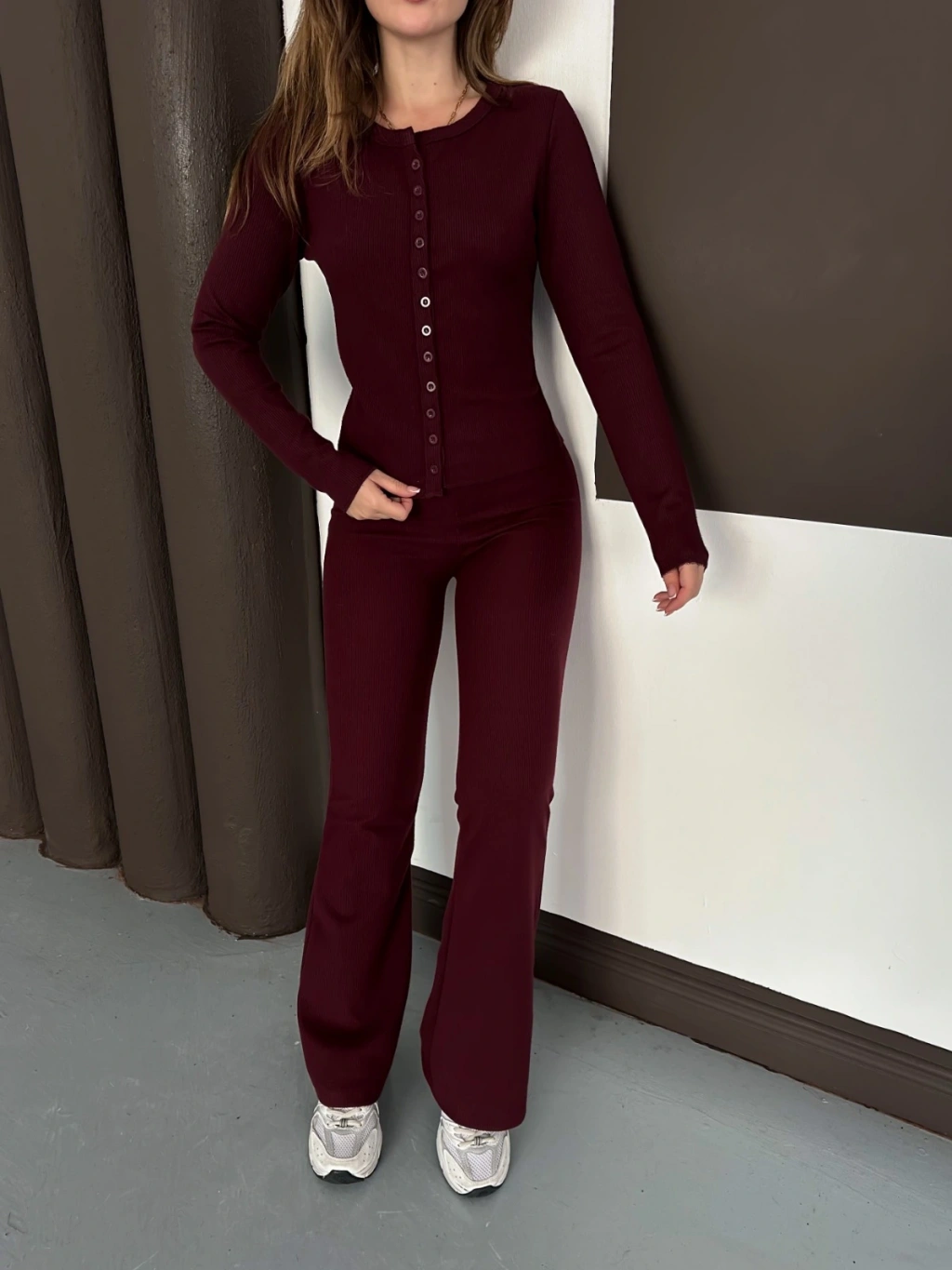 Düğme Detaylı İspanyol Paça İkili Set