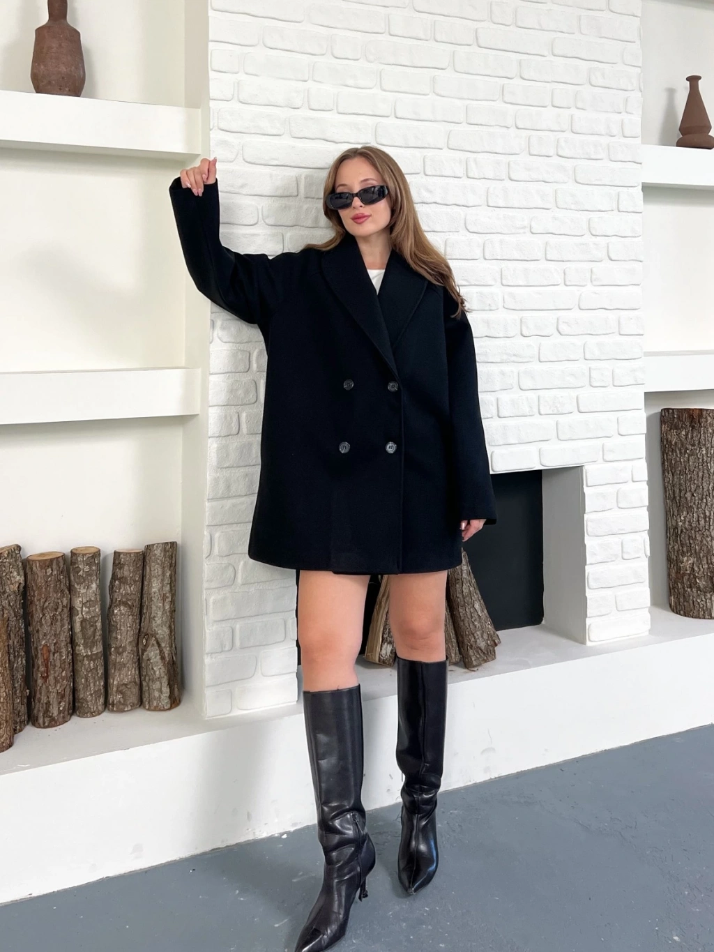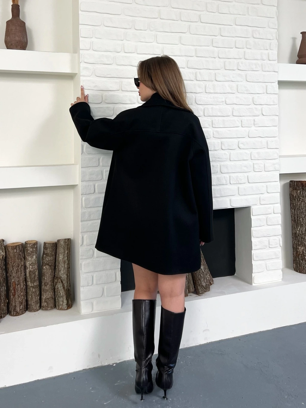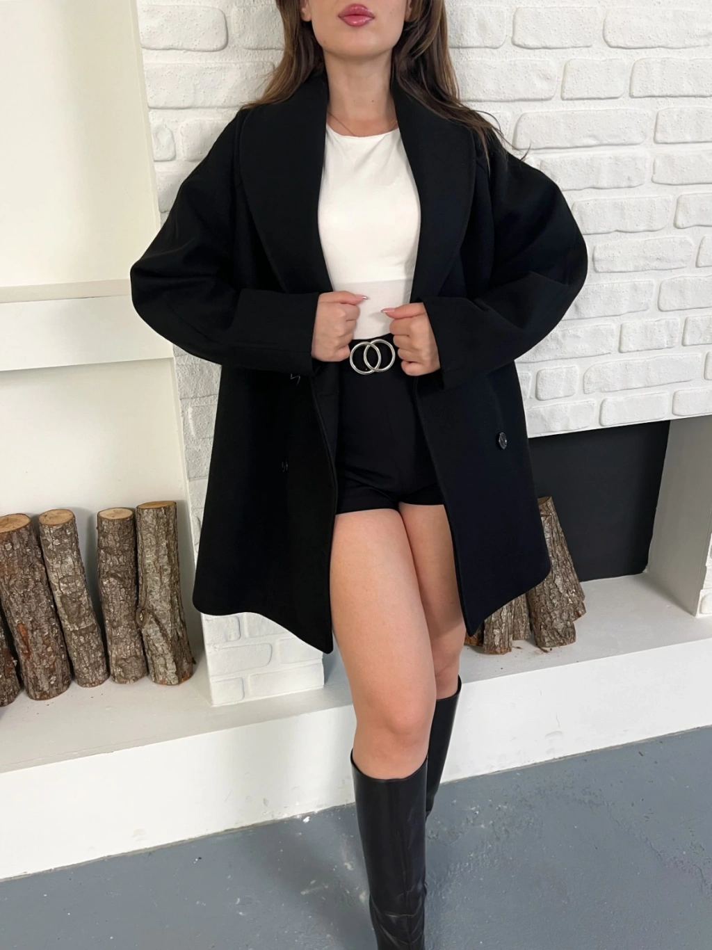 Düğme Detaylı Kaşe Ceket Siyah