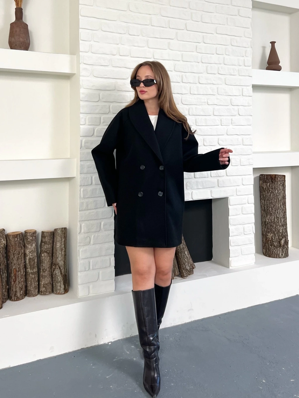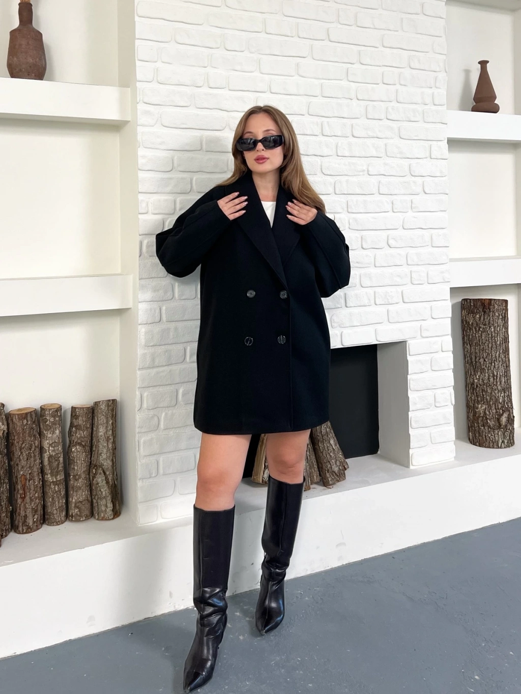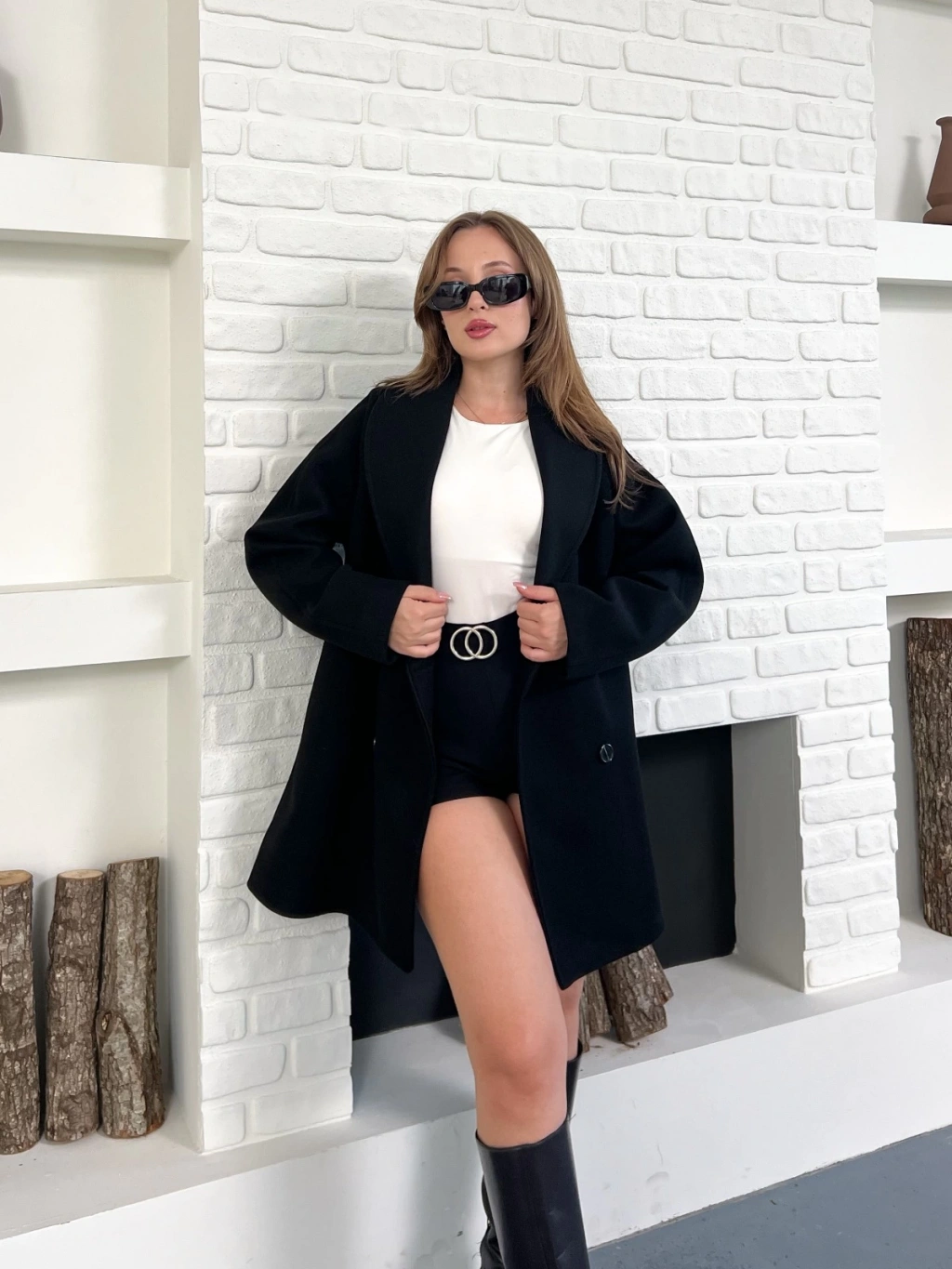 Düğme Detaylı Kaşe Ceket Siyah