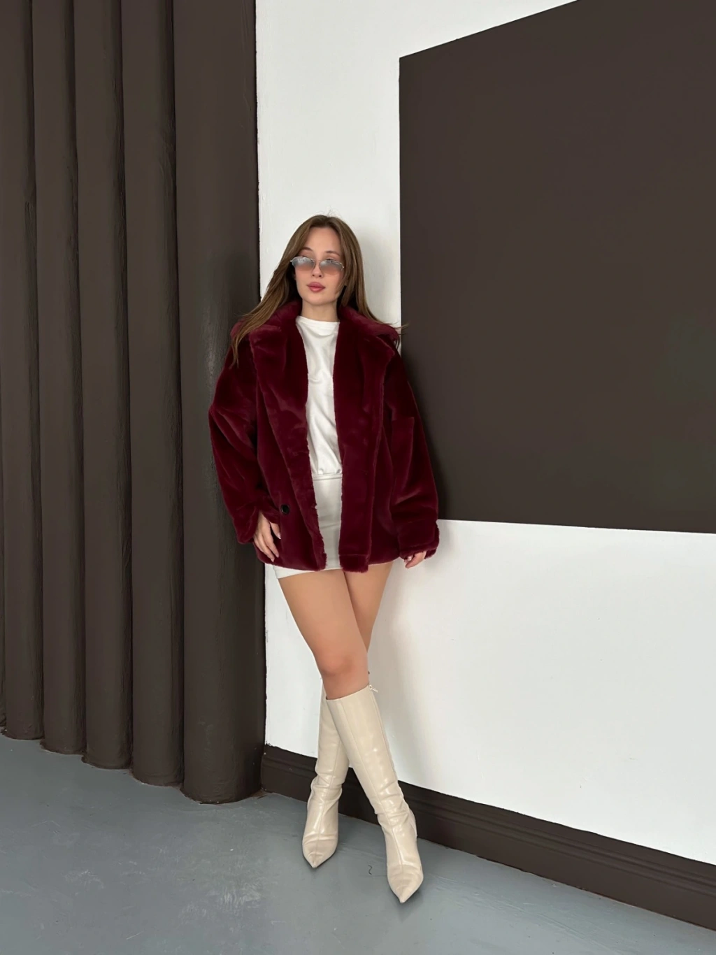 Kruvaze Yaka Cepli Kısa Kaşe Ceket Kahve