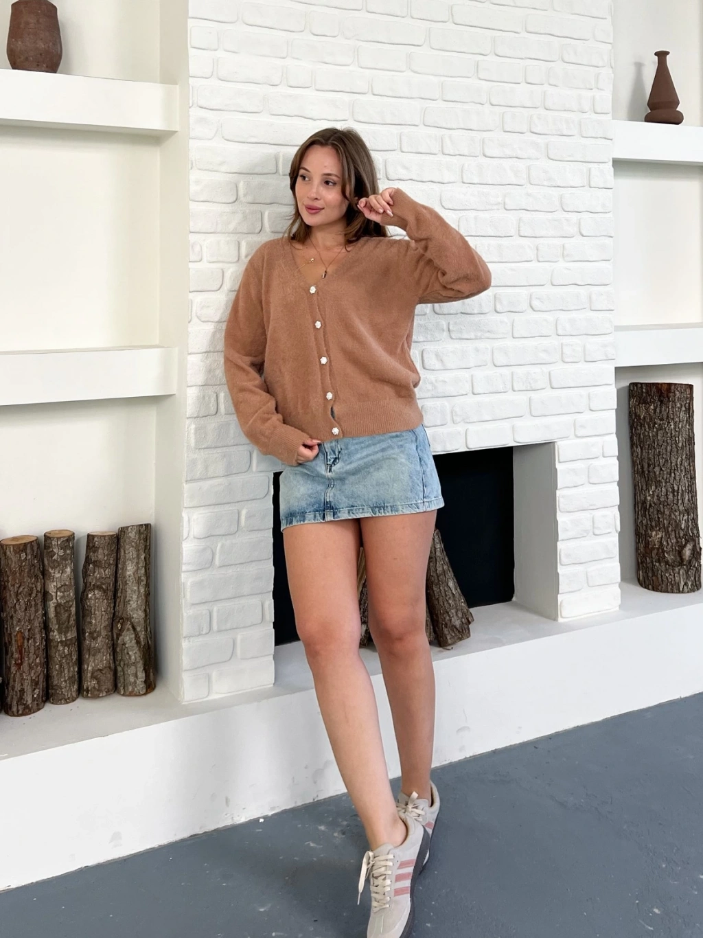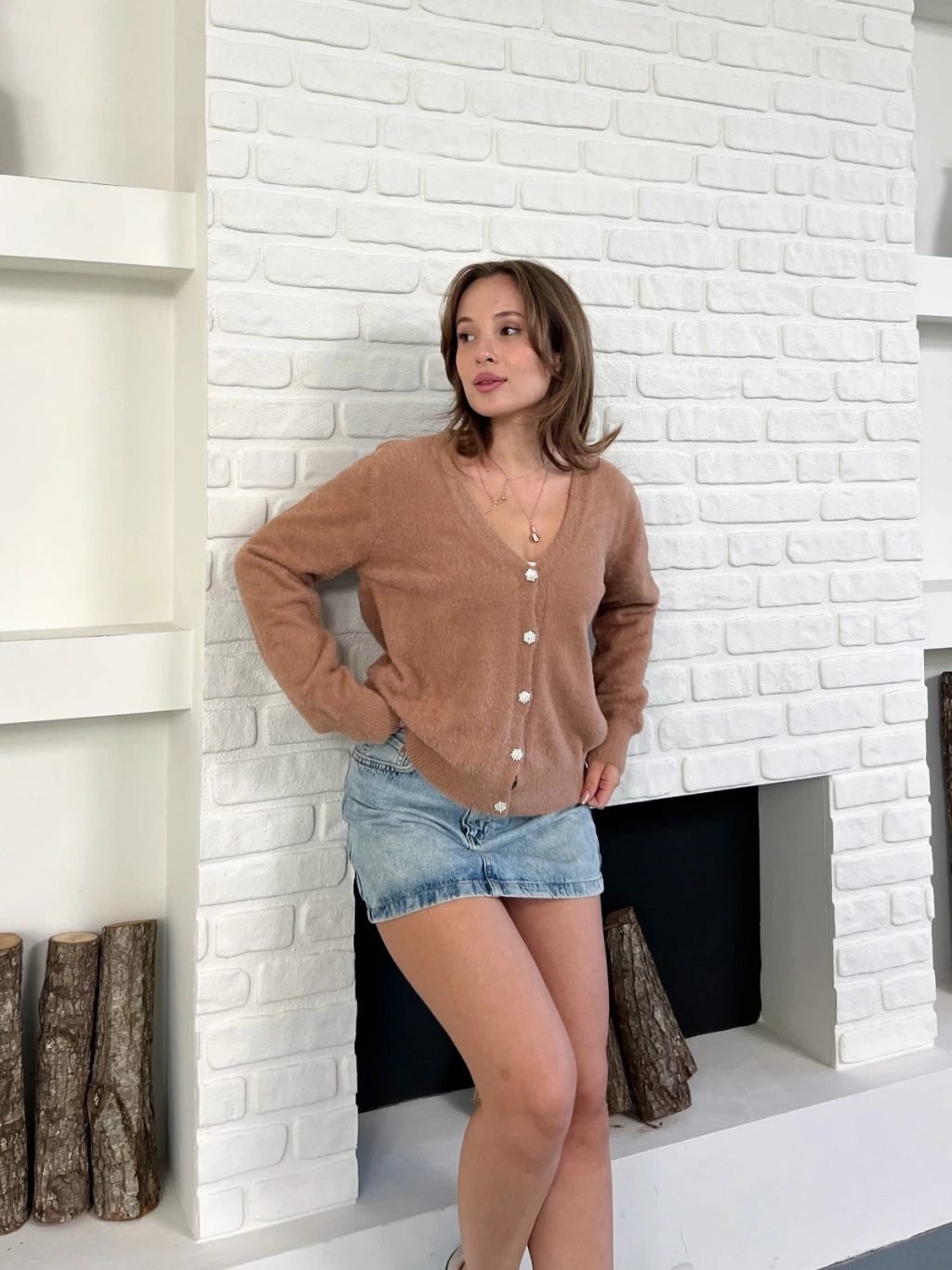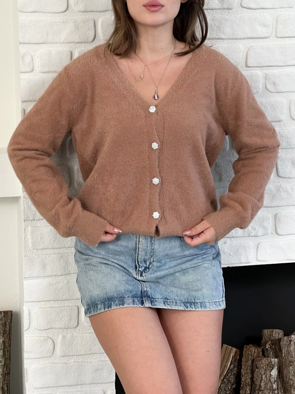 Düğme Detaylı Yumoş Hırka Kahve