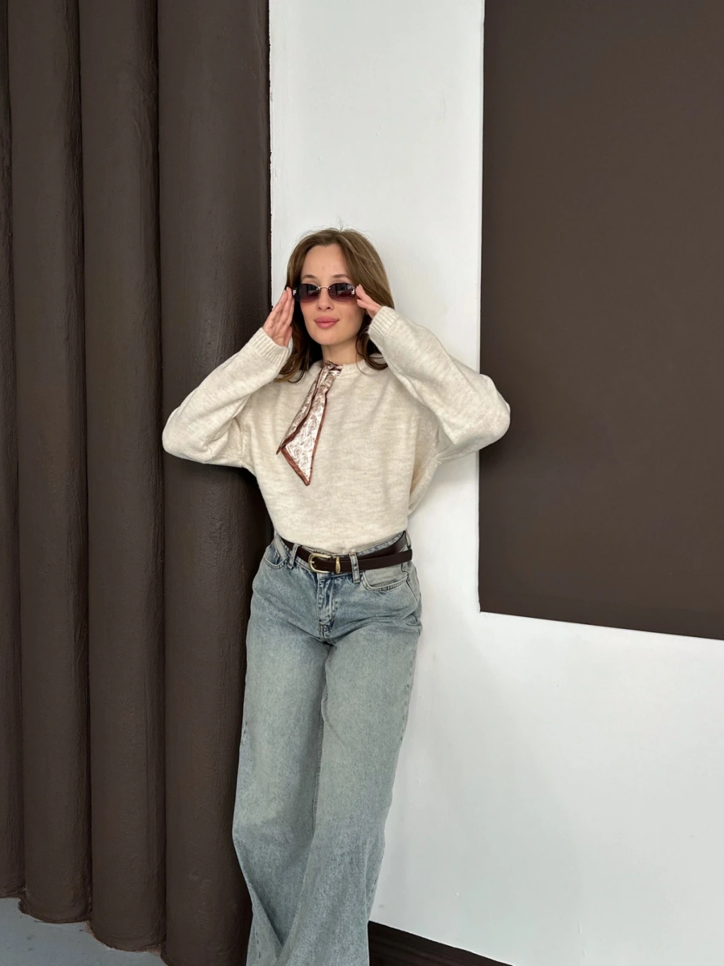 Yaka Düğme Detaylı Rahat Kesim Takım Acı Kahve