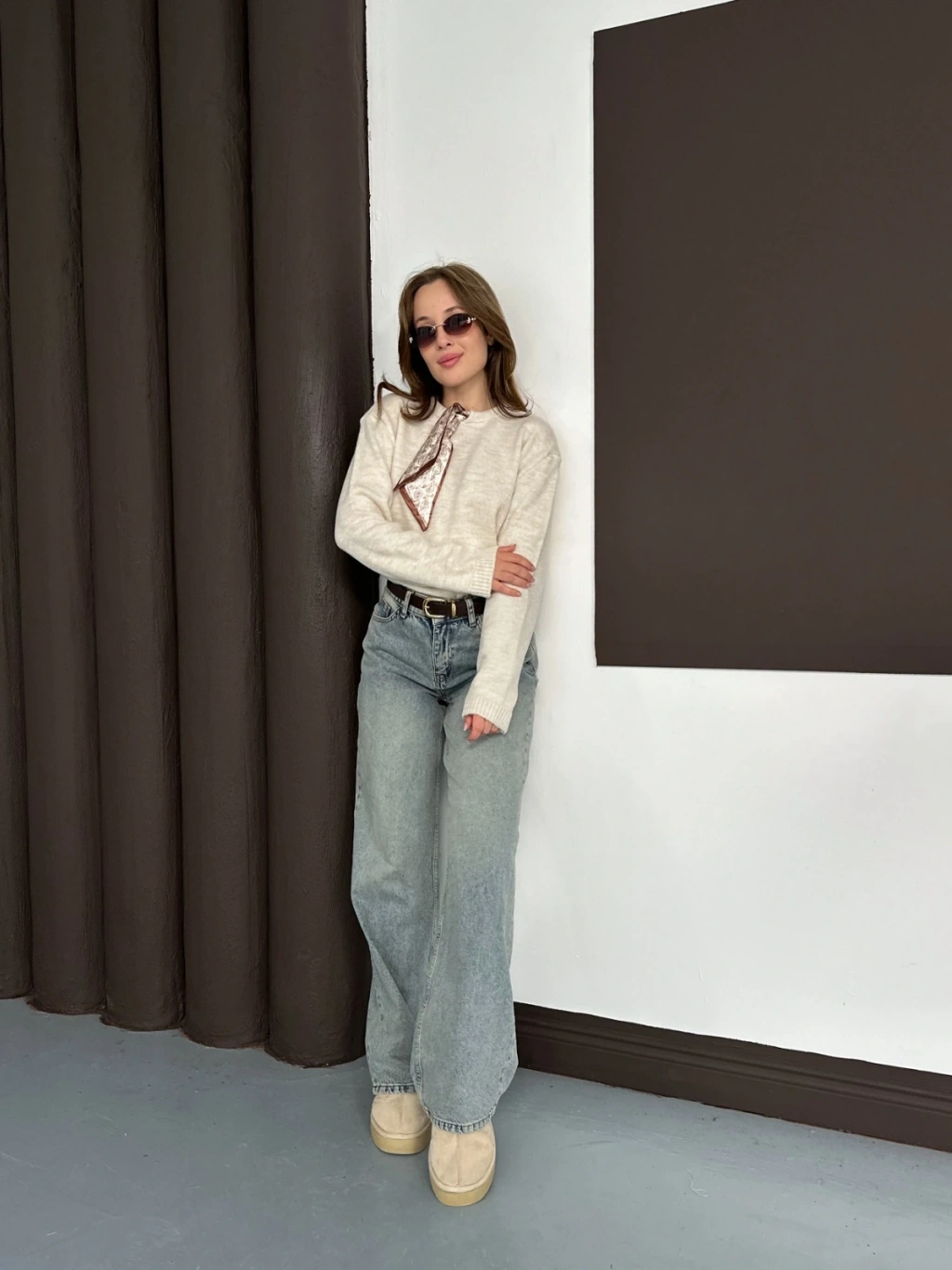 Yaka Düğme Detaylı Rahat Kesim Takım Taş