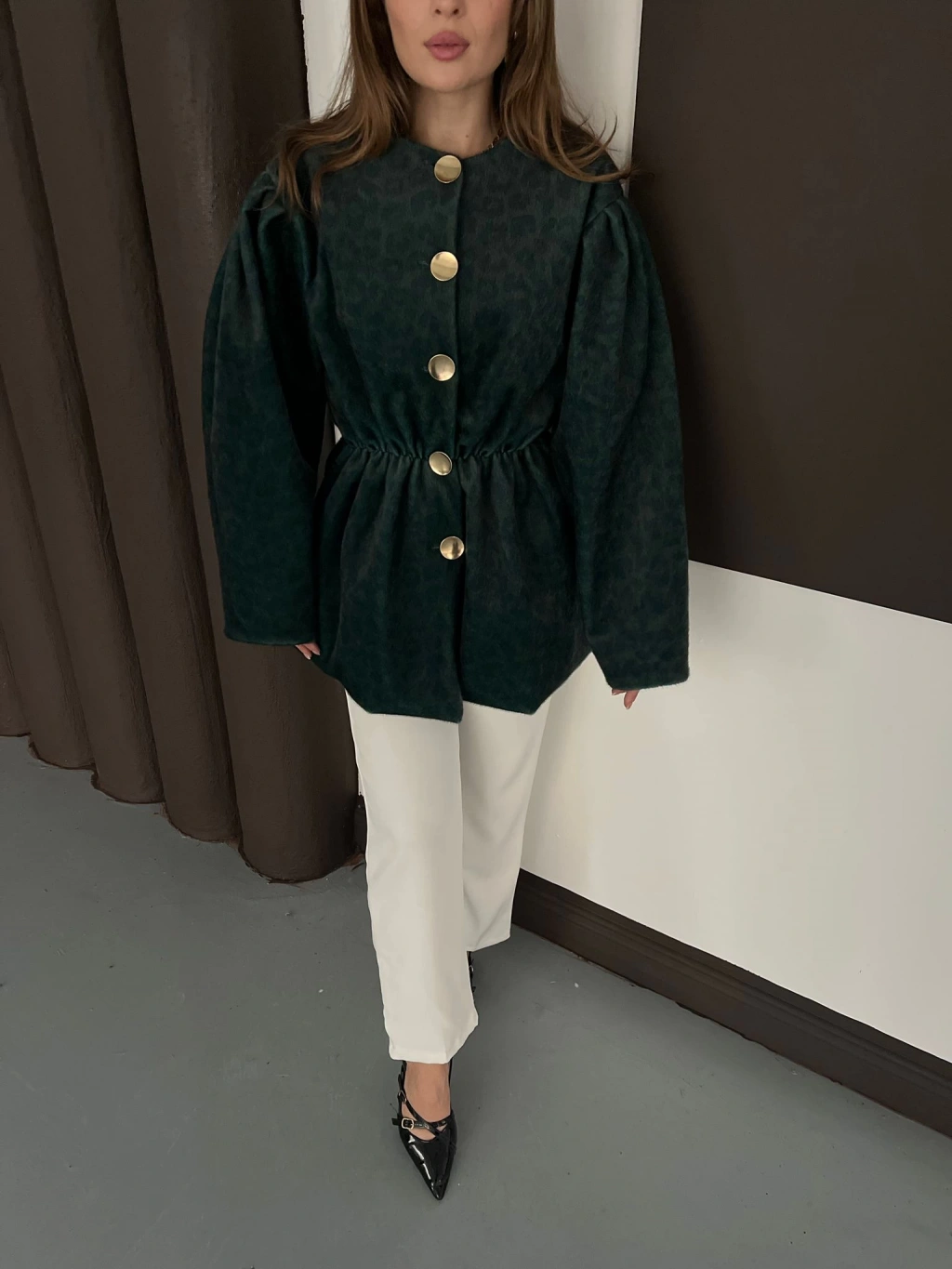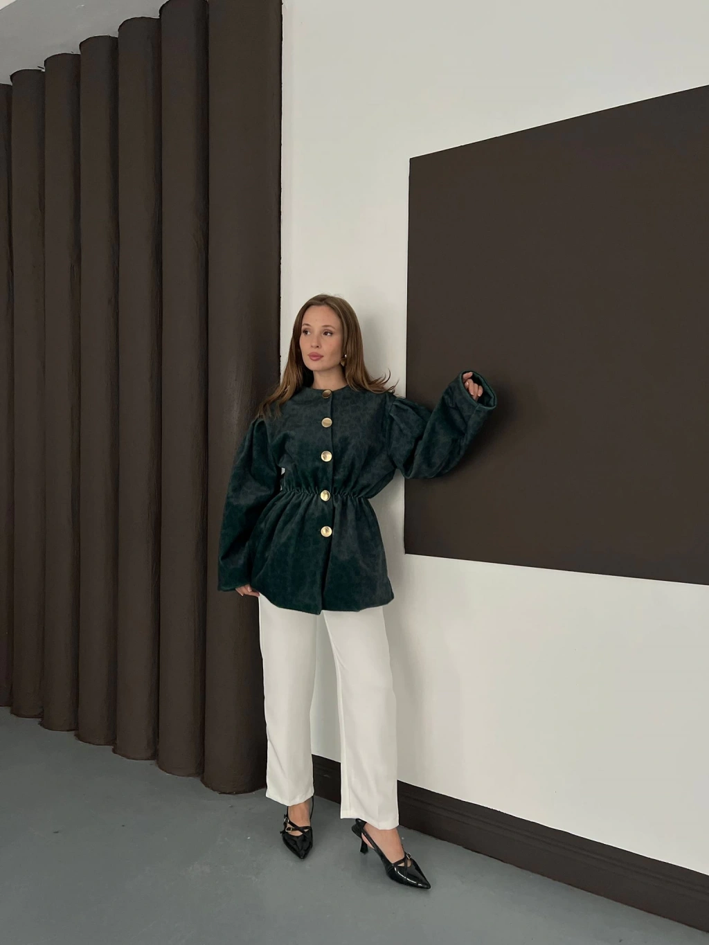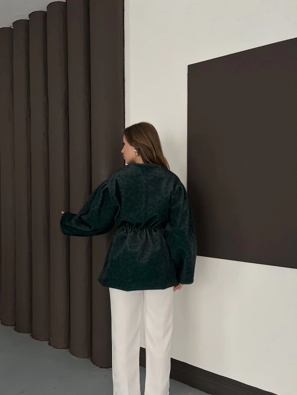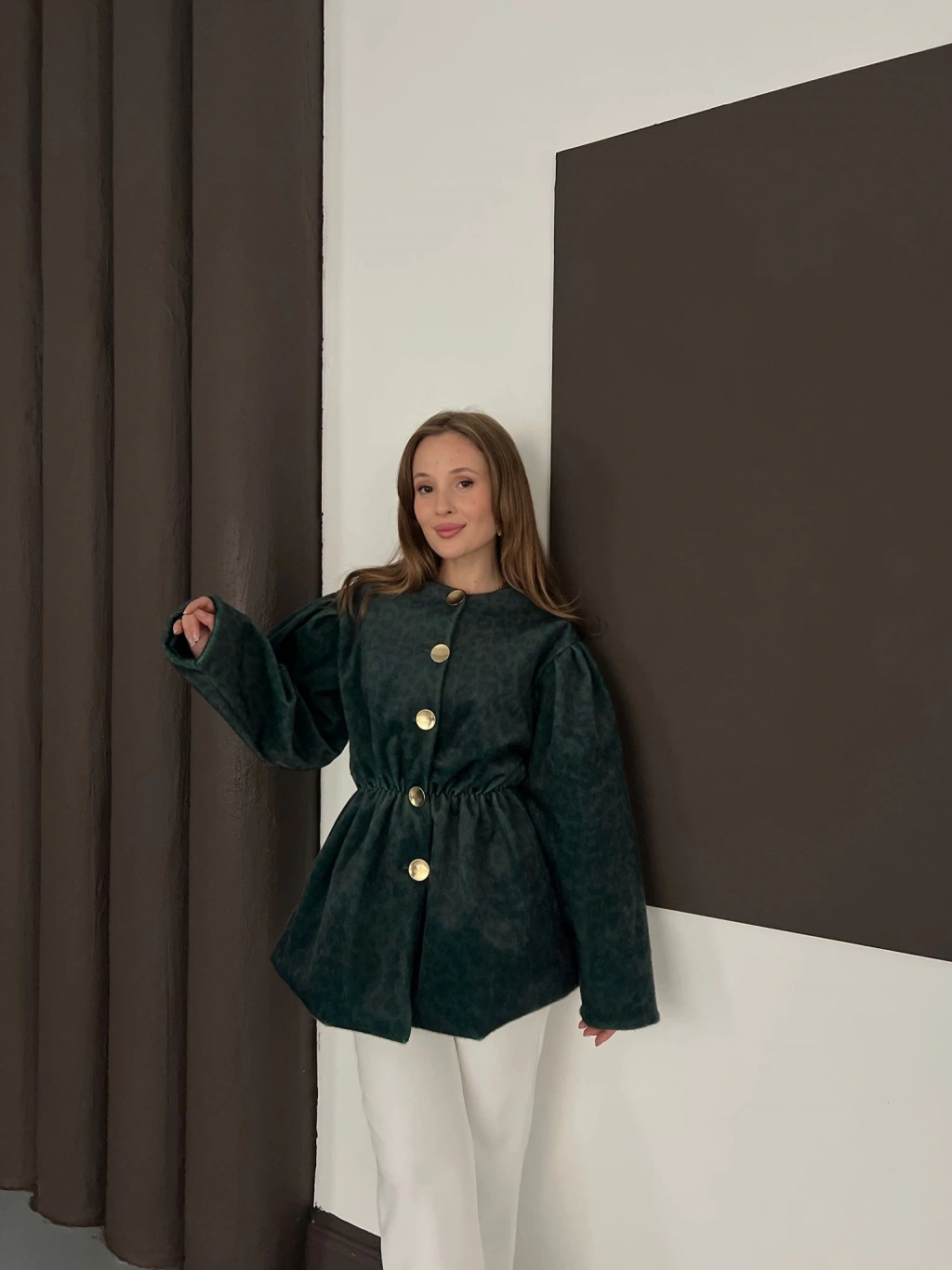 Kruvaze Yaka Cepli Kısa Kaşe Ceket Yeşil