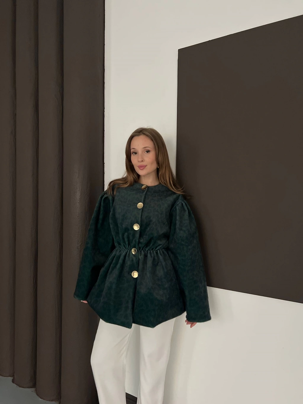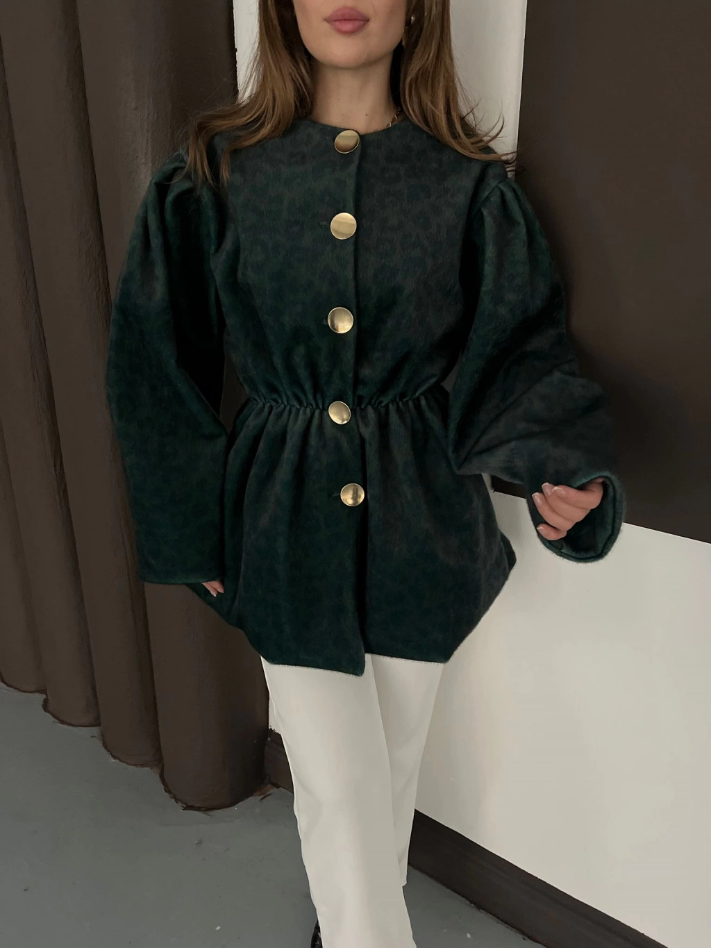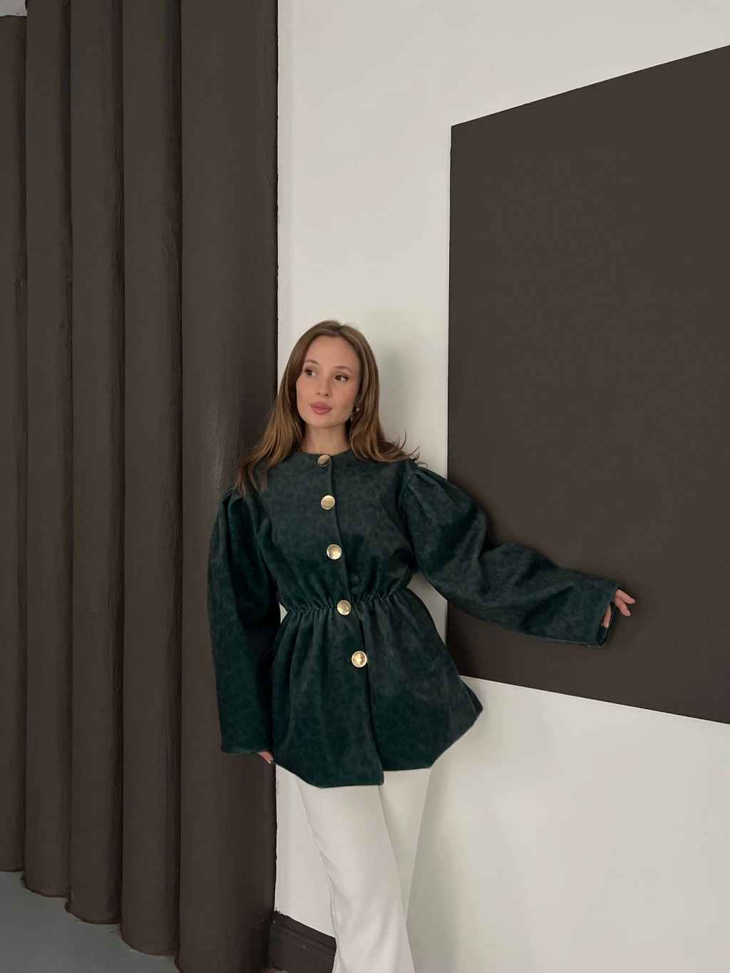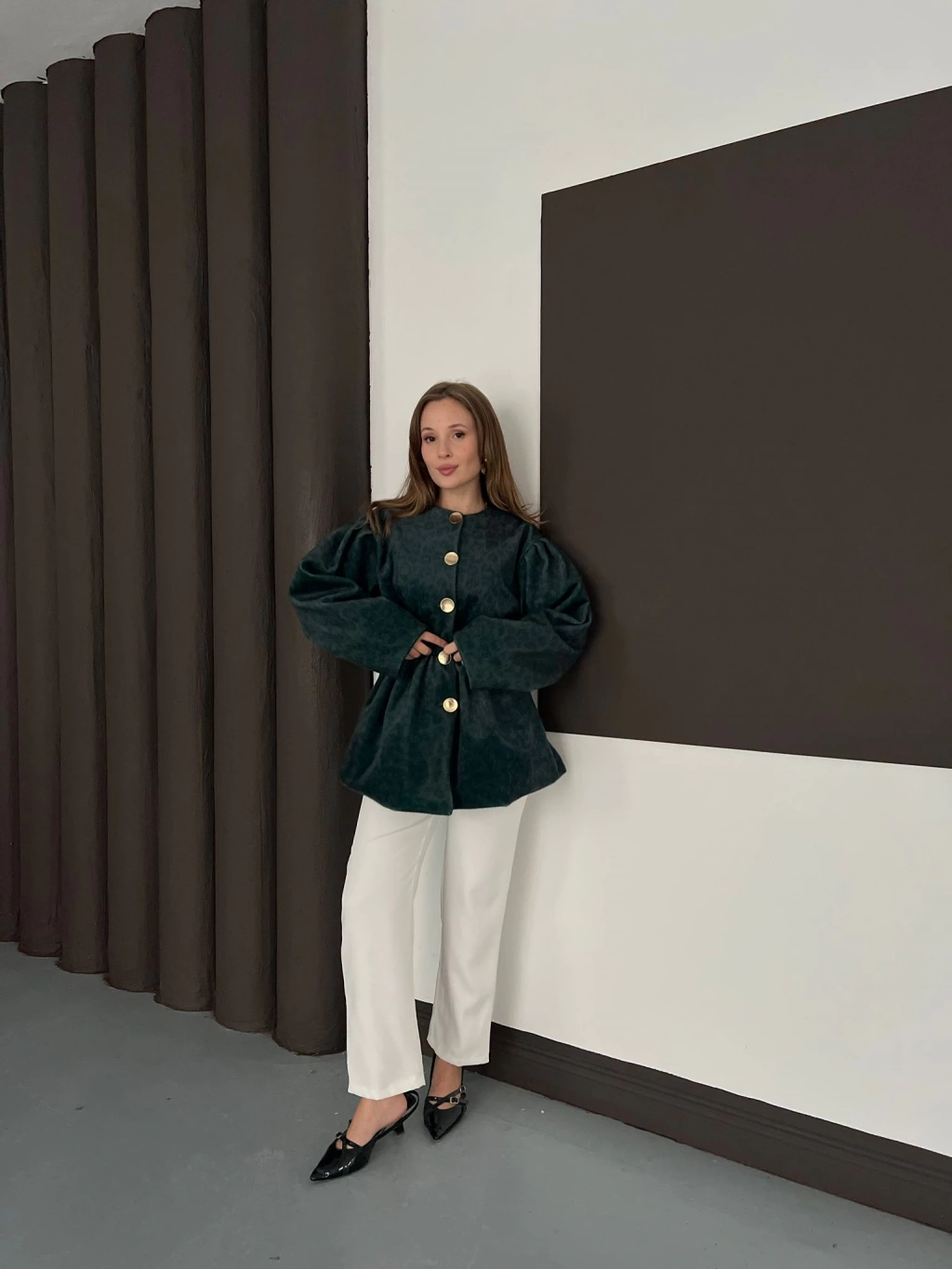 Kruvaze Yaka Cepli Kısa Kaşe Ceket Yeşil