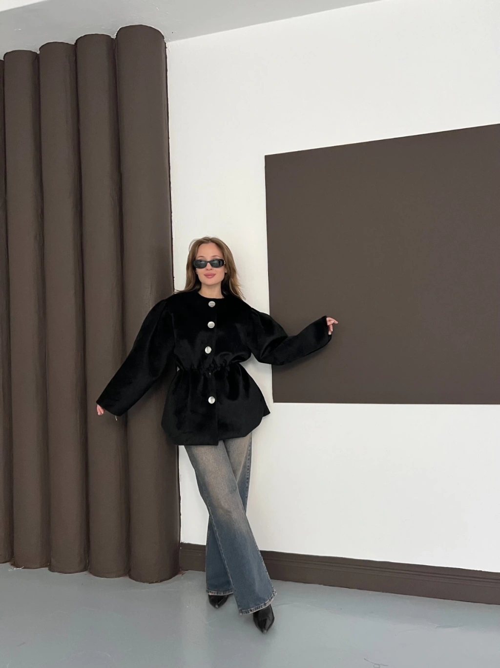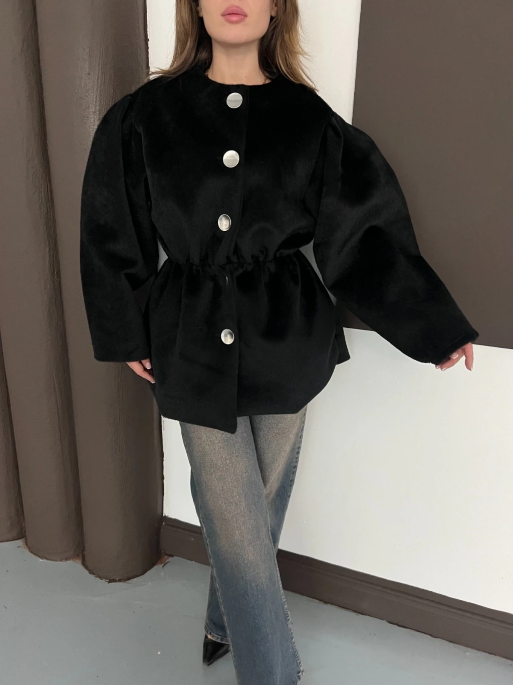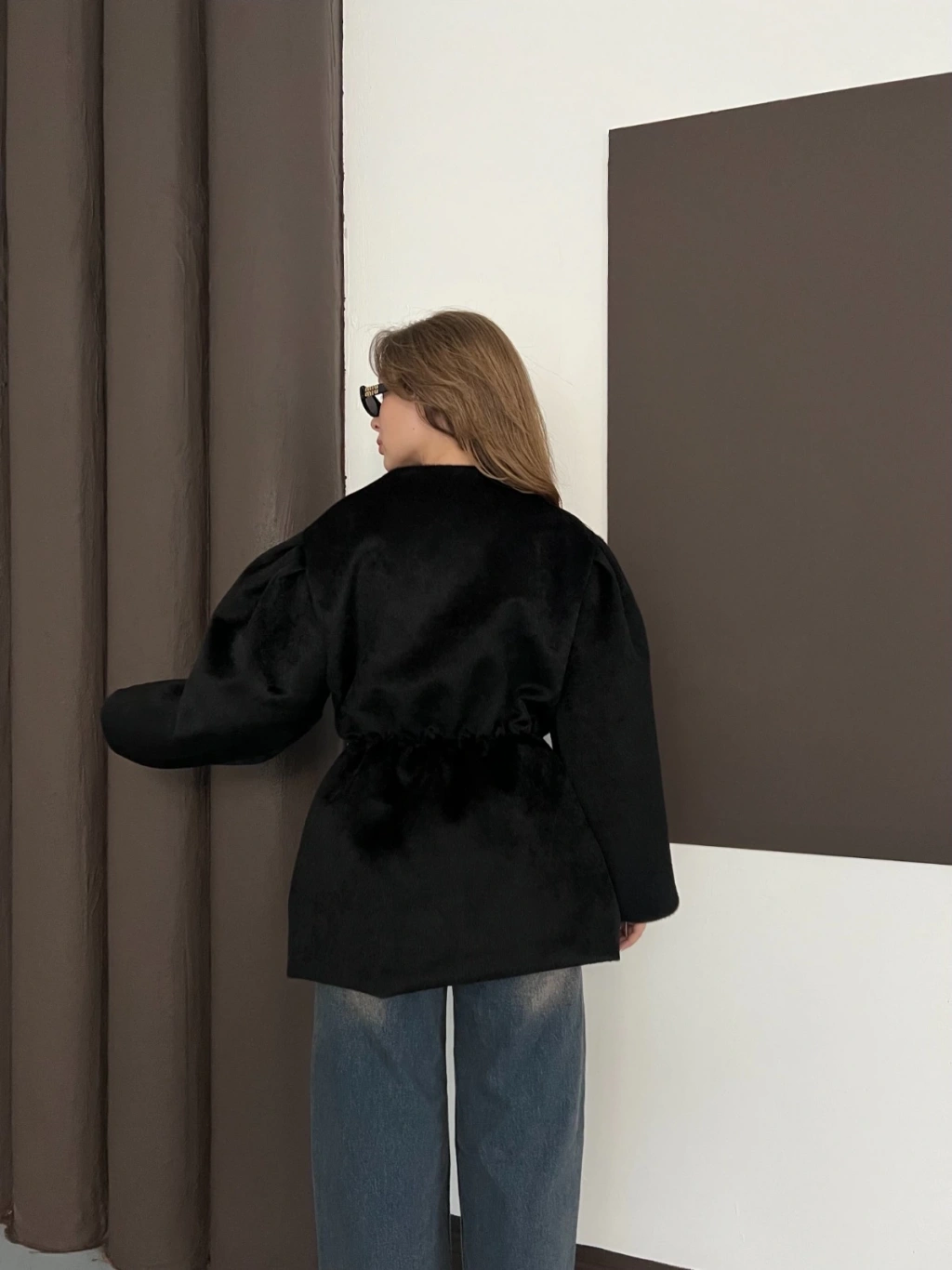Kruvaze Yaka Cepli Kısa Kaşe Ceket Kahve