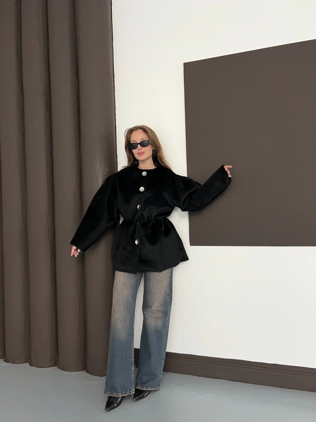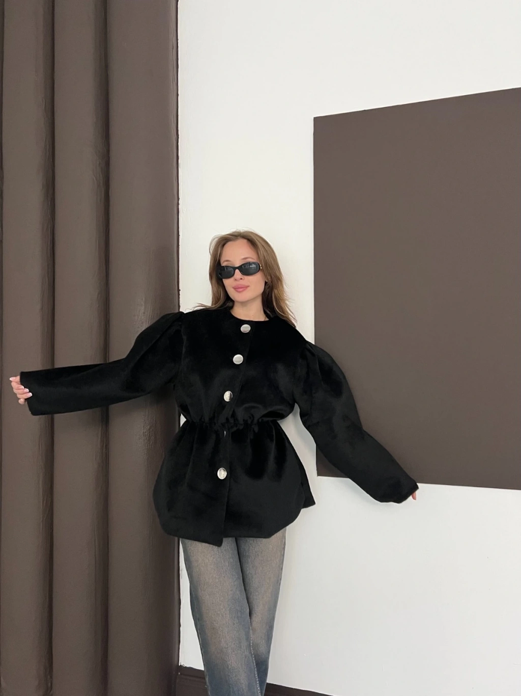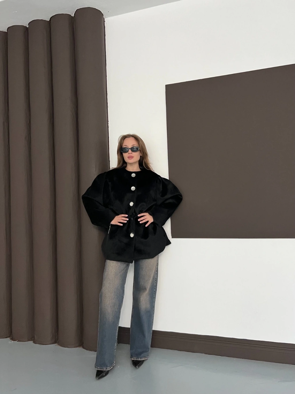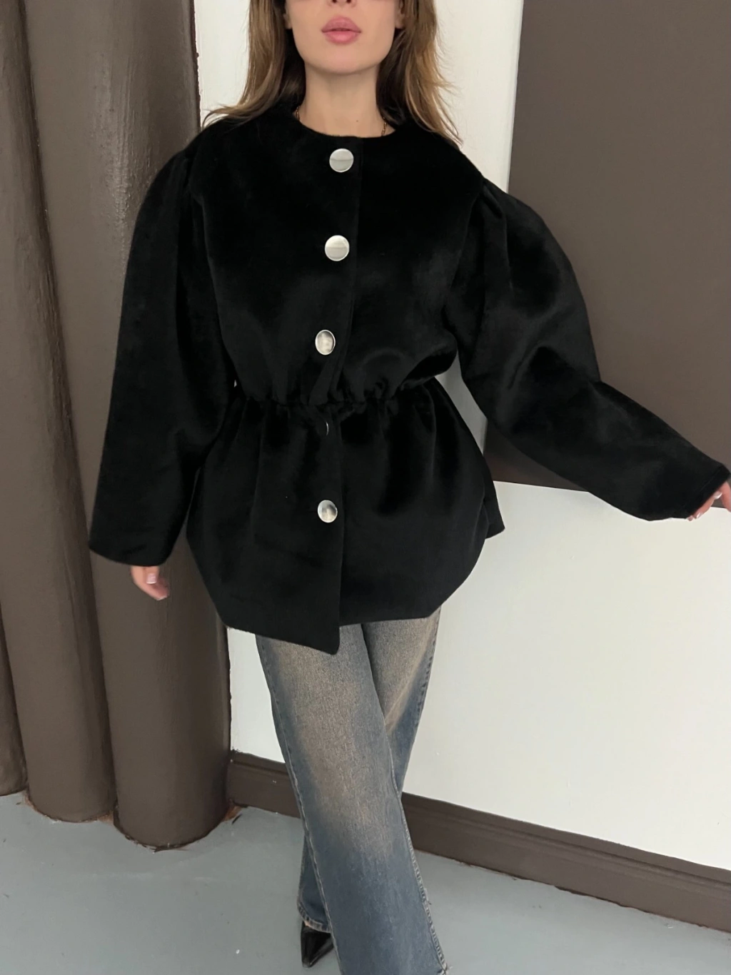 Kruvaze Yaka Cepli Kısa Kaşe Ceket Kahve