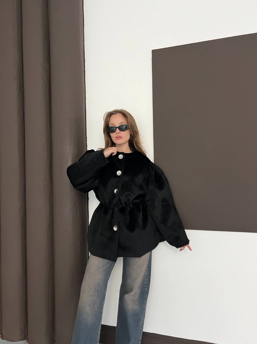 Yaka Düğme Detaylı Rahat Kesim Takım Siyah