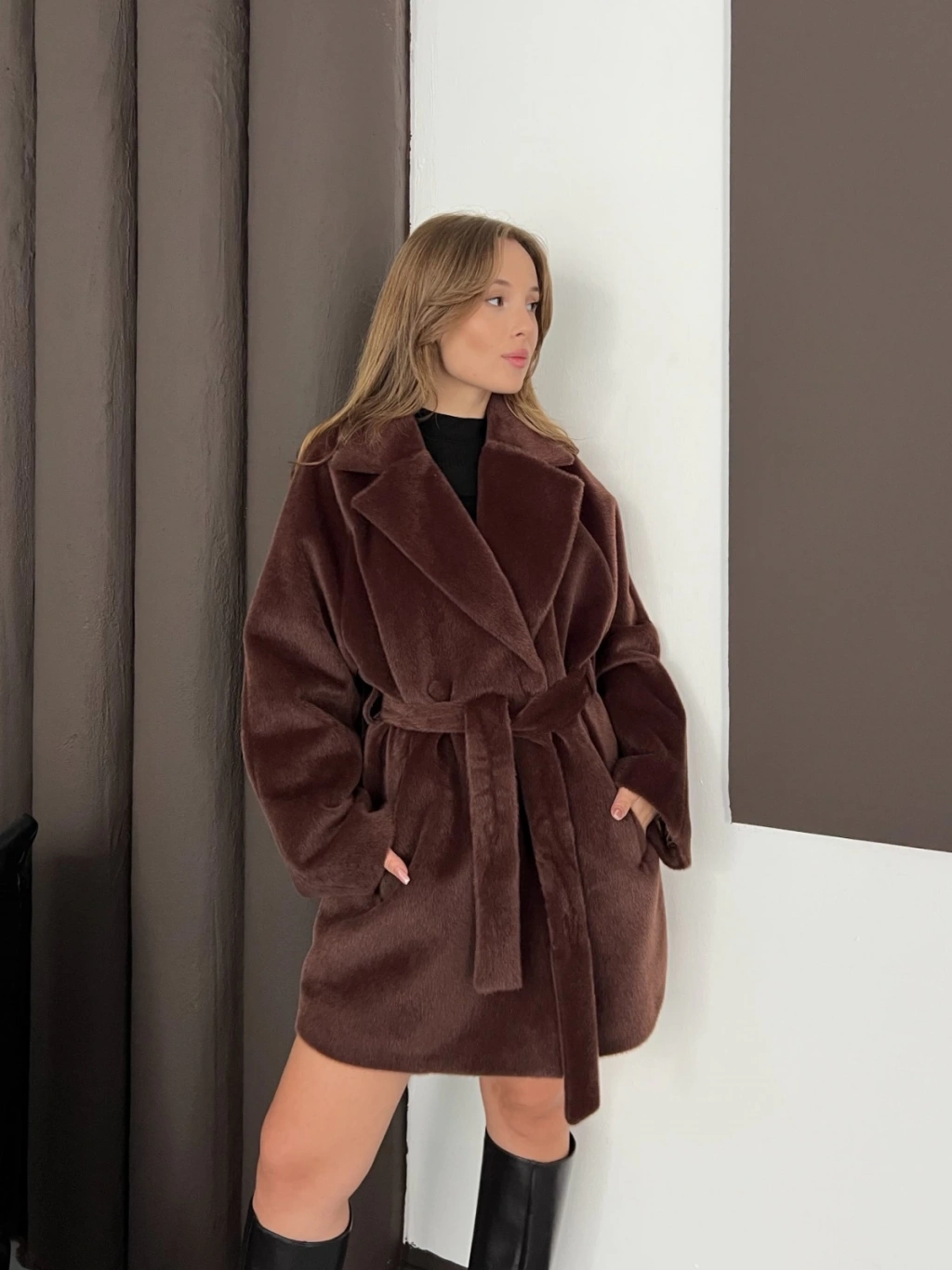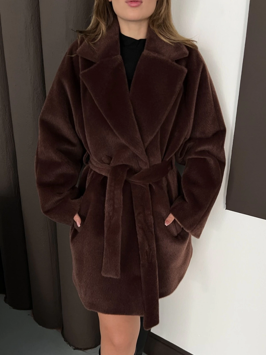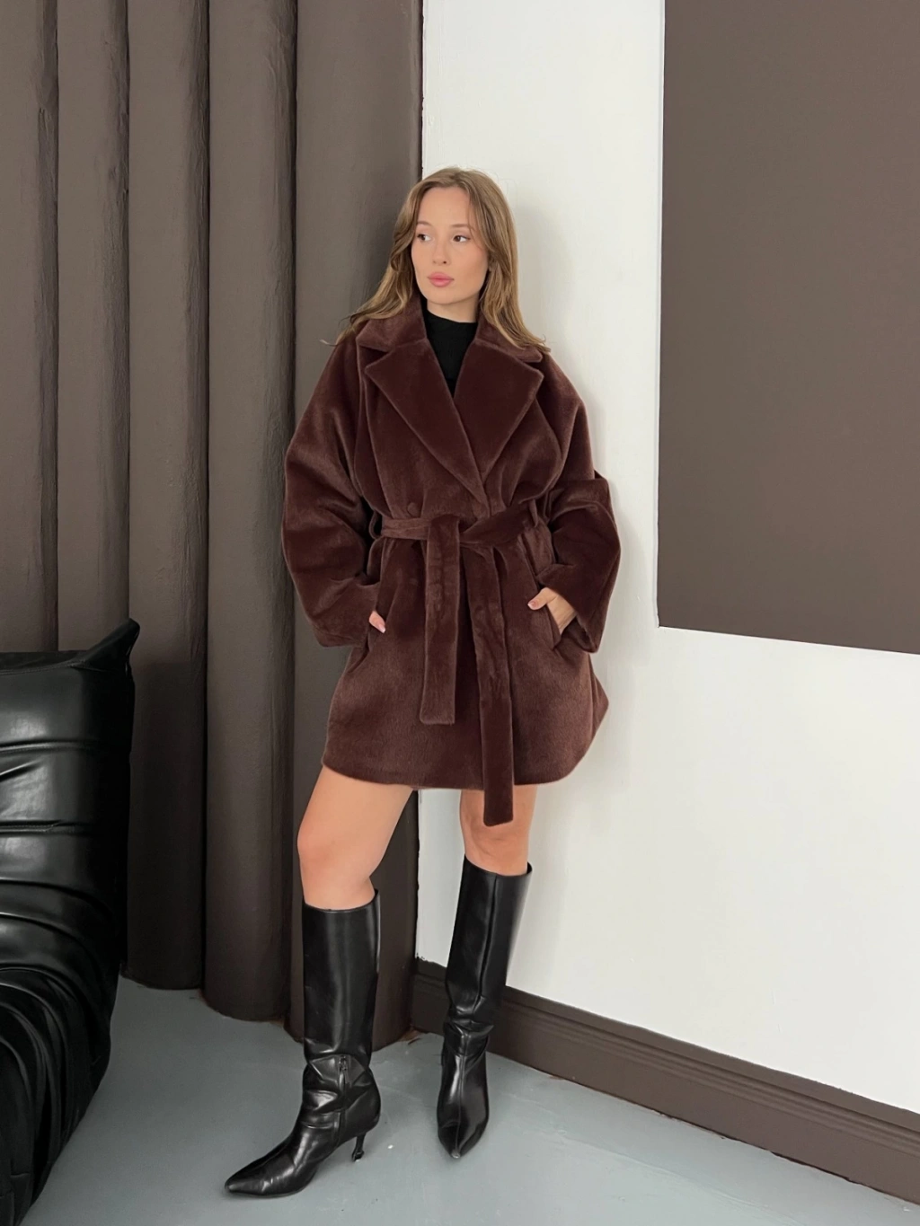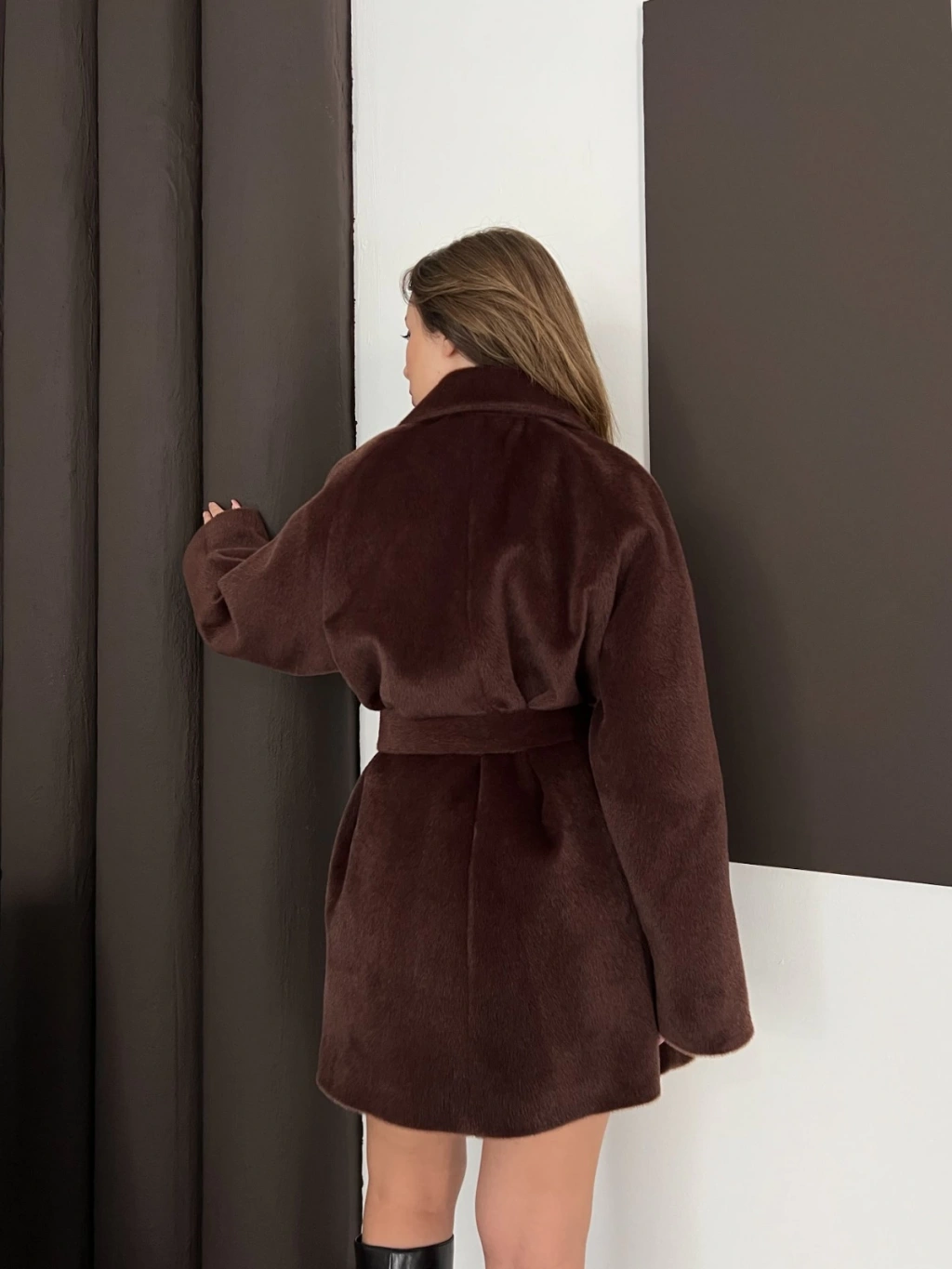 İçi Astarlı Yumoş Kumaş Kuşaklı Kaban Kahverengi