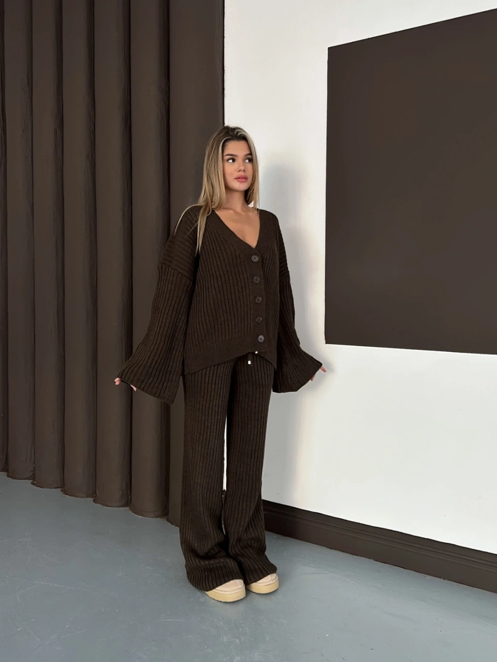 İspanyol Kol Düğme Detaylı Hırkalı Takım