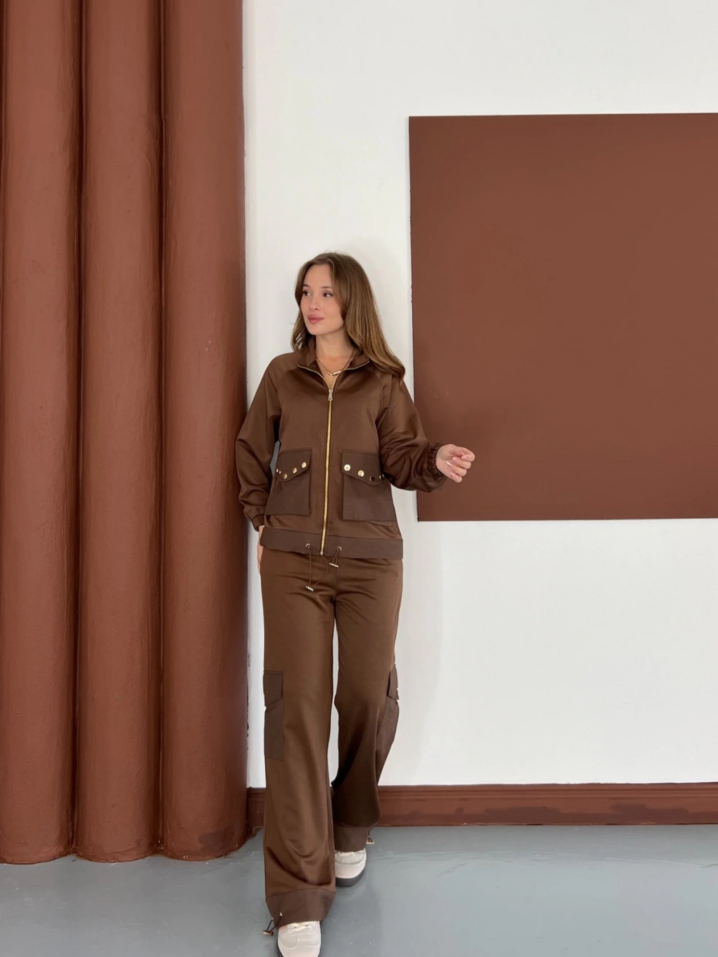 Kapüşonlu Aksesuar Detaylı Eşofman Takım Kahverengi