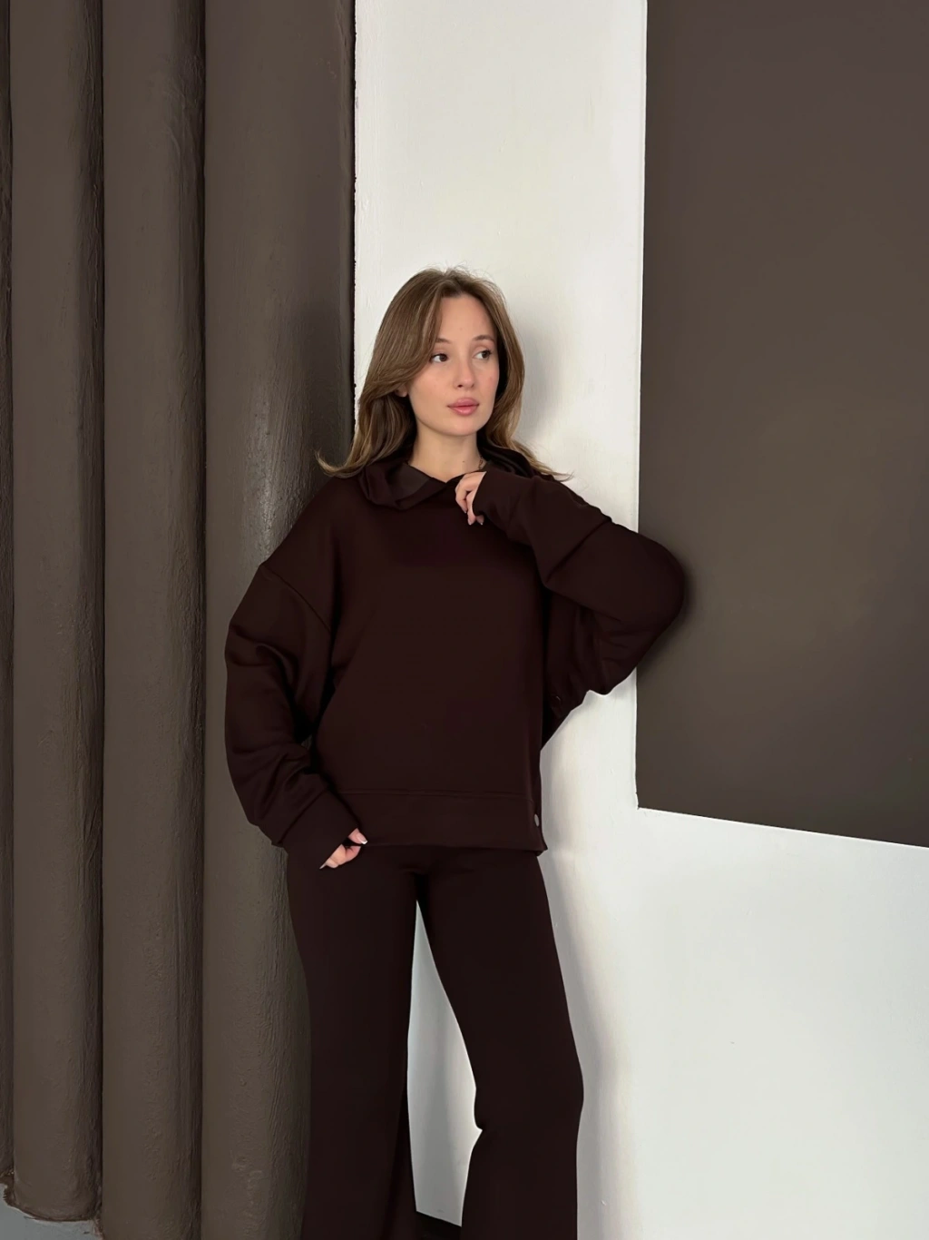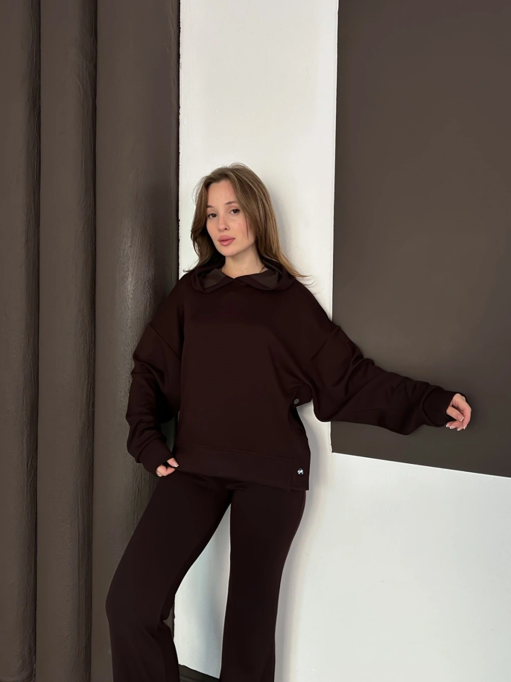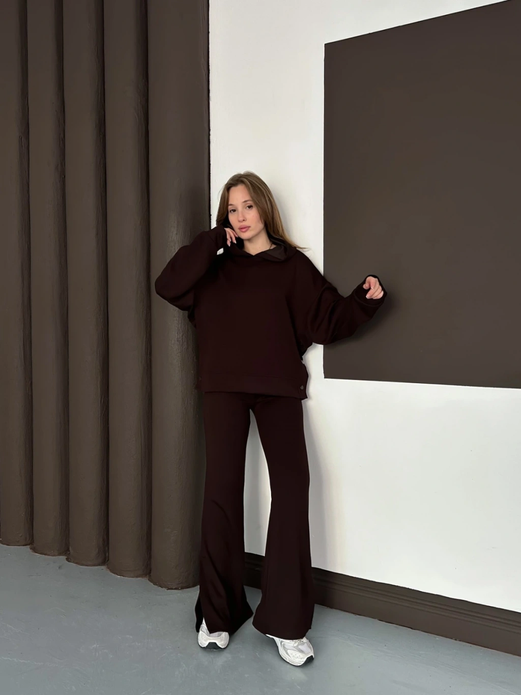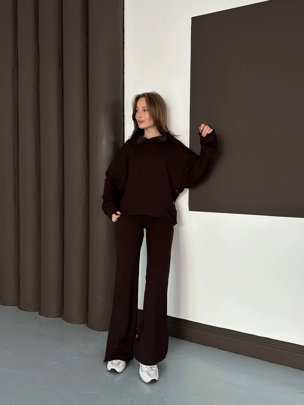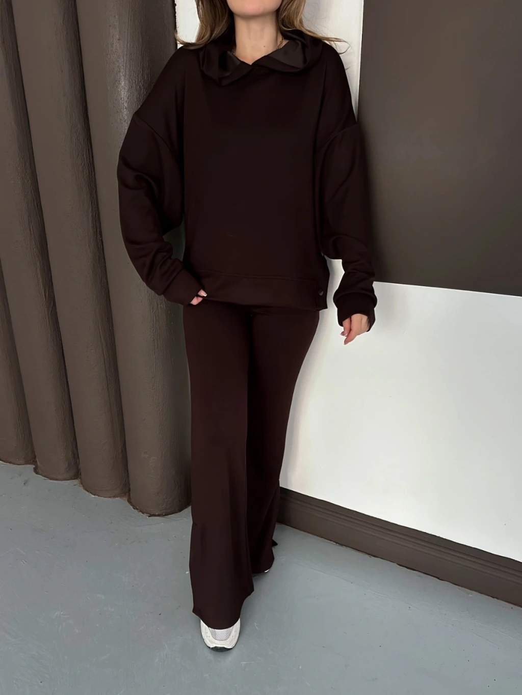 Kapüşonlu Modal Pantolonlu İkili Set Kahverengi
