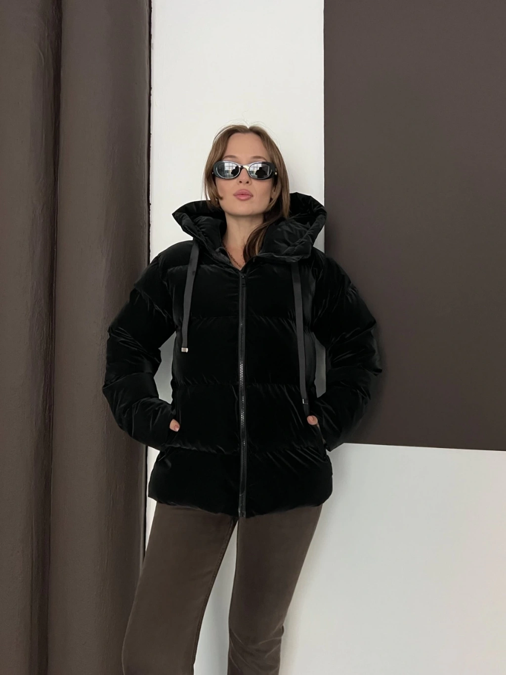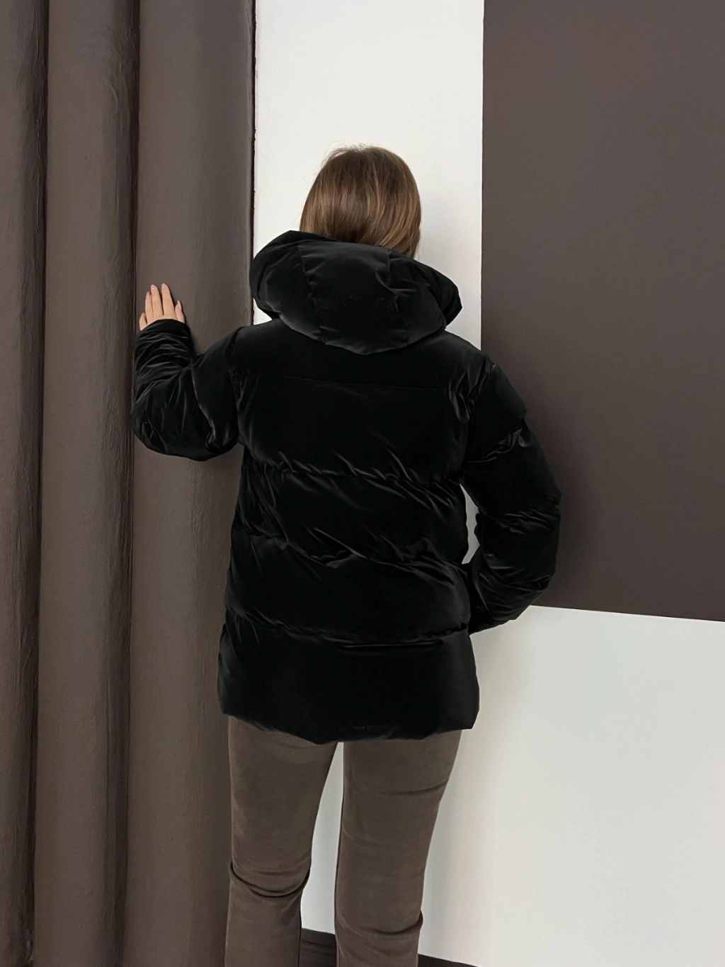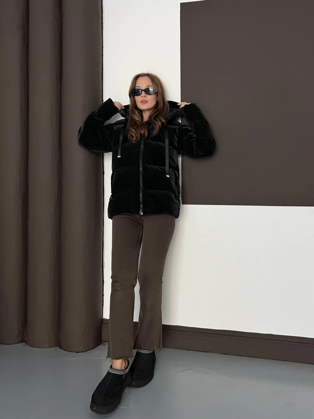 Yaka Peluşlu Kemer Detaylı Şişme Mont Siyah