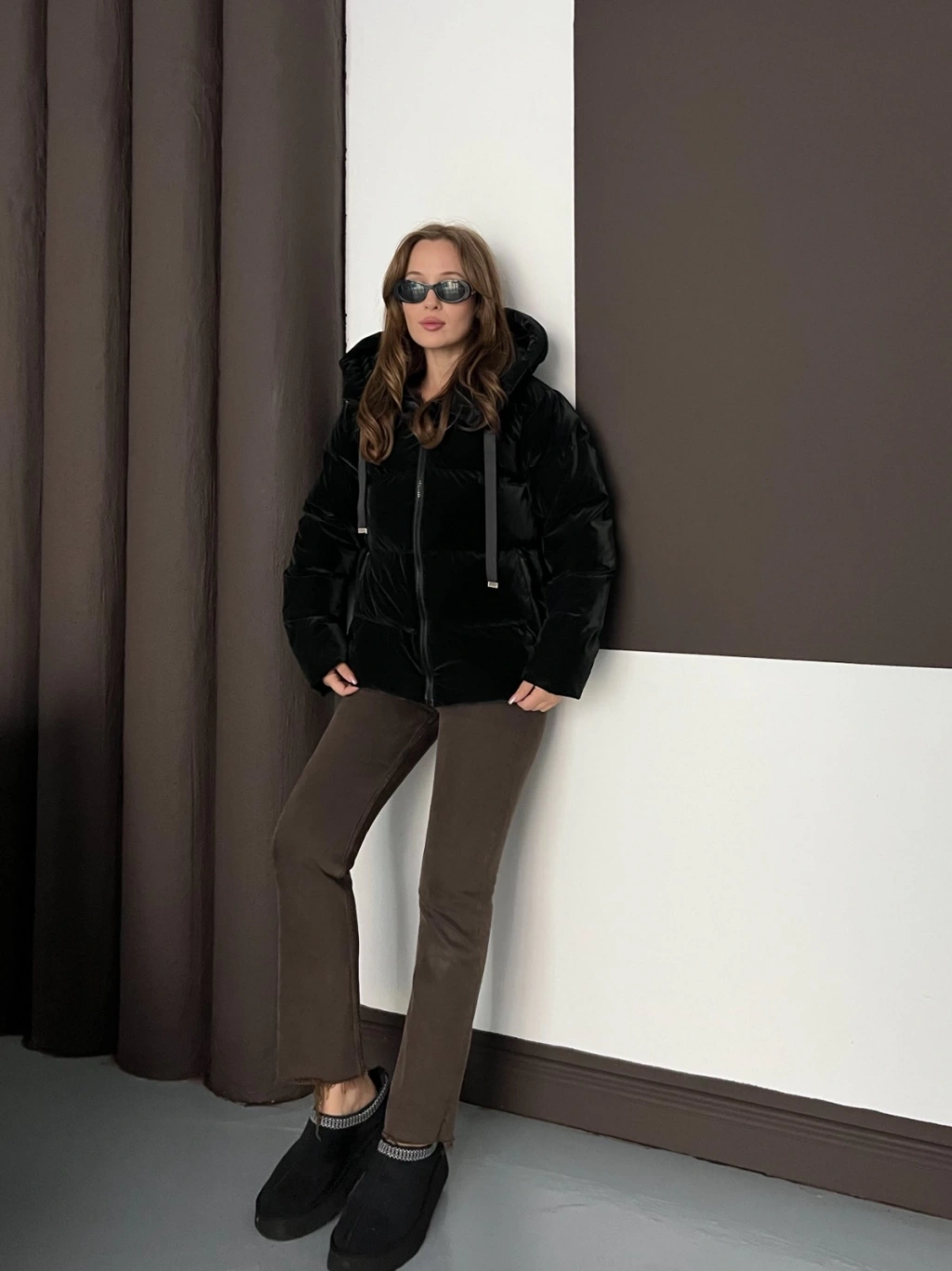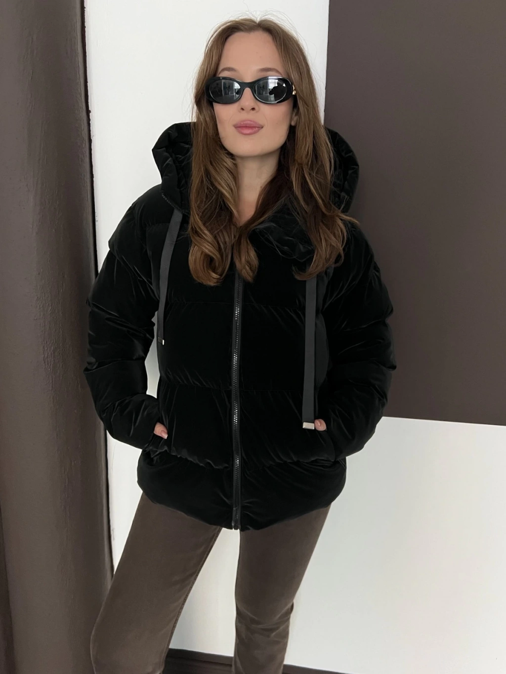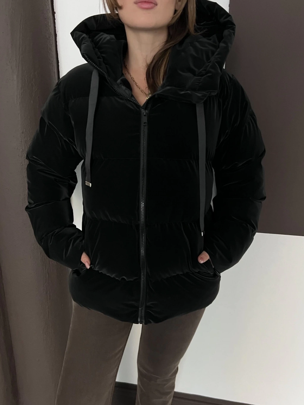 Yaka Peluşlu Kemer Detaylı Şişme Mont Siyah