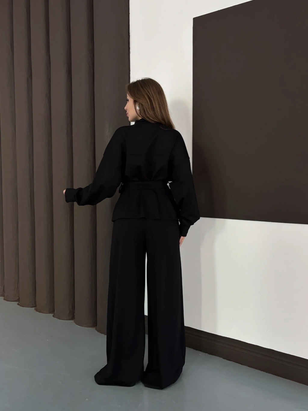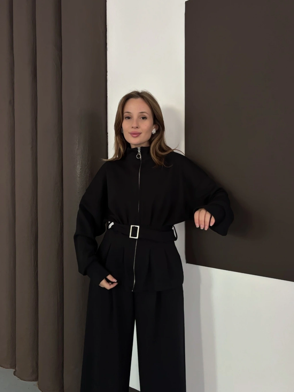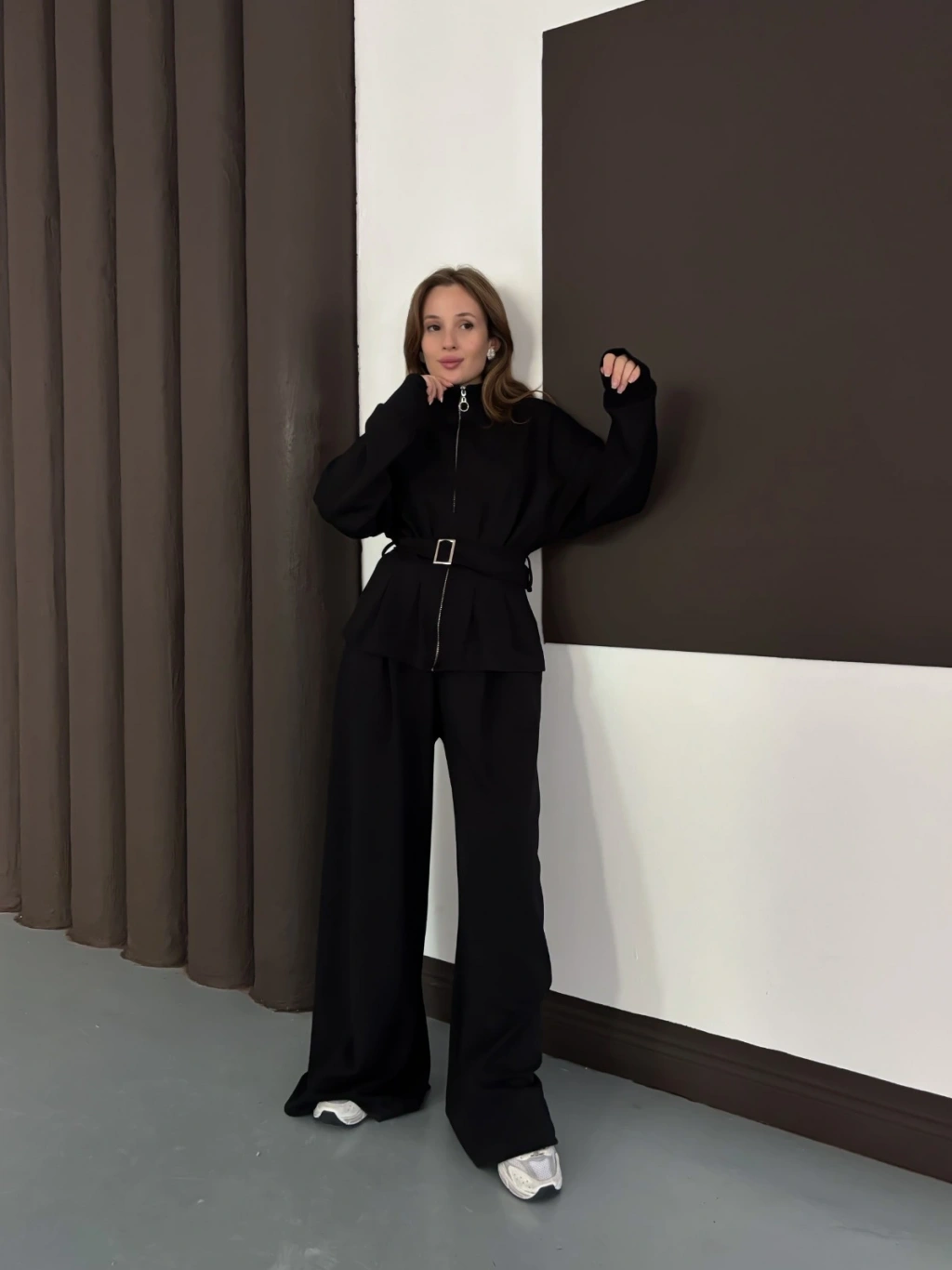 Kemer Detaylı Pantolonlu İkili Takım Siyah