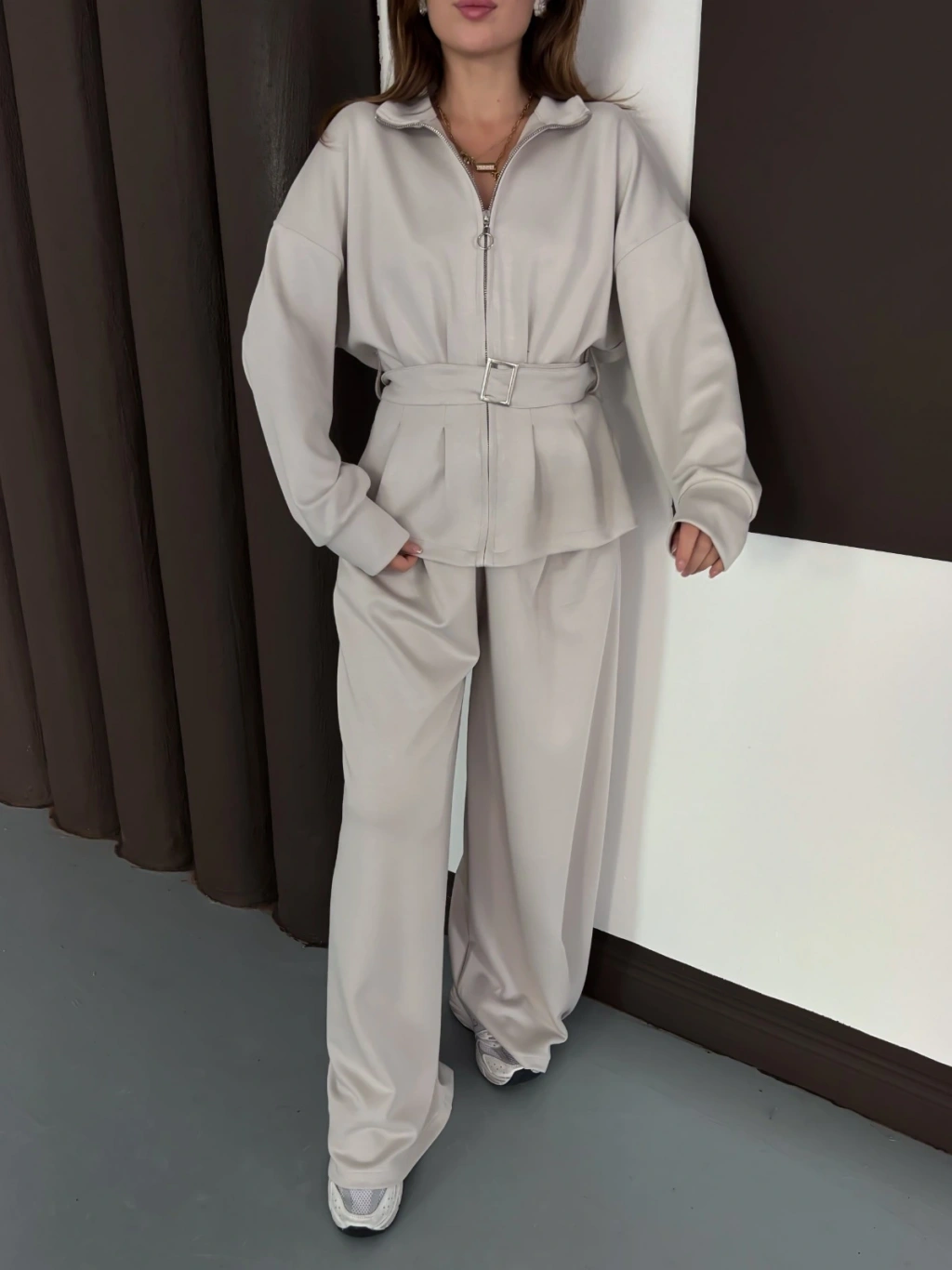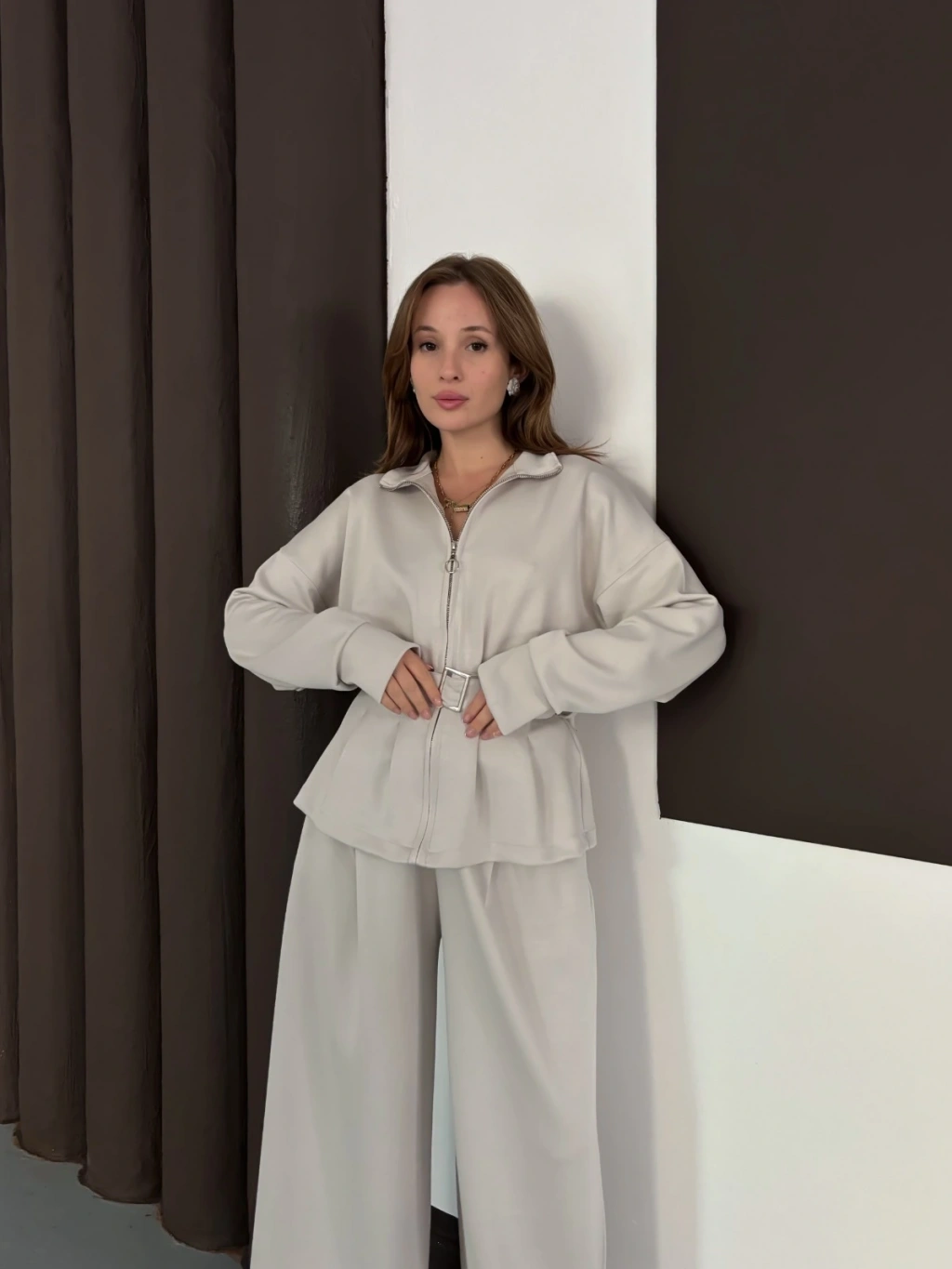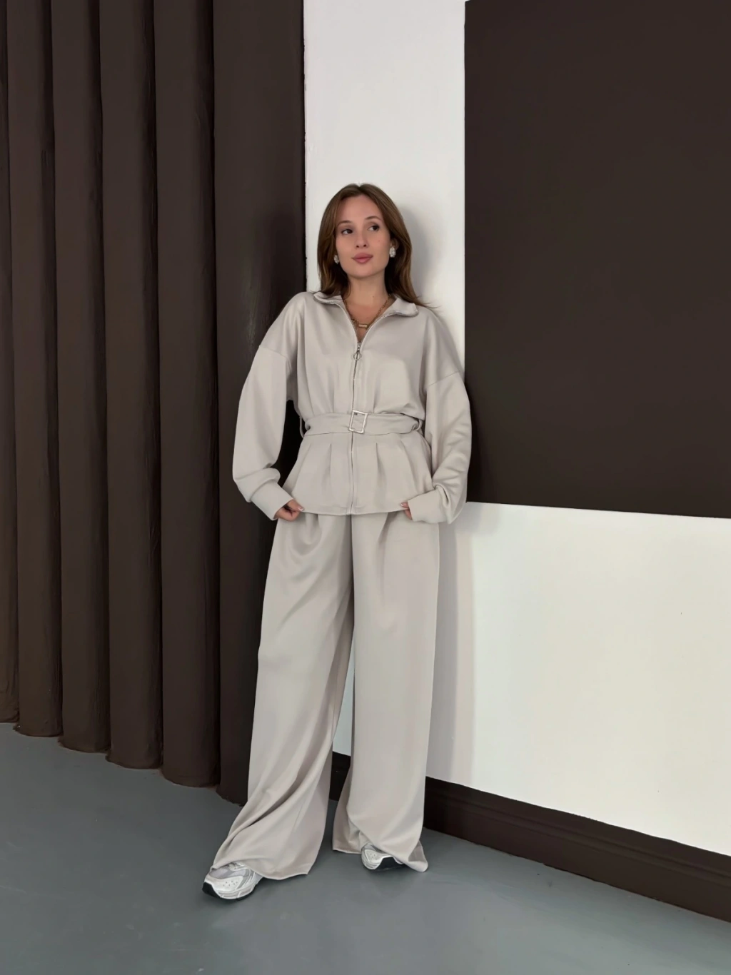 Kemer Detaylı Pantolonlu İkili Takım Taş