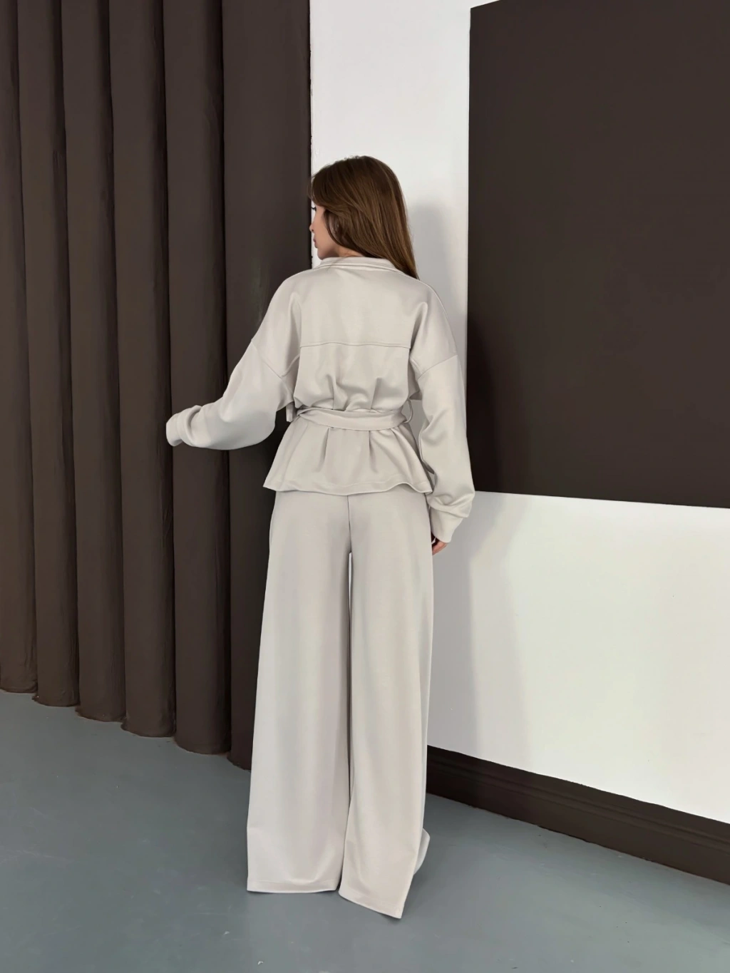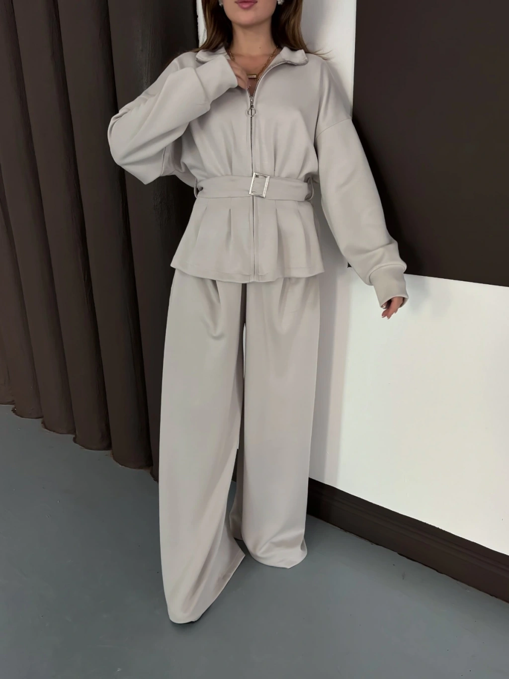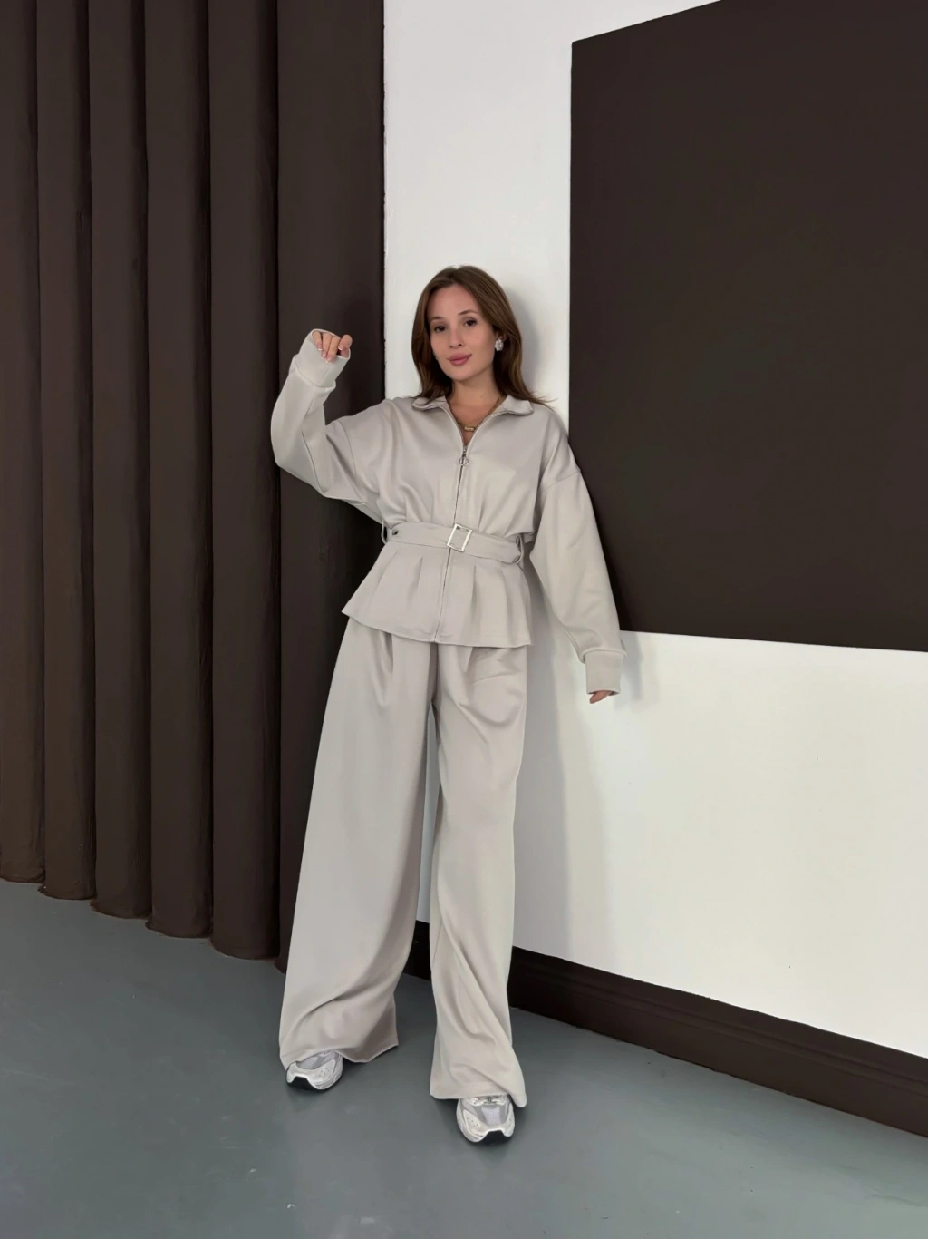Kemer Detaylı Pantolonlu İkili Takım Taş
