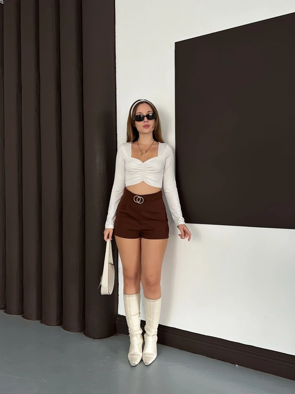 Kemer Detaylı Şort Kahve