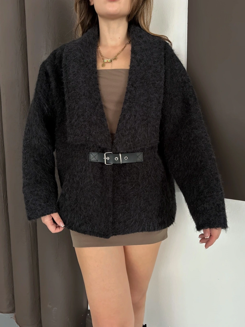 Kruvaze Yaka Cepli Kısa Kaşe Ceket Kahve