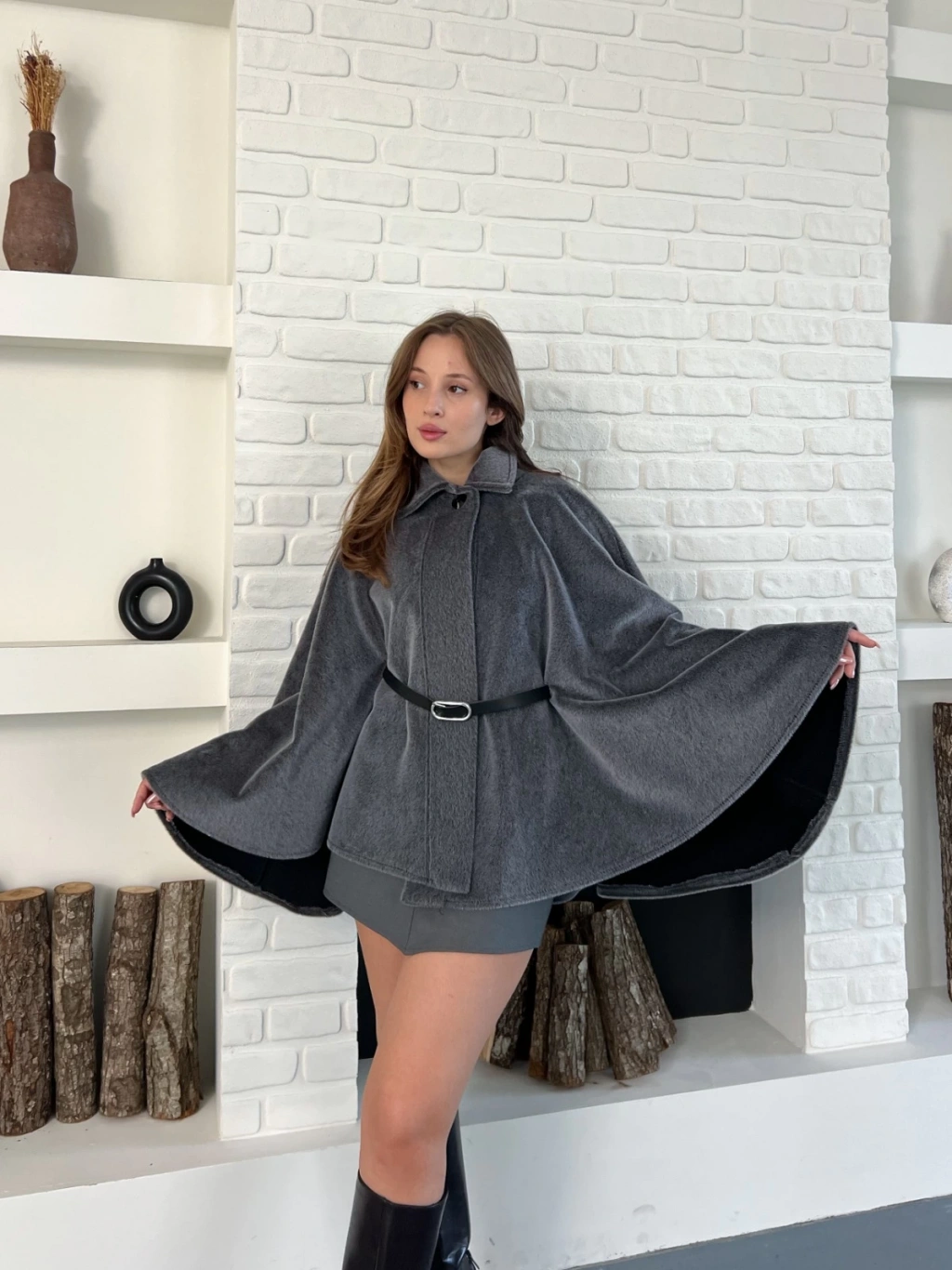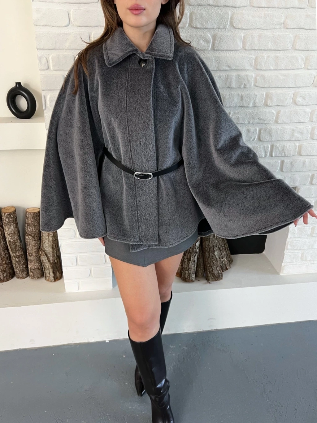 Kemer Detaylı Yarasa Kol Panço Antrasit
