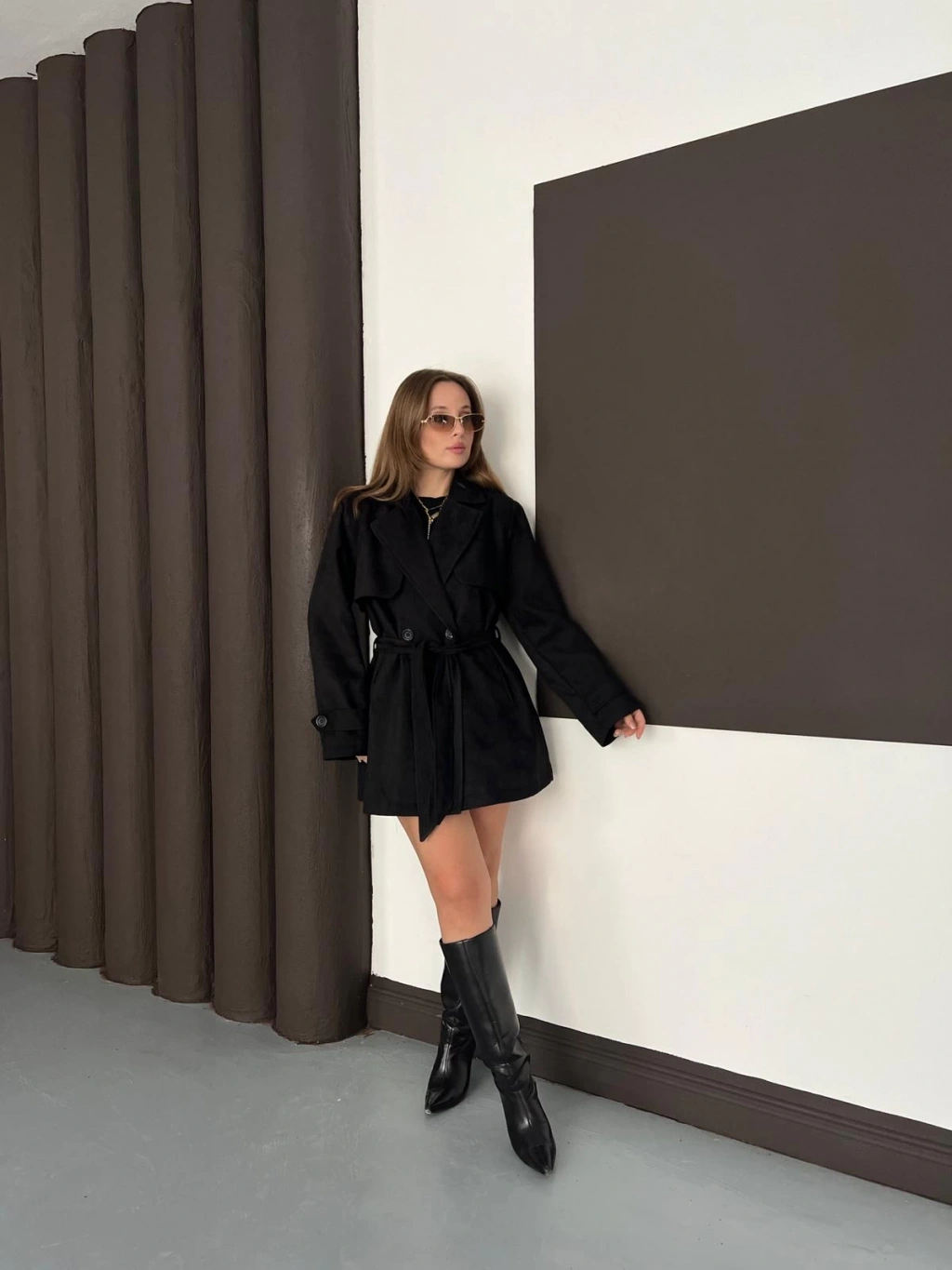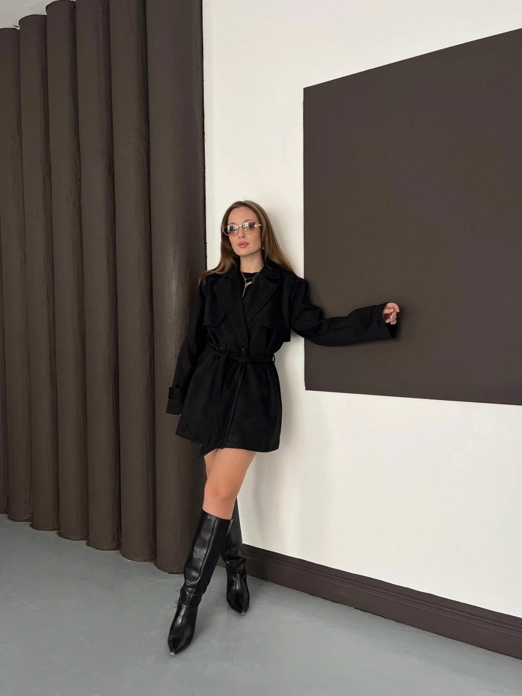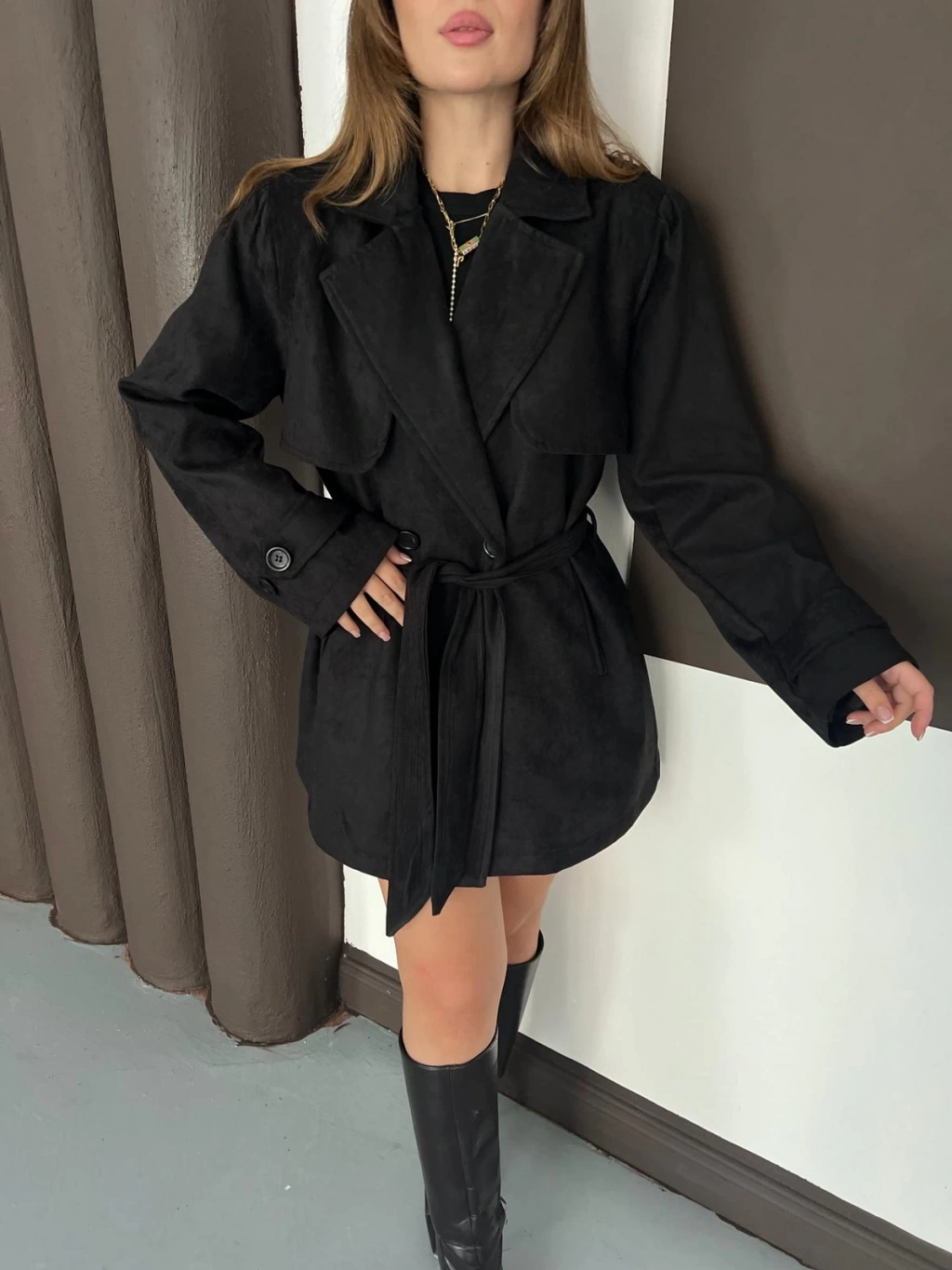 Kruvaze Yaka Cepli Kısa Kaşe Ceket Kahve