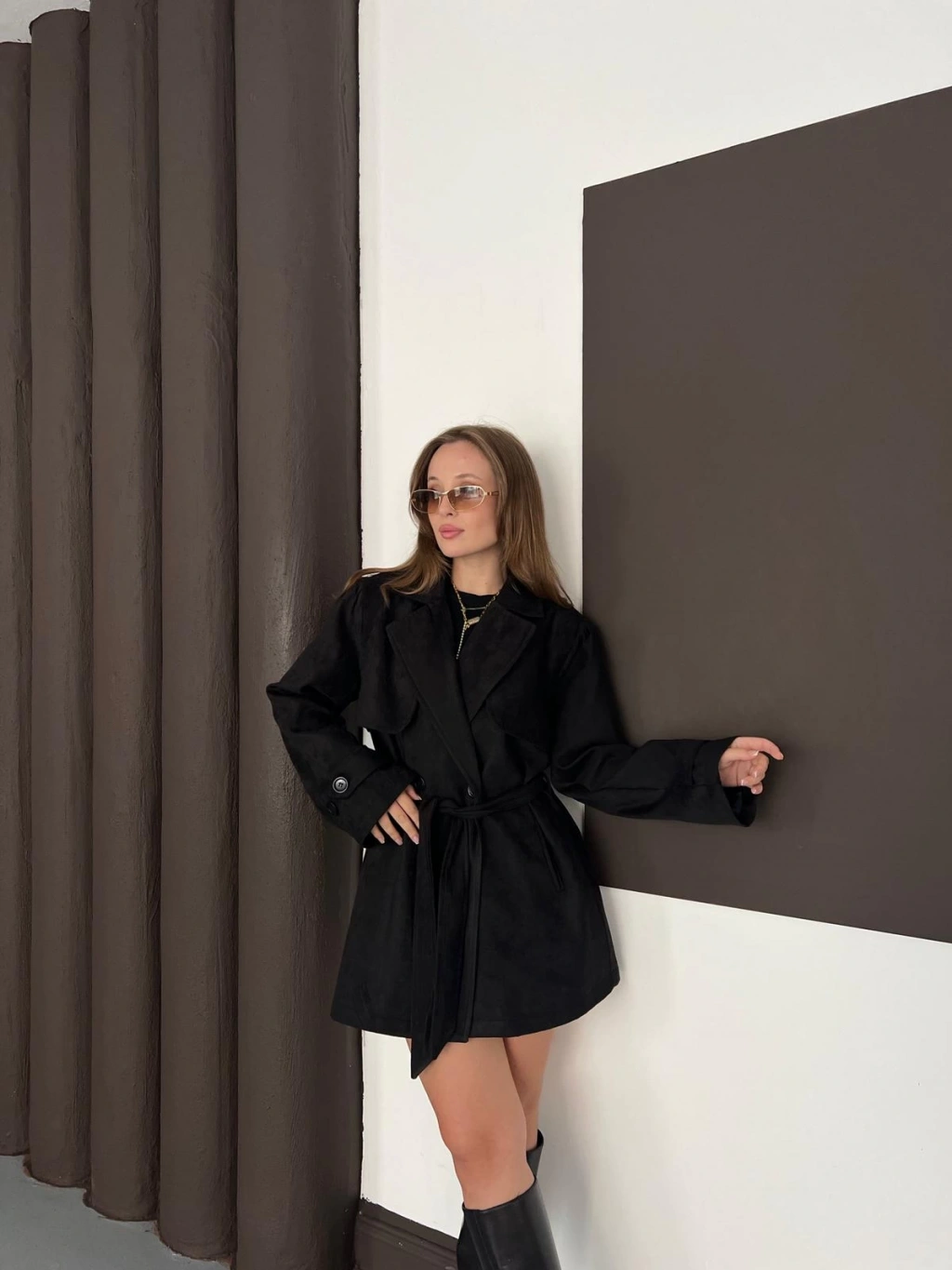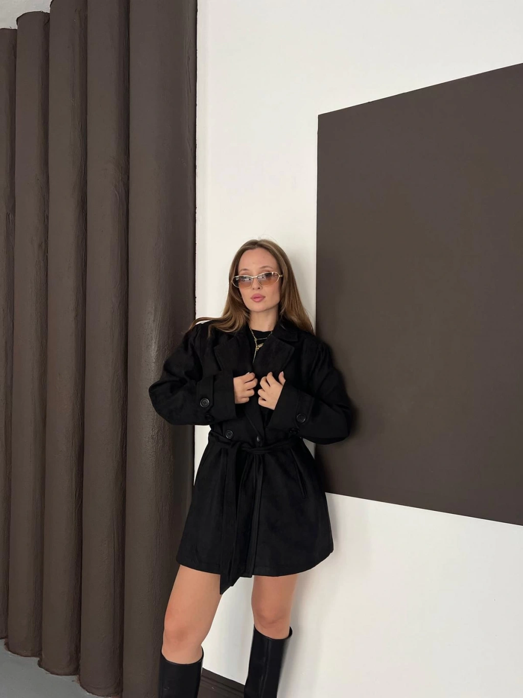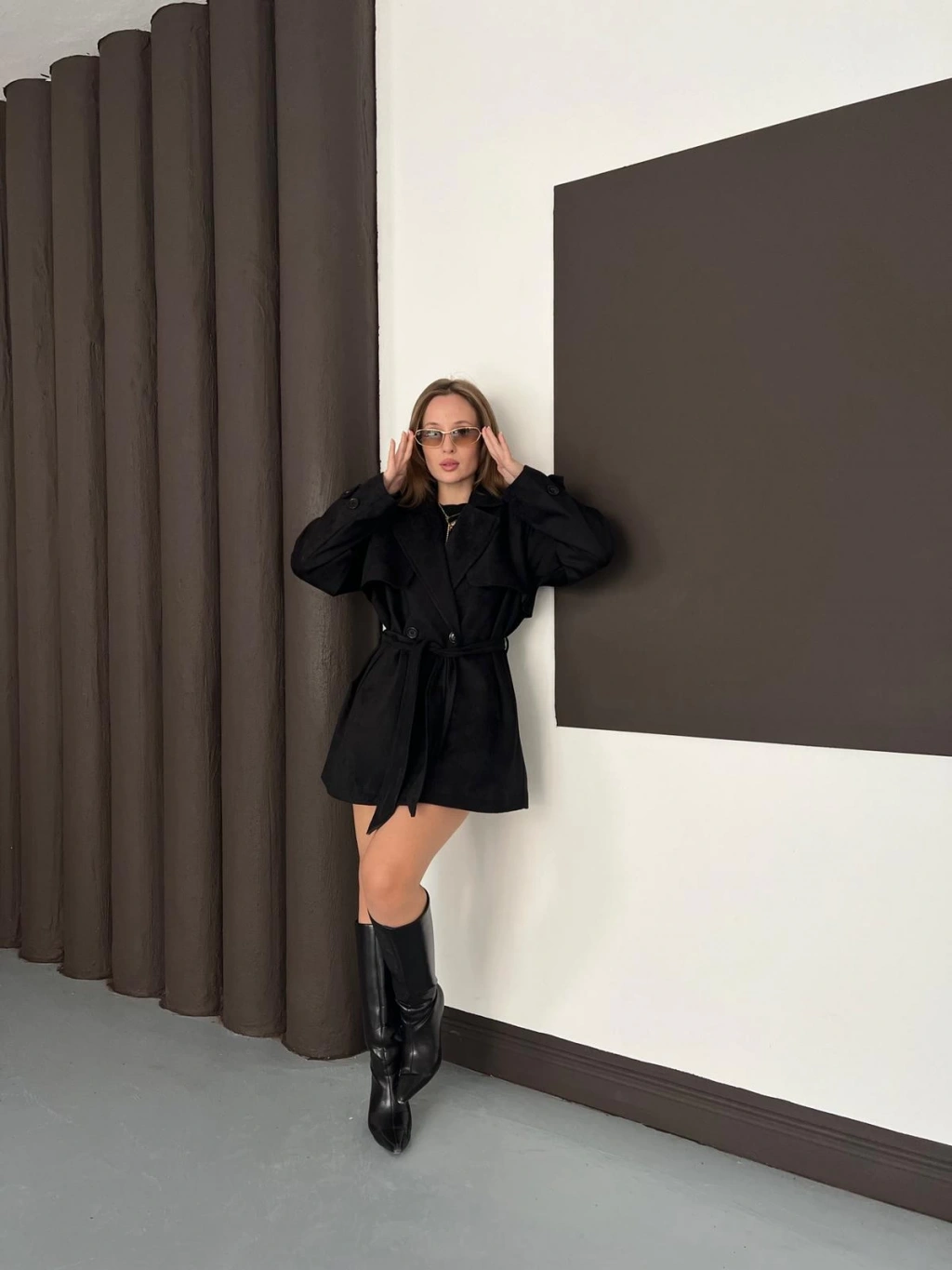 Kruvaze Yaka Cepli Kısa Kaşe Ceket Kahve