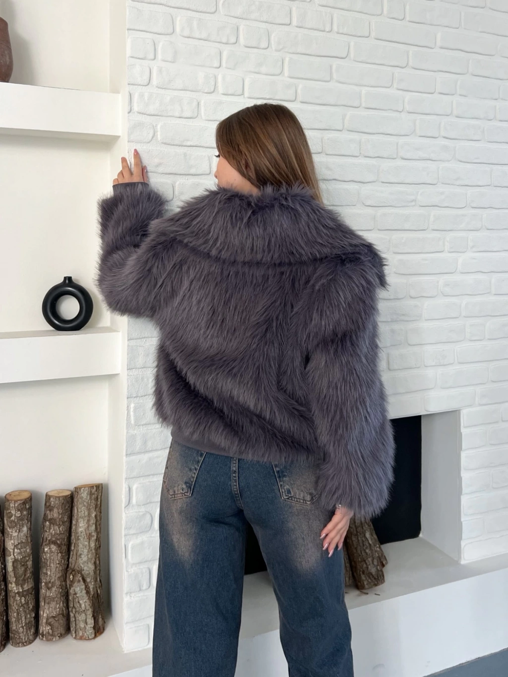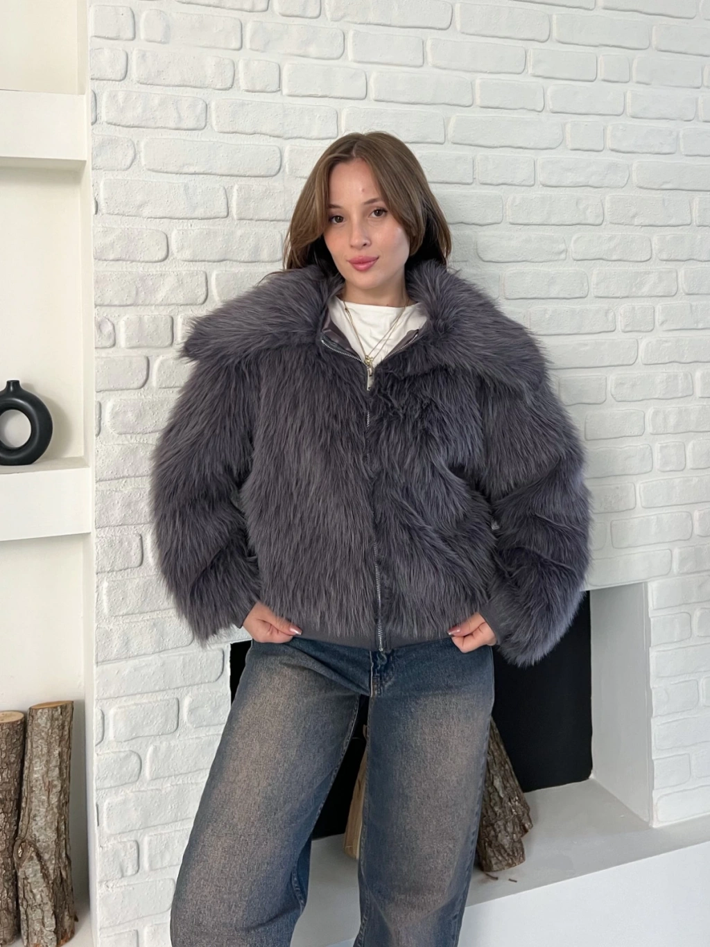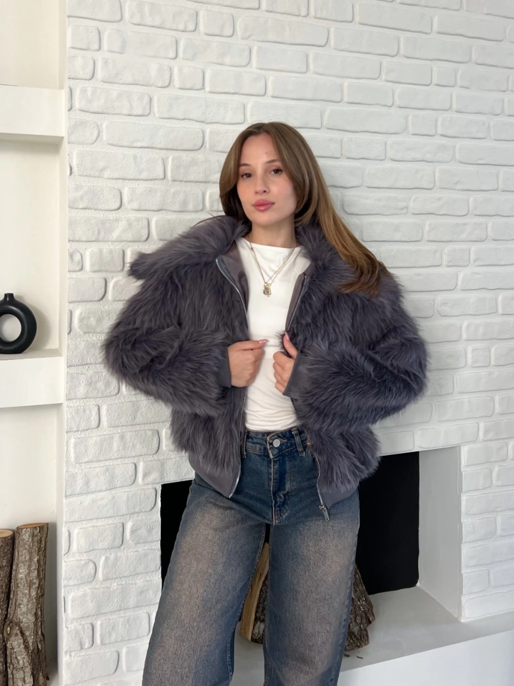 Kol Ribanalı Fermuarlı Kürk Antrasit