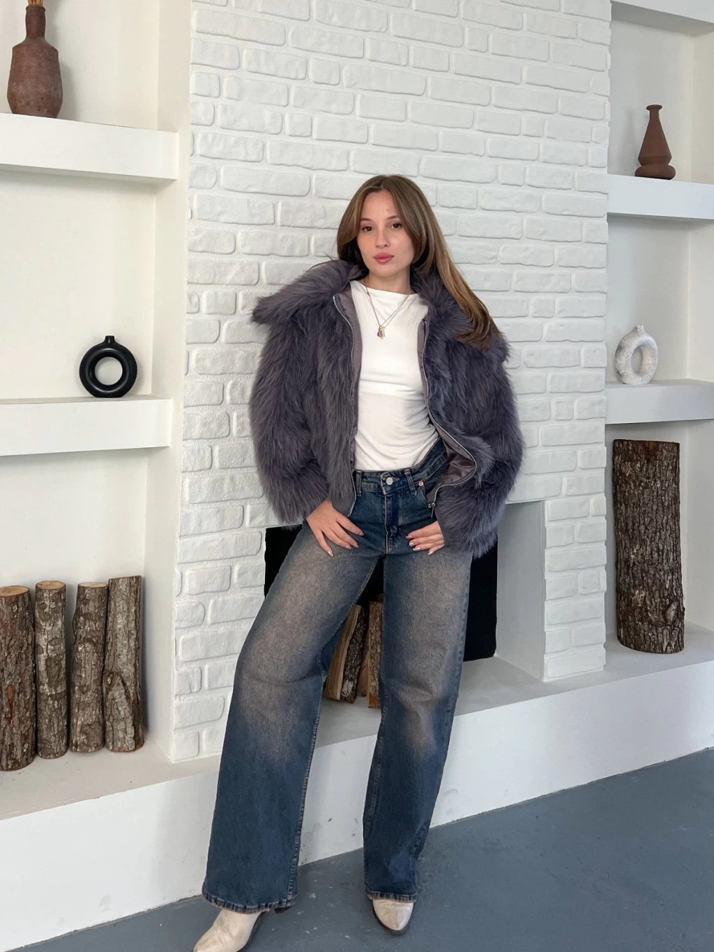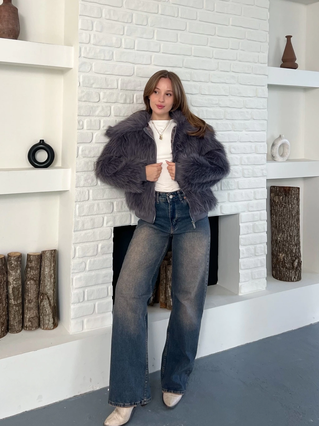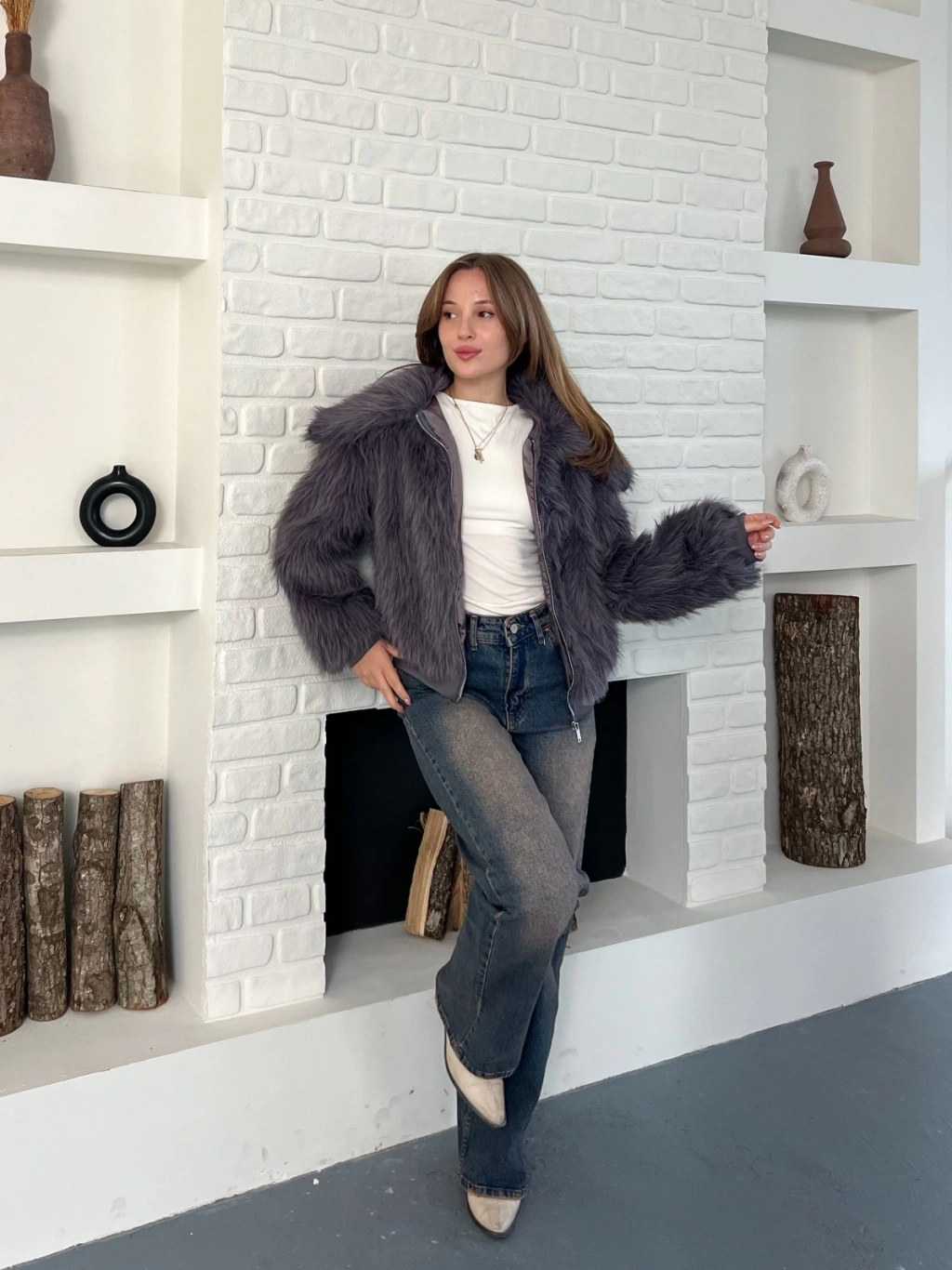 Kol Ribanalı Fermuarlı Kürk Antrasit