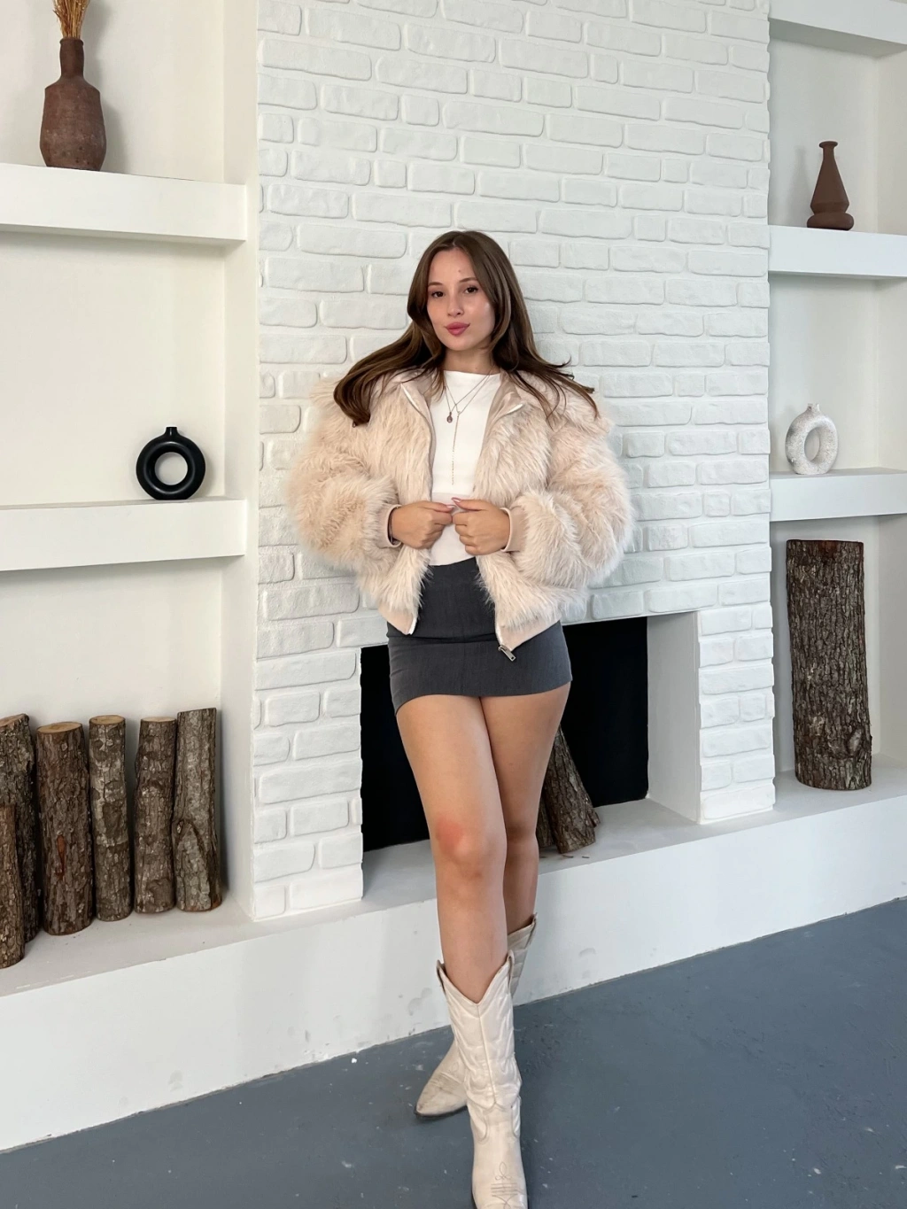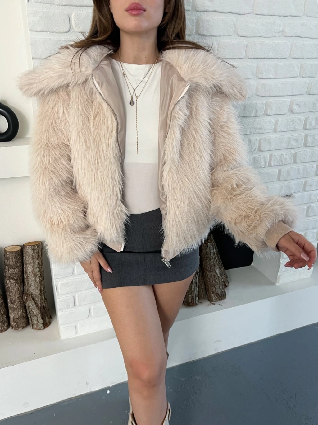 Kruvaze Yaka Cepli Kısa Kaşe Ceket Kahve