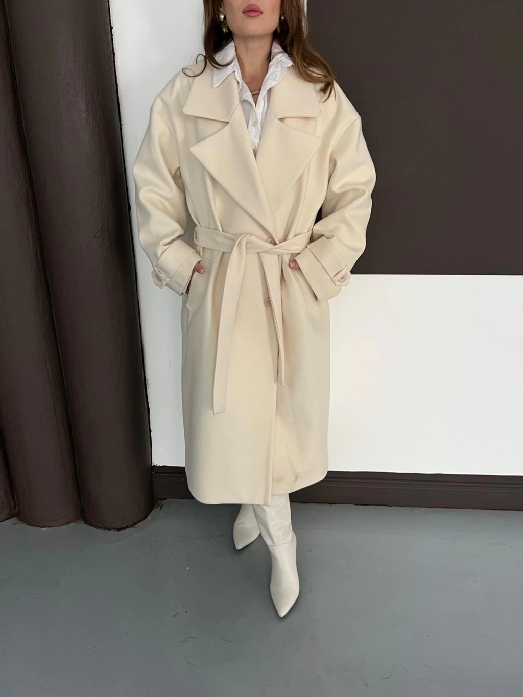 Kuşaklı Kol Manşetli Kaşe Kaban Ekru