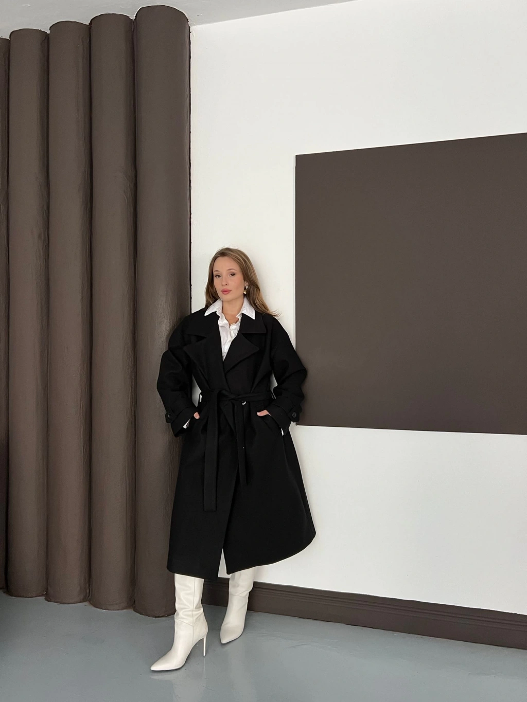 Kuşaklı Kol Manşetli Kaşe Kaban