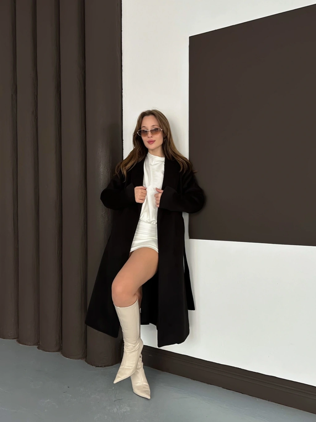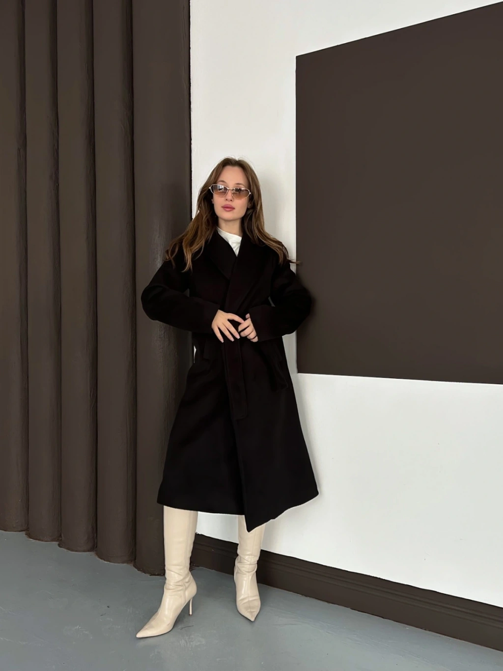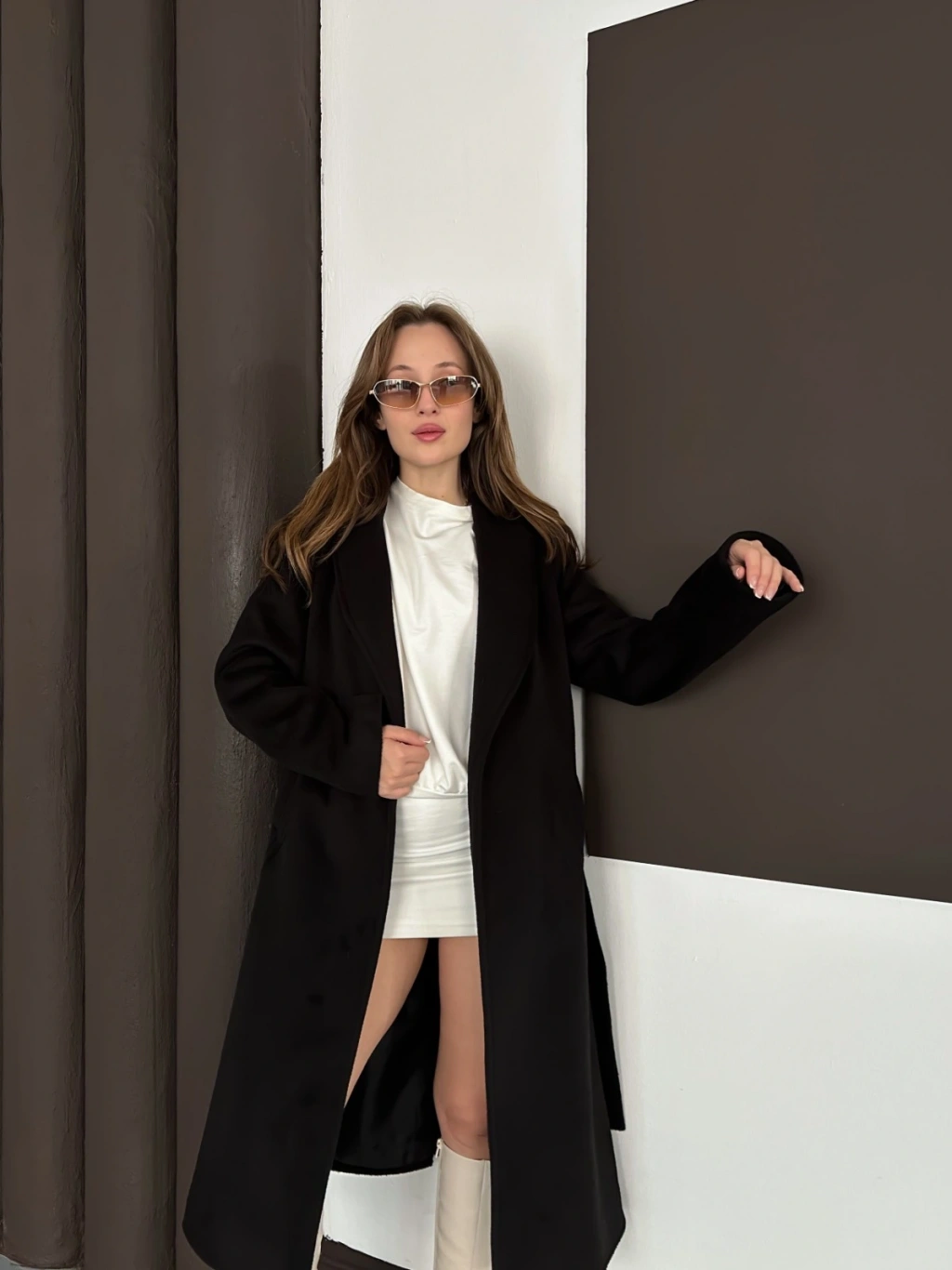 Moskov Kumaş Kuşaklı Kaban Siyah