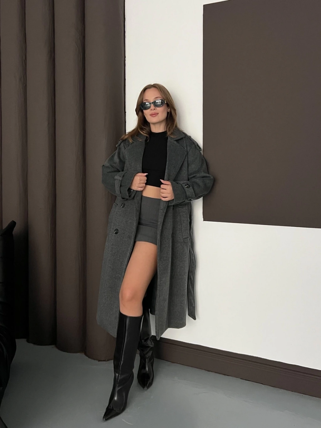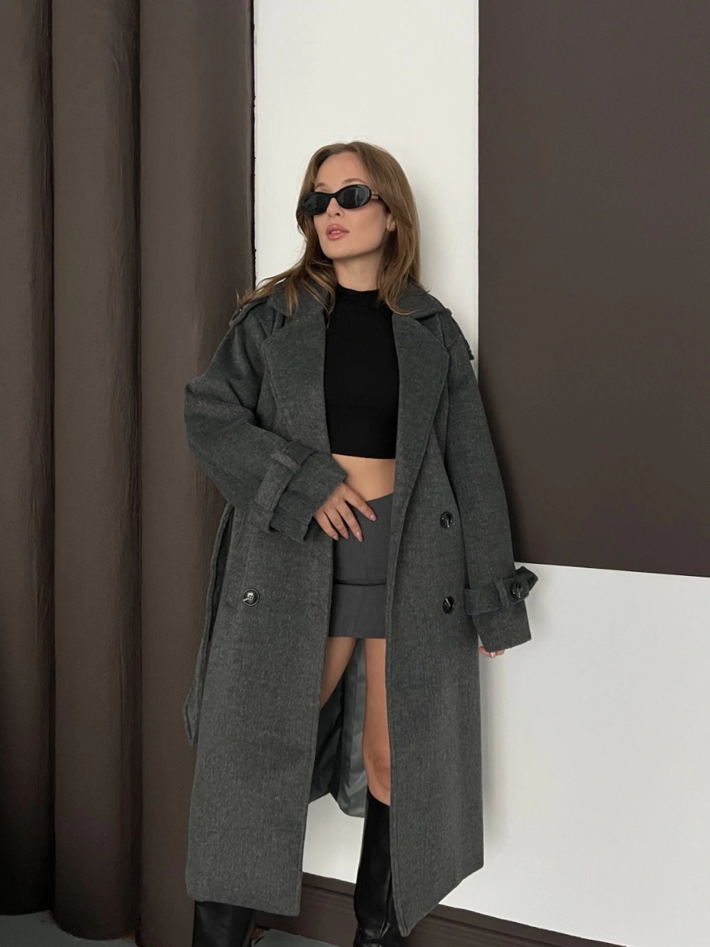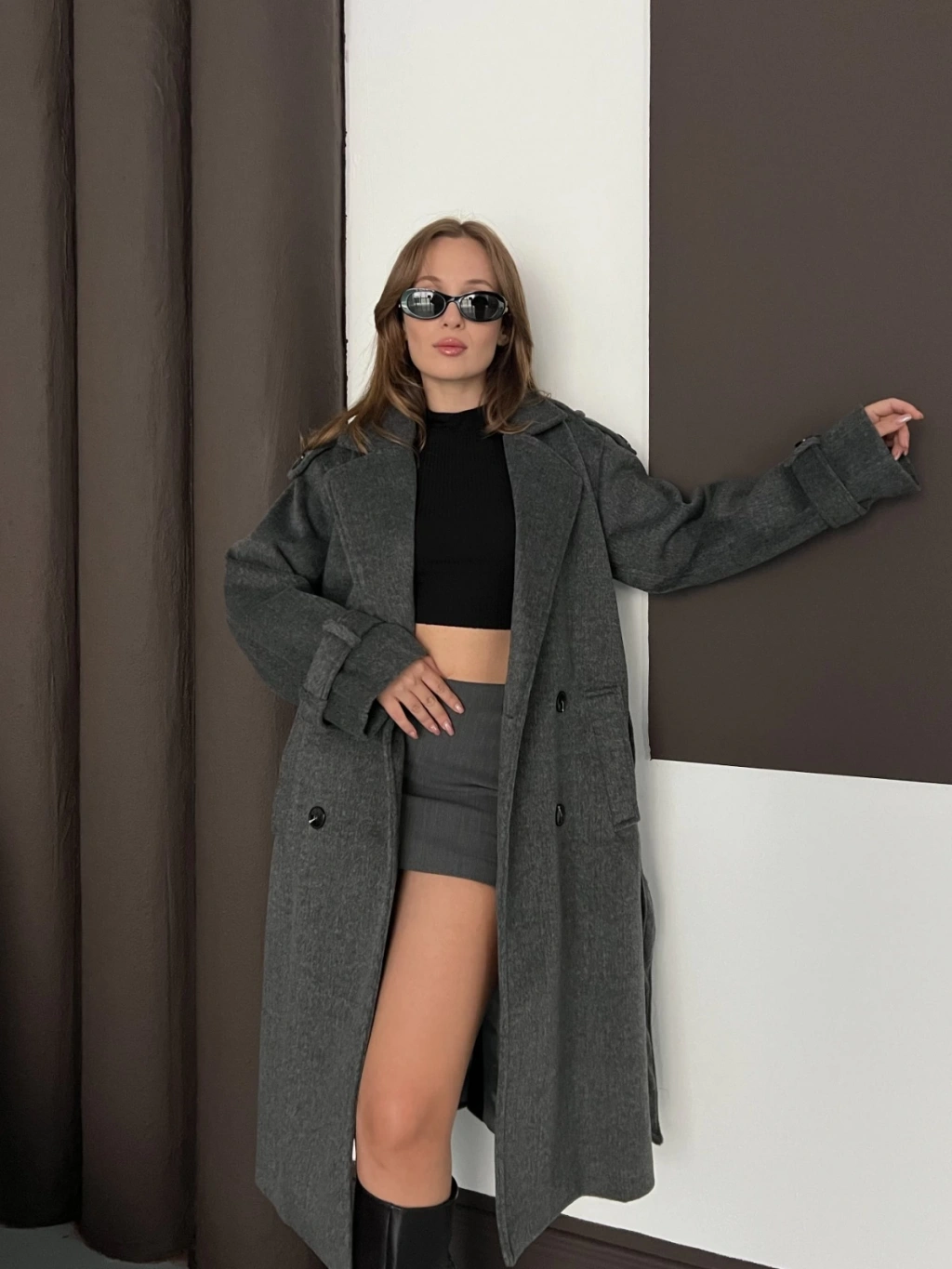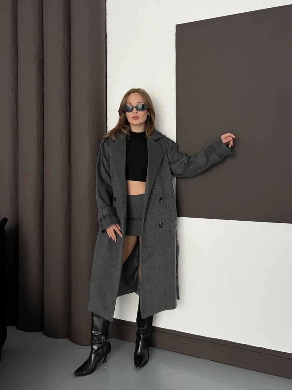 Omuz-Bilek Manşet Detaylı A kalite Kaşe Kaban Antrasit