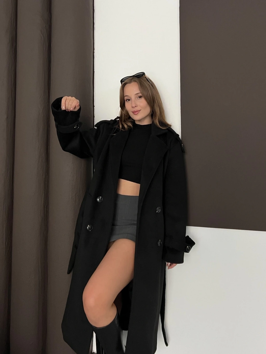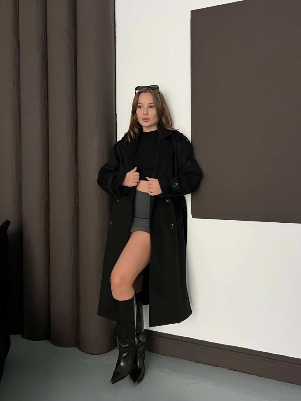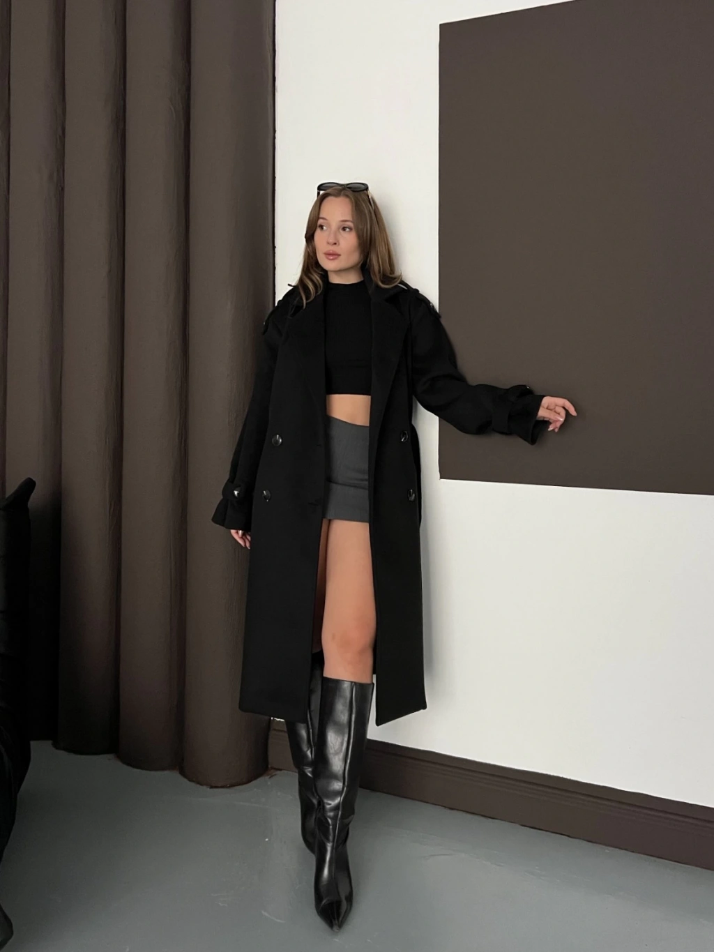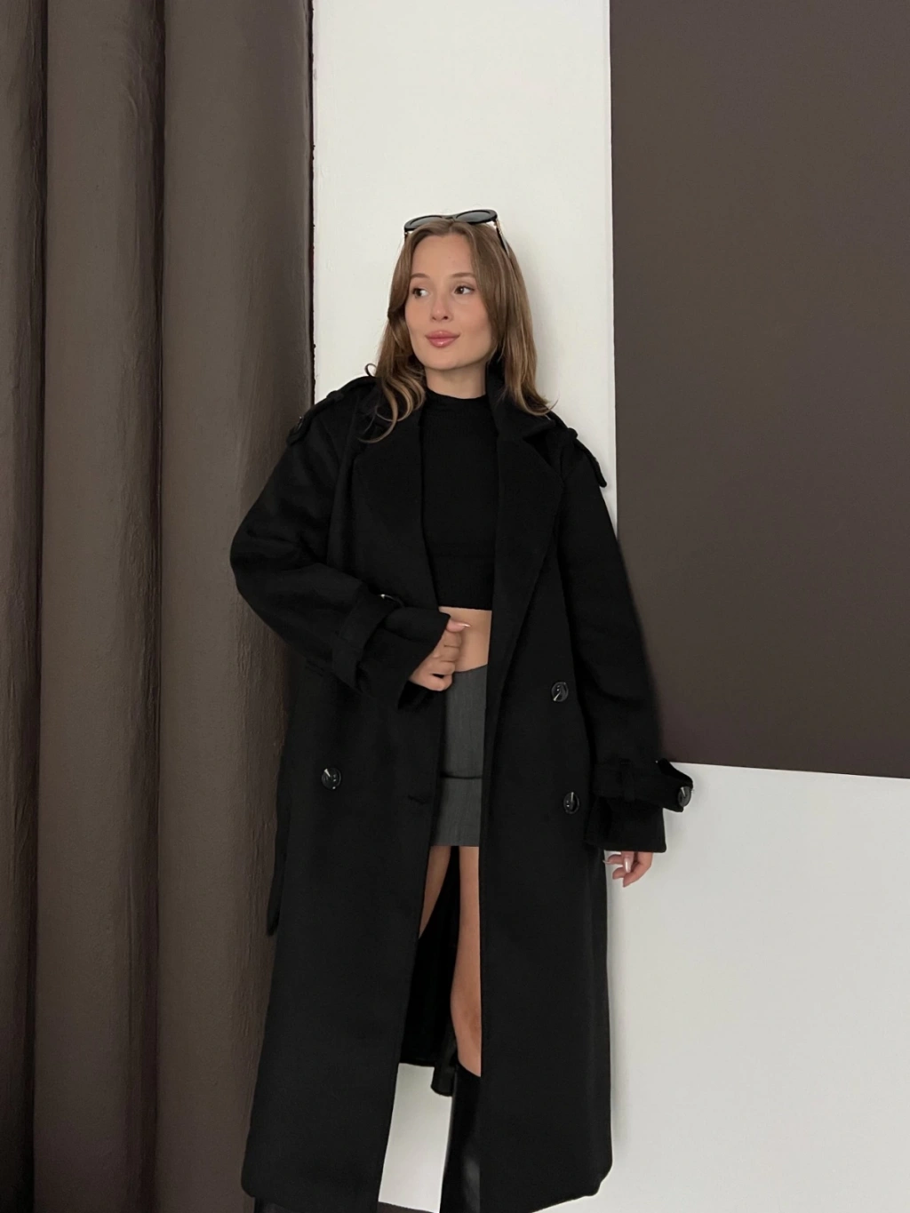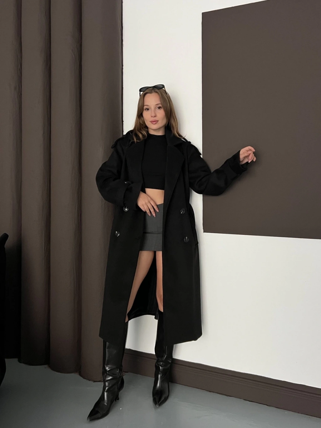 Omuz-Bilek Manşet Detaylı A kalite Kaşe Kaban Siyah