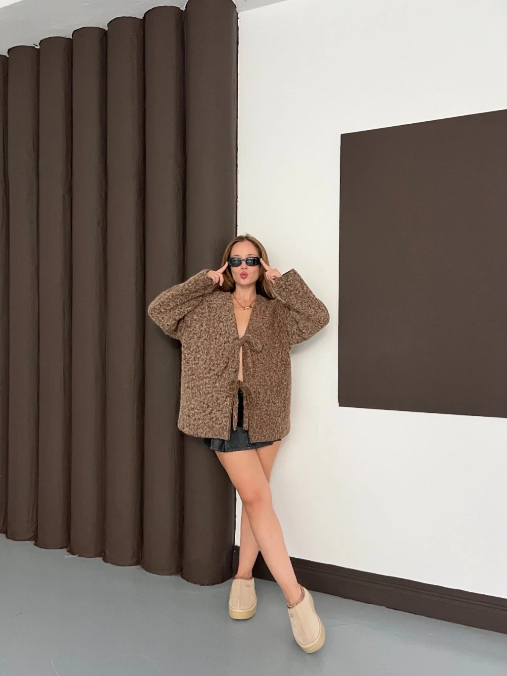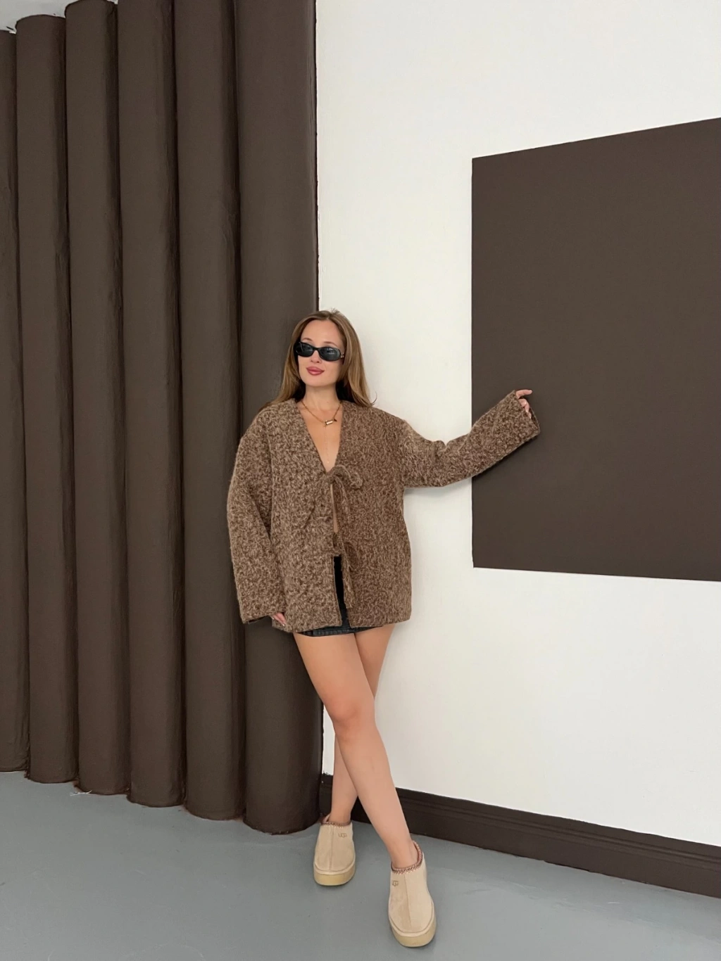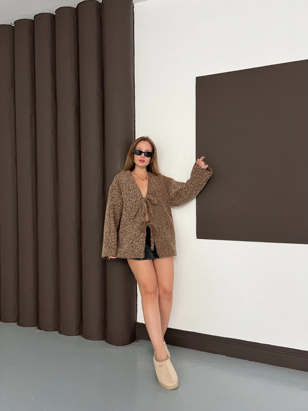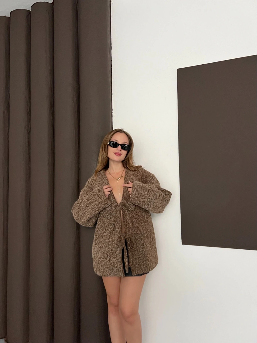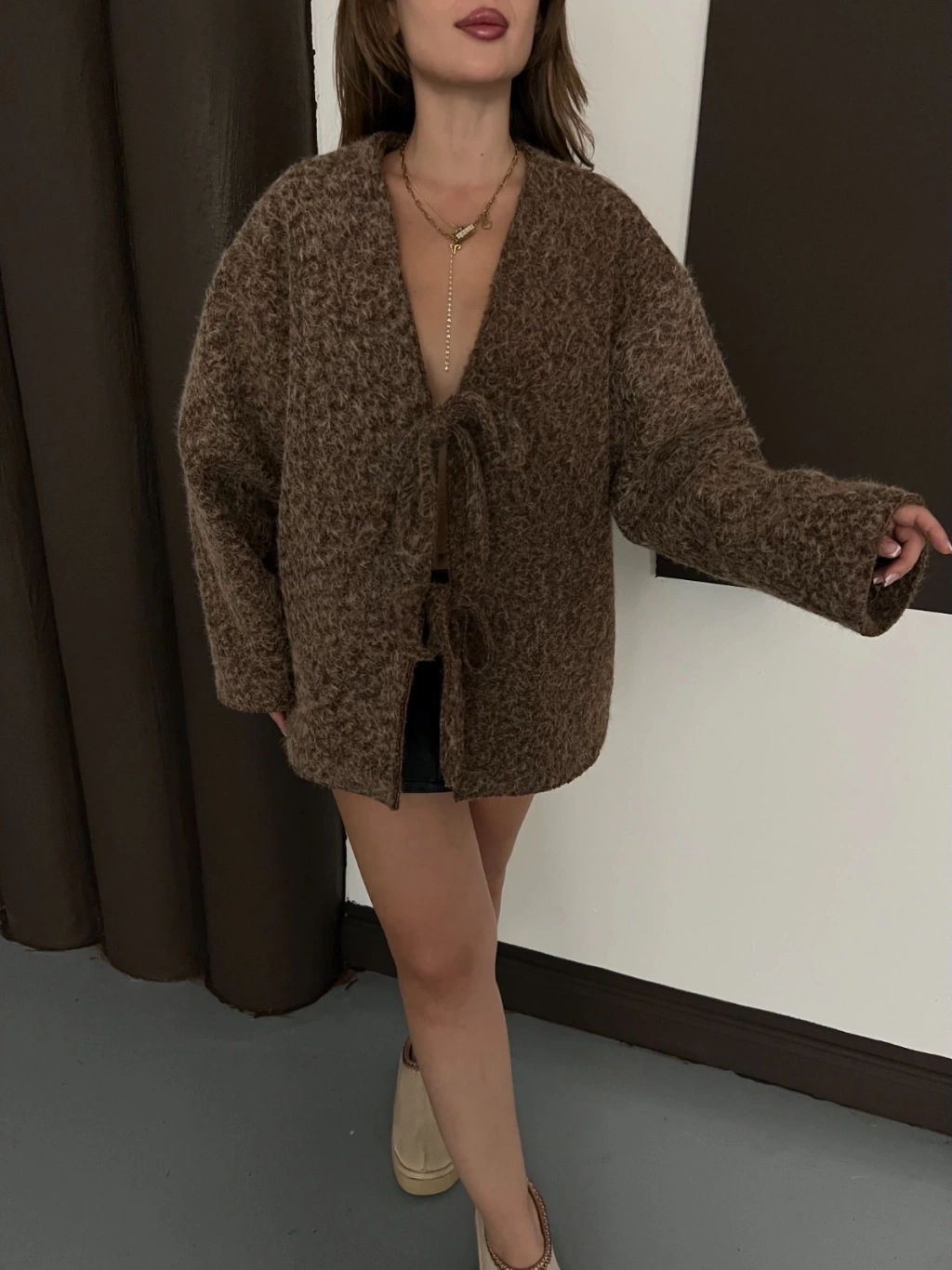 Ön Bağlama Detaylı Kaşe Ceket Kahverengi